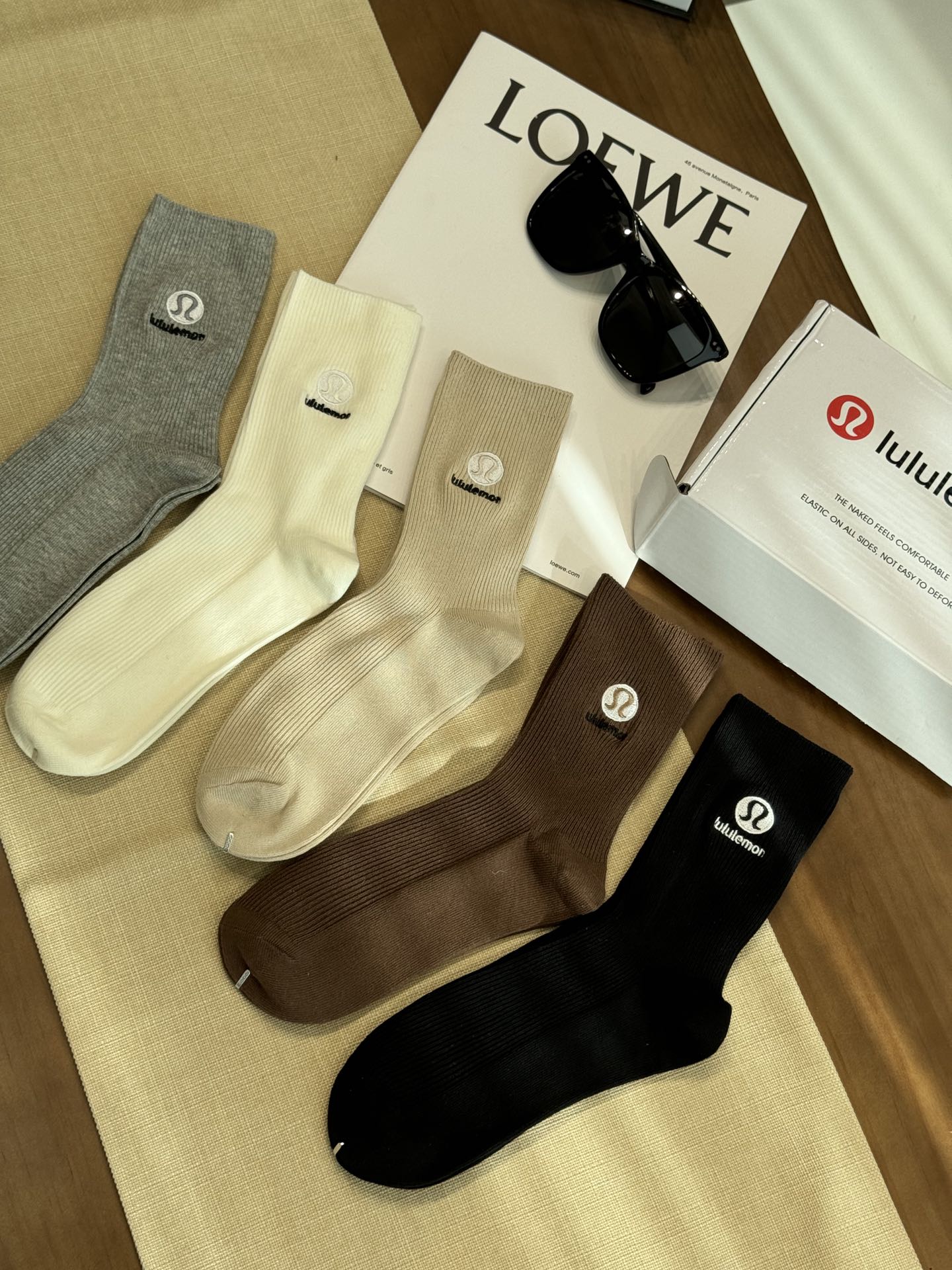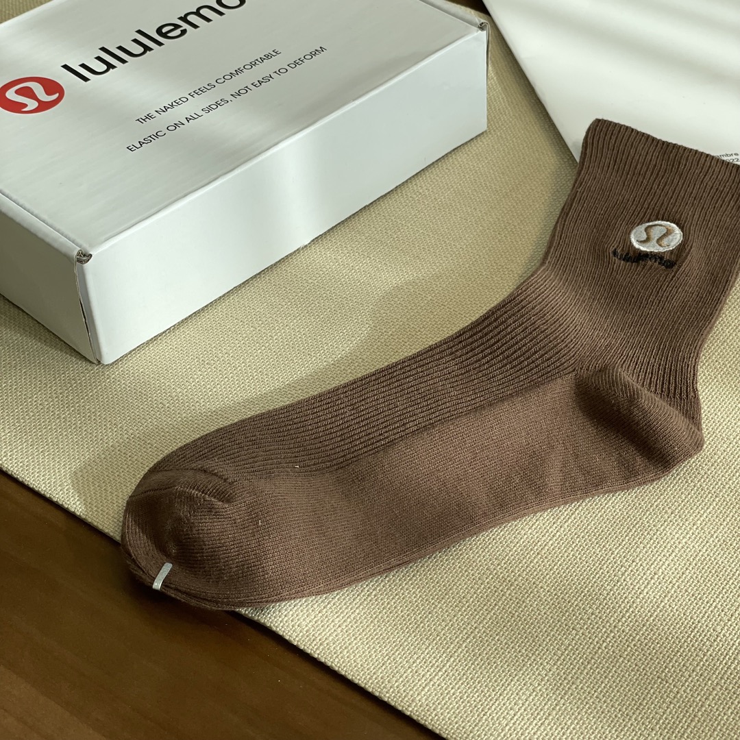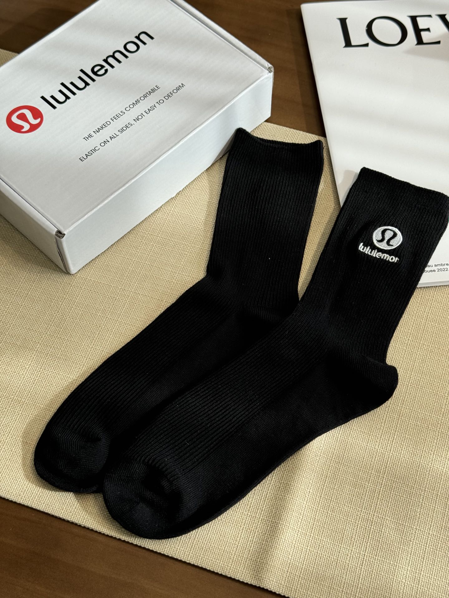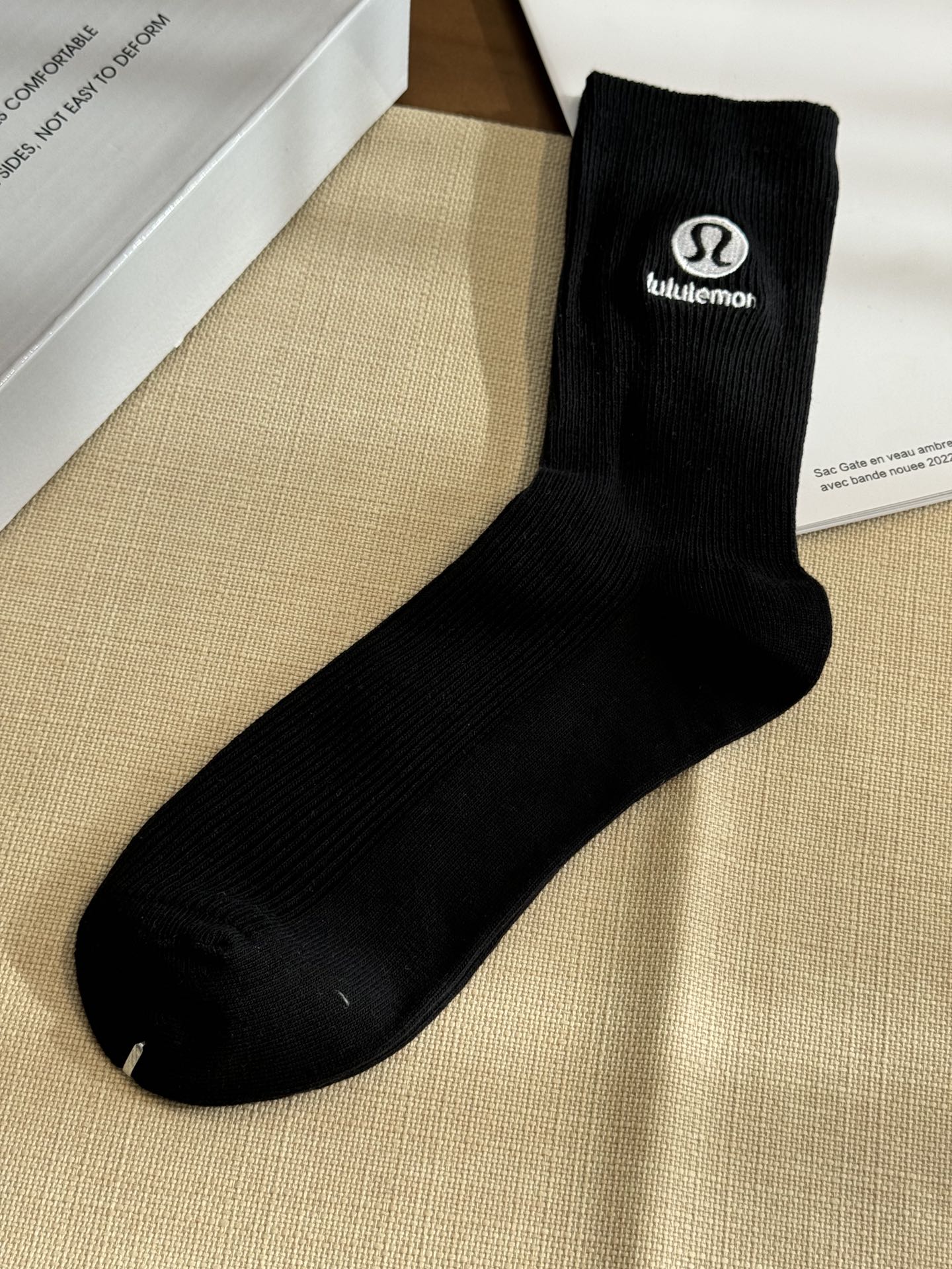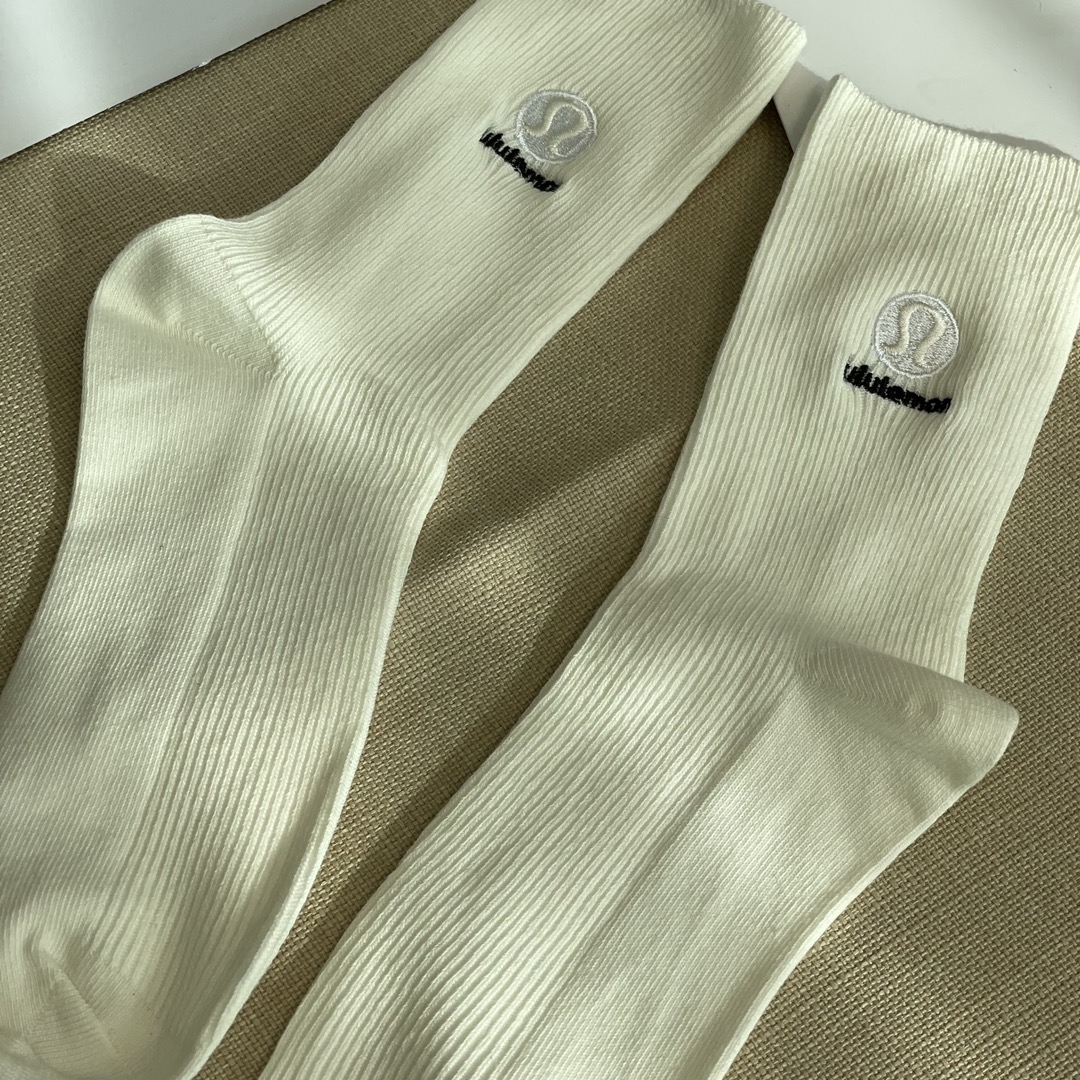 一盒5⃣️双,纯原单 Lulu家lemon经典刺绣logo纯棉休闲中筒袜 女款