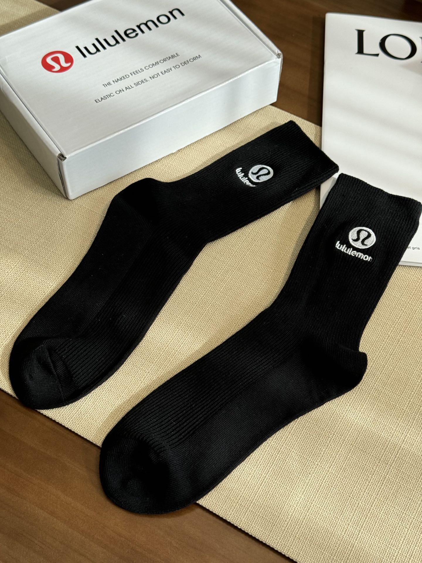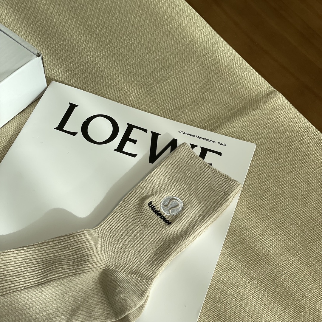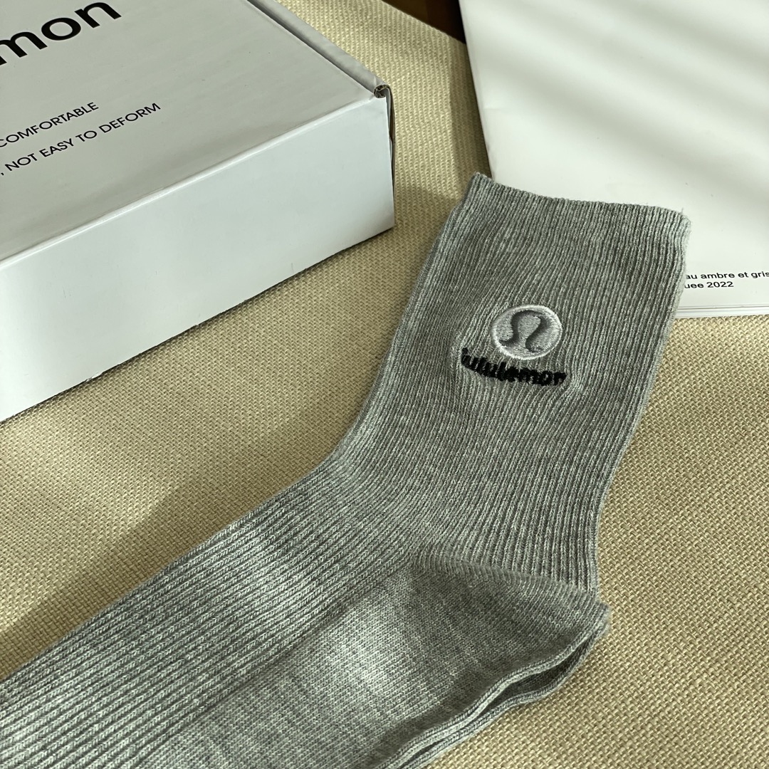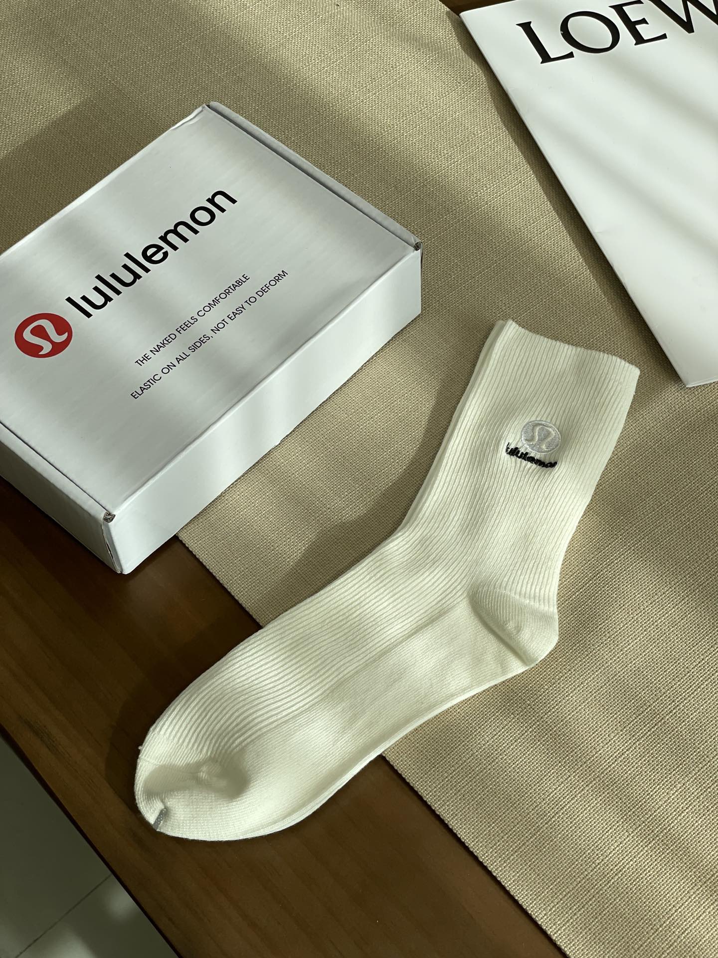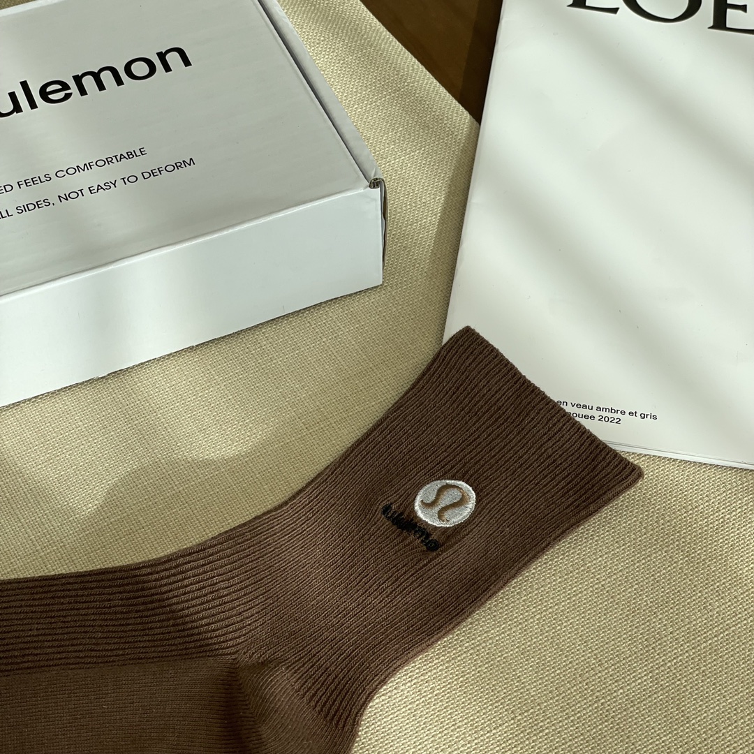 一盒5⃣️双,纯原单 Lulu家lemon经典刺绣logo纯棉休闲中筒袜 女款