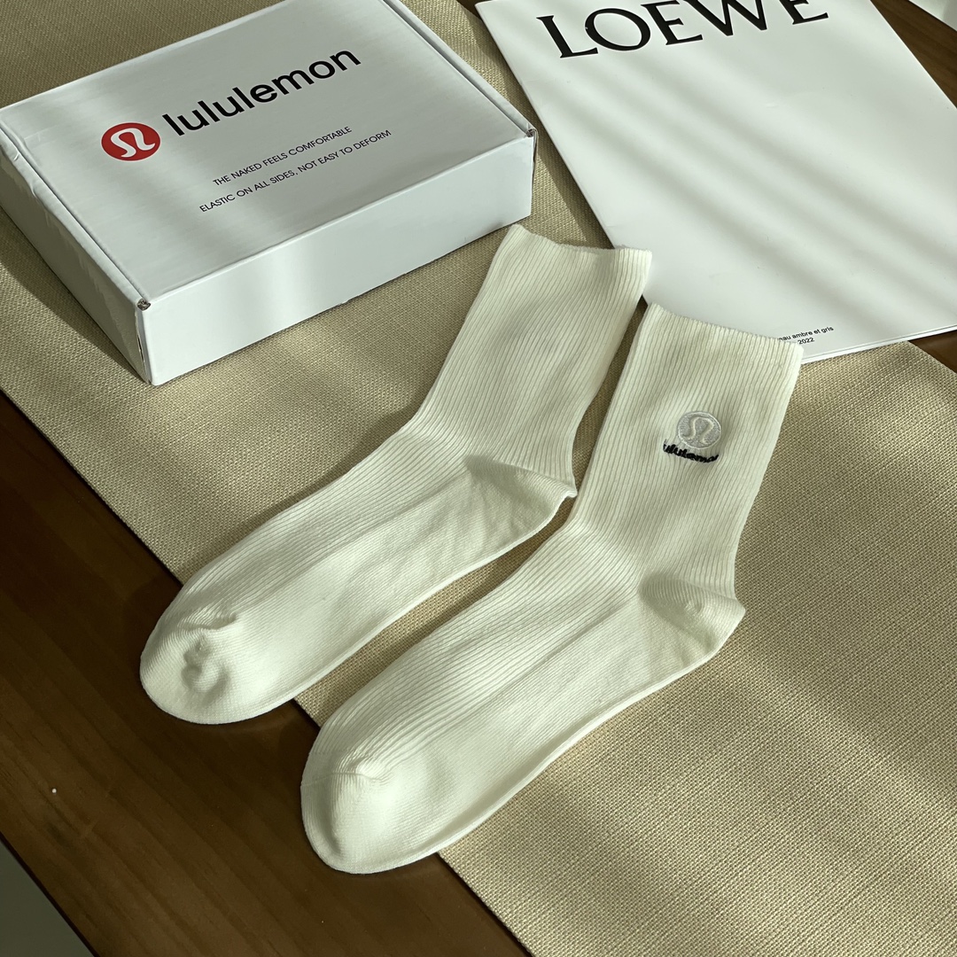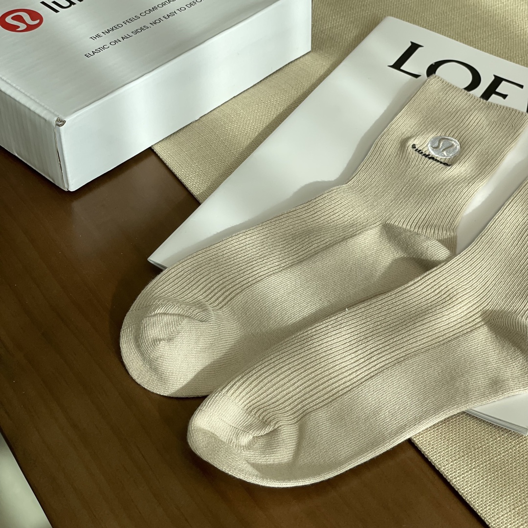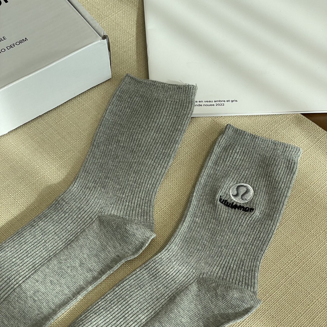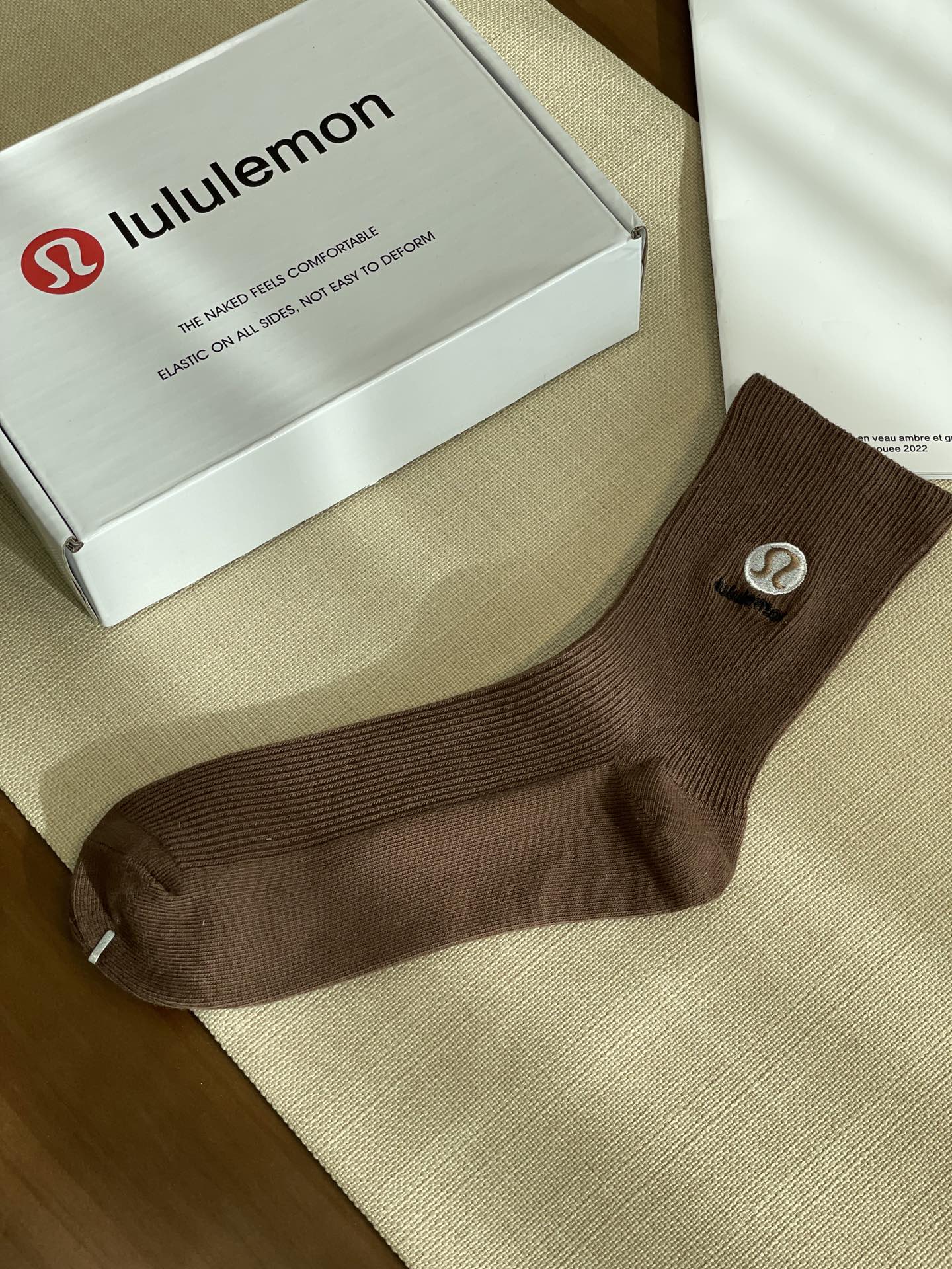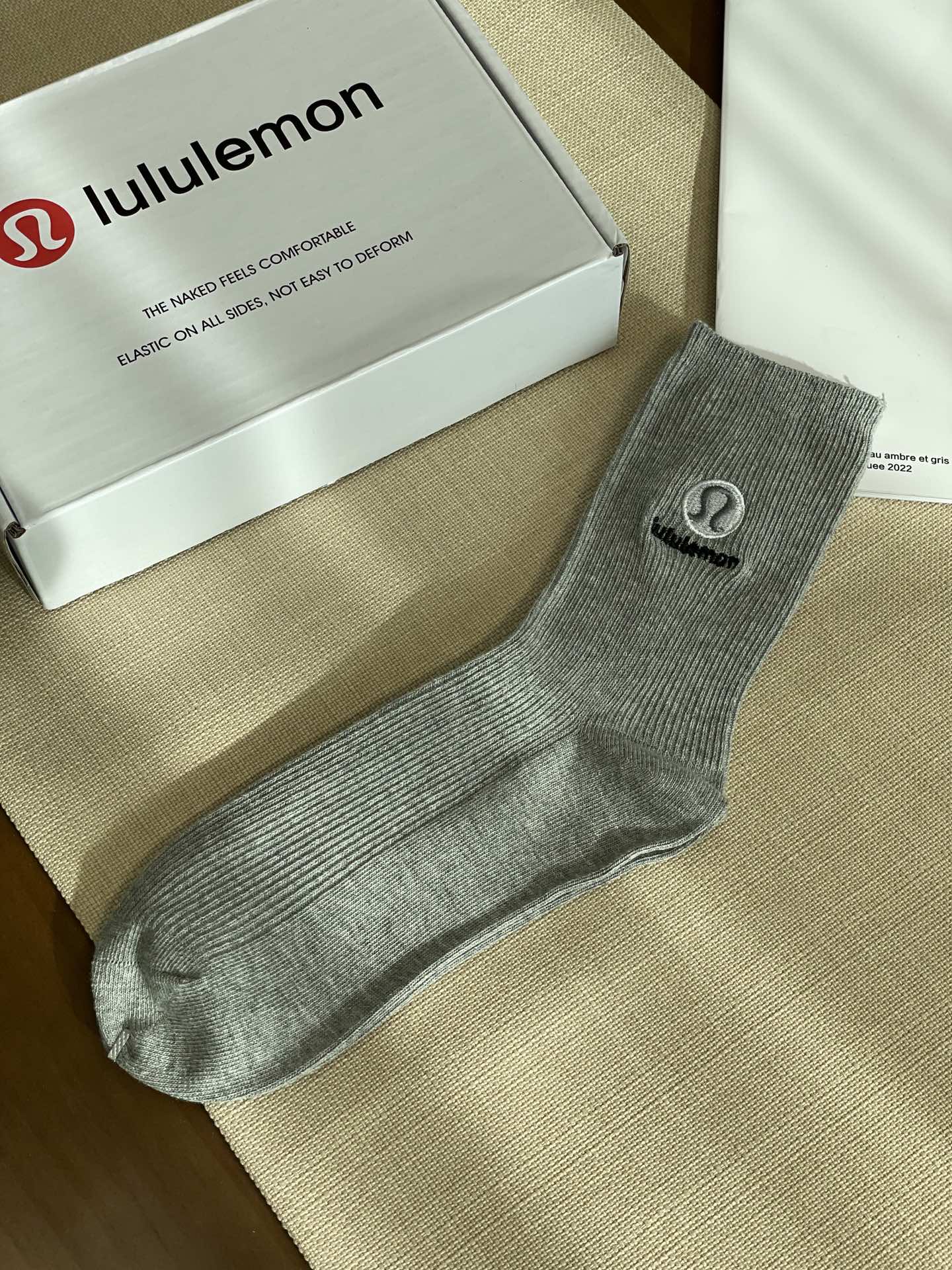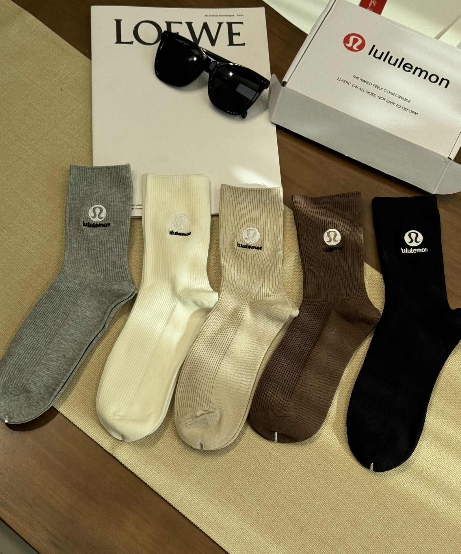 一盒5⃣️双,纯原单 Lulu家lemon经典刺绣logo纯棉休闲中筒袜 女款