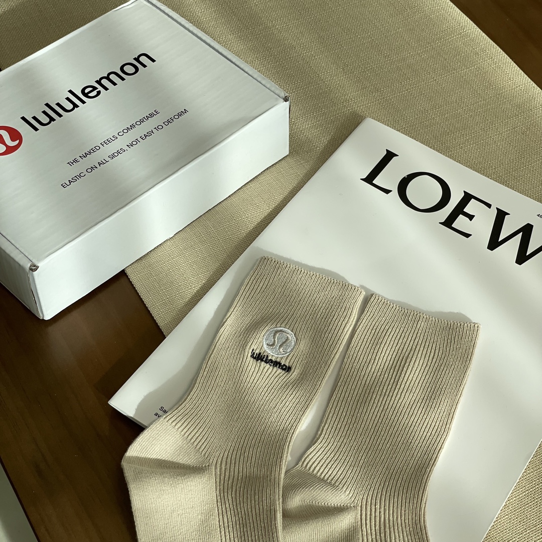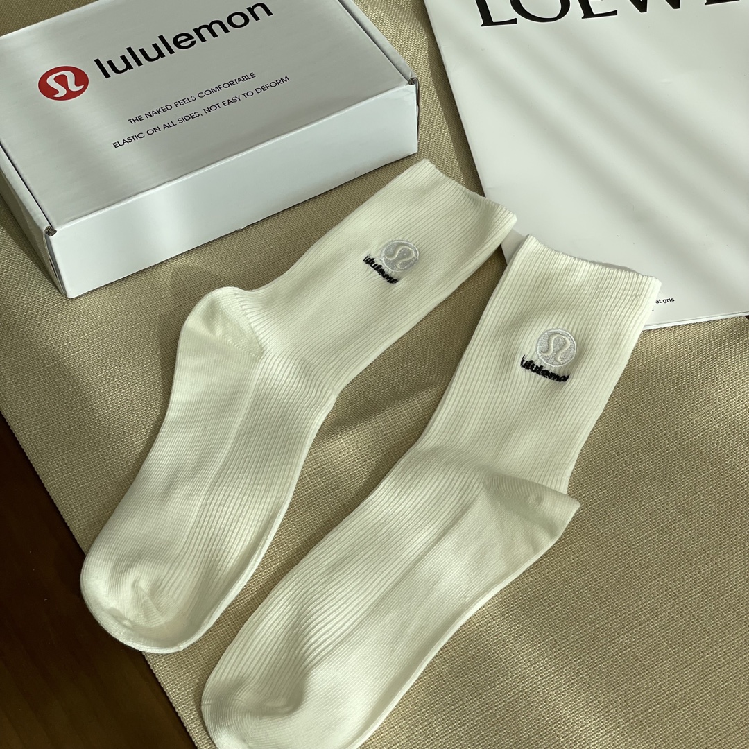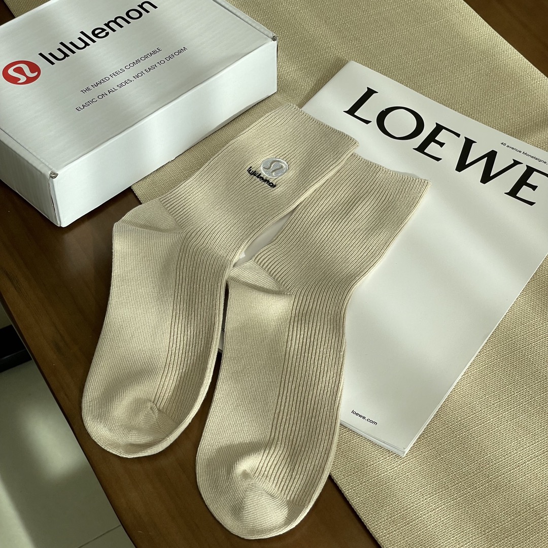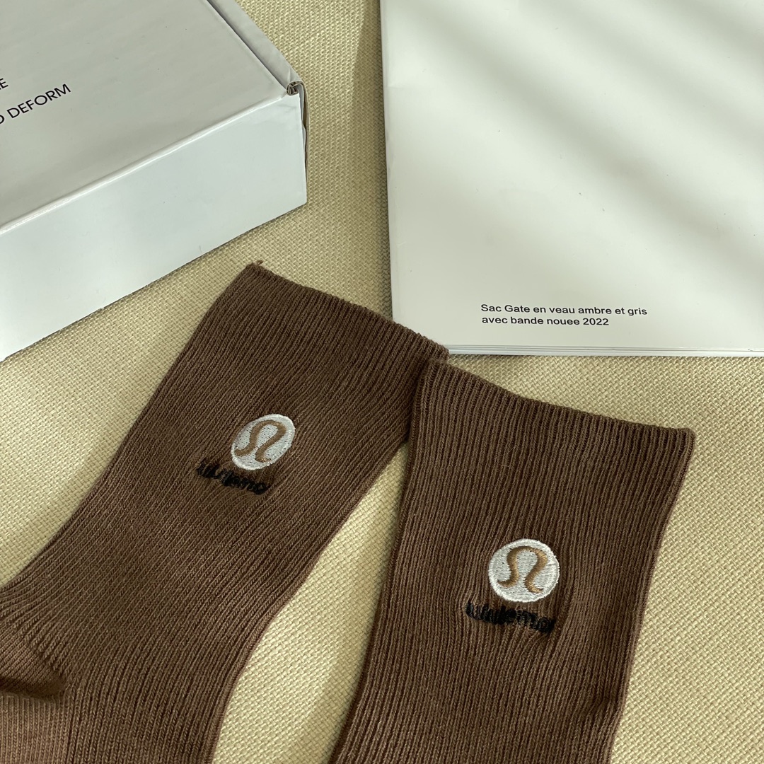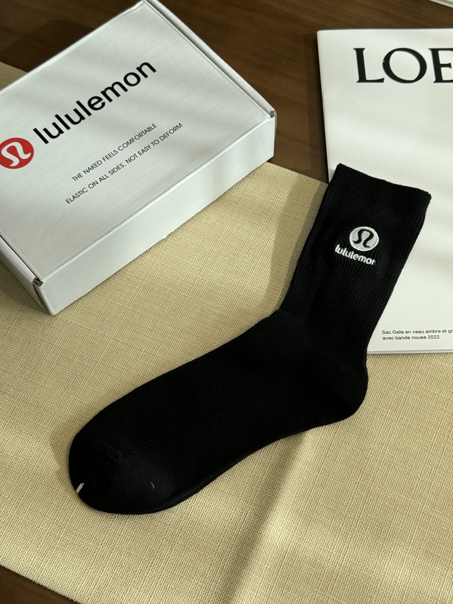 一盒5⃣️双,纯原单 Lulu家lemon经典刺绣logo纯棉休闲中筒袜 女款