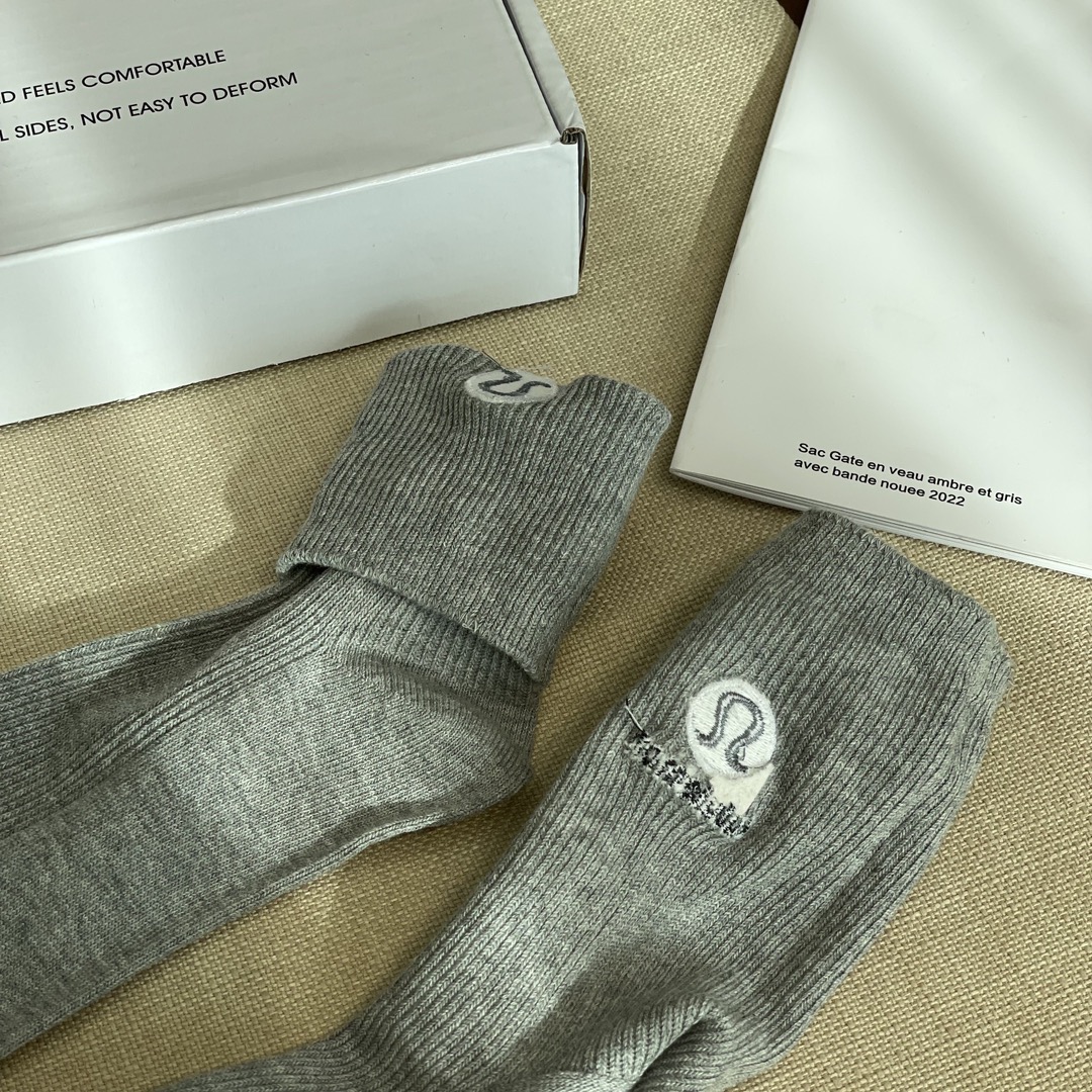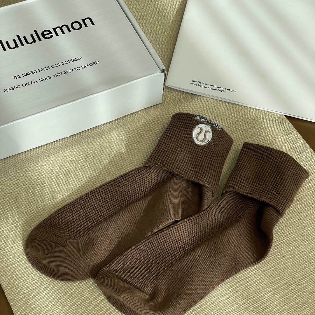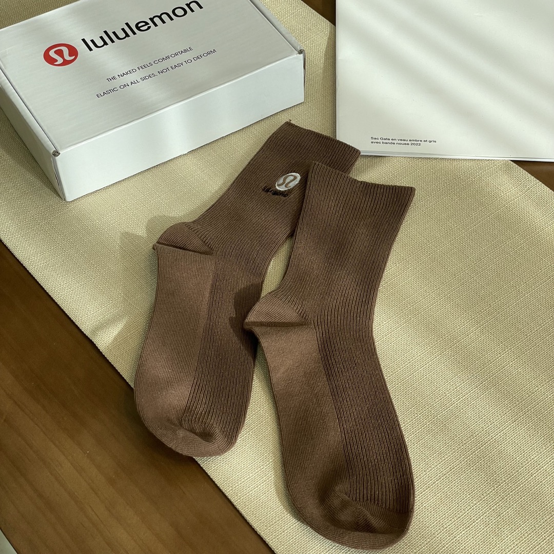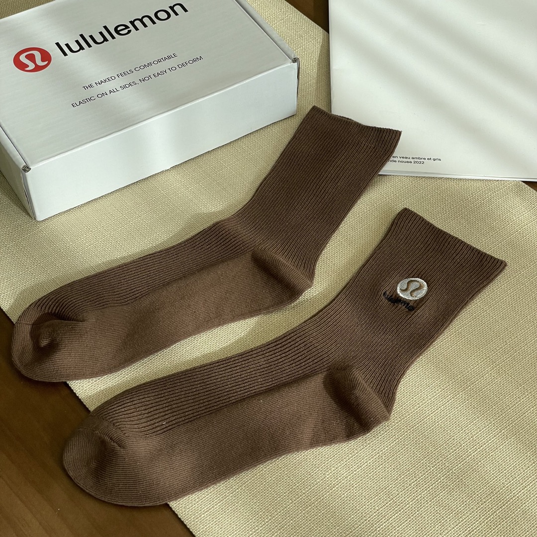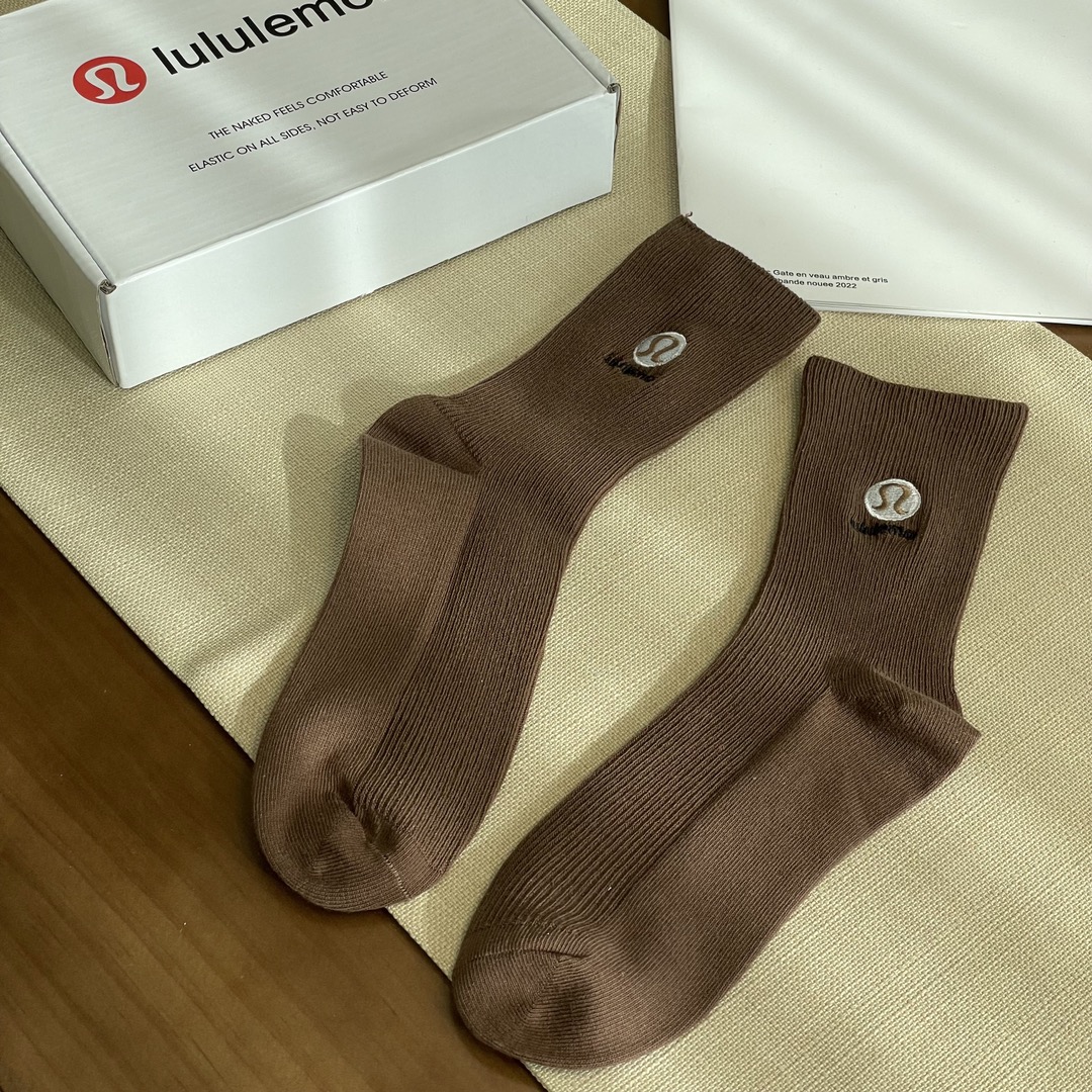 一盒5⃣️双,纯原单 Lulu家lemon经典刺绣logo纯棉休闲中筒袜 女款