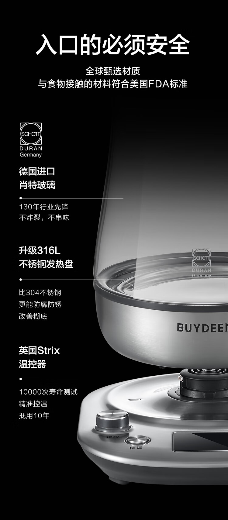 北鼎(Buydeem)多功能养生壶高端预约中药壶煮茶器礼品商务进口玻璃材质智能养身燕窝壶K187(升级全配版)