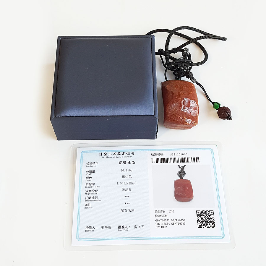名称 | 天然无杂裂满蜜鸡油黄随形平安无事牌老蜜蜡吊坠项链 |