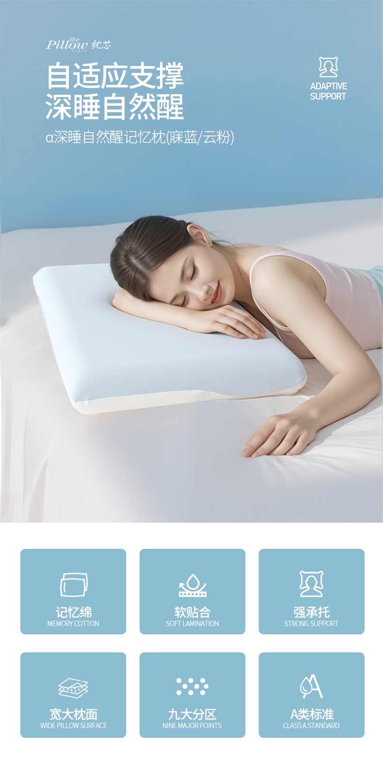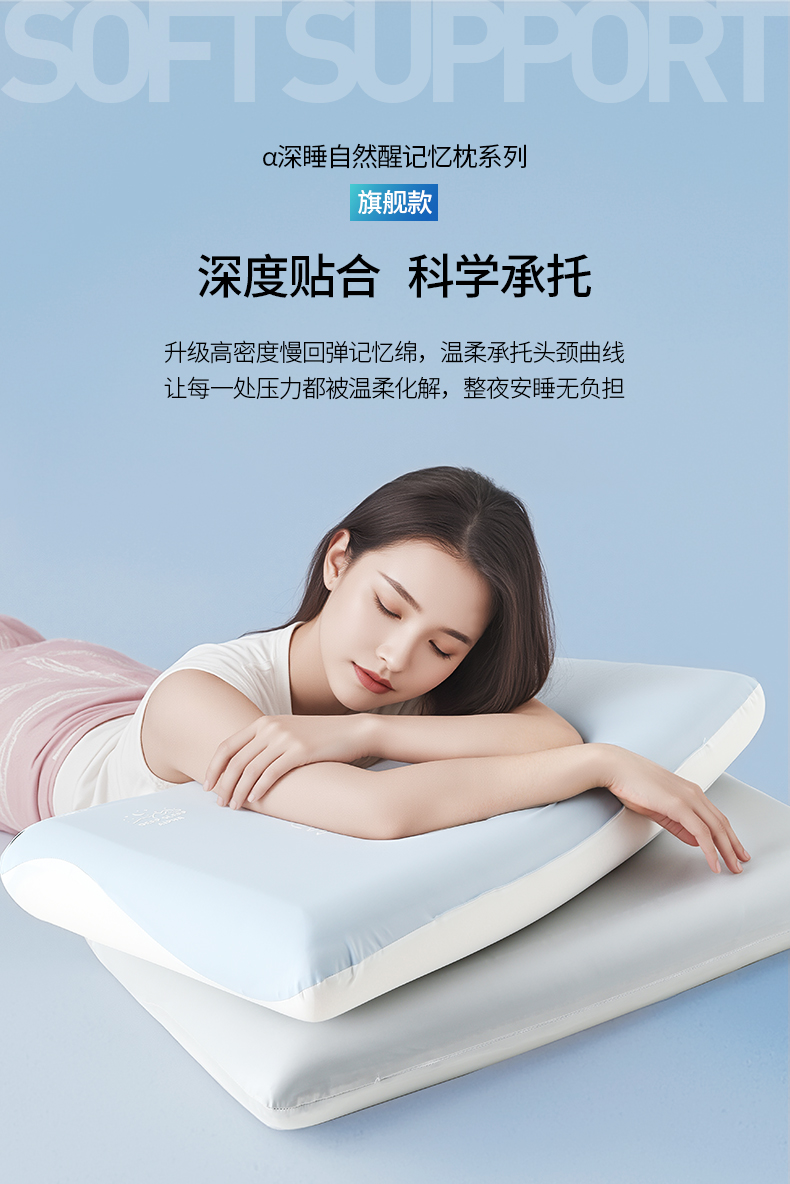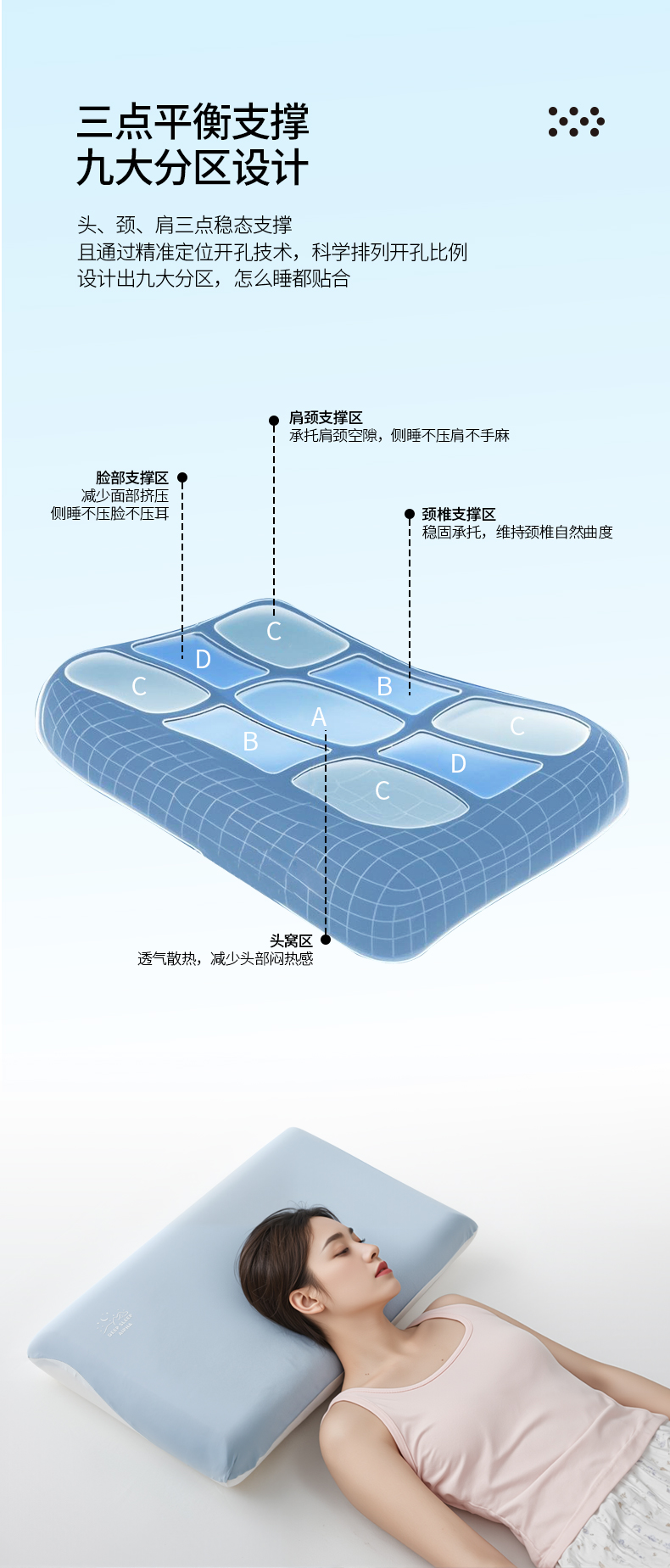 多喜爱 深睡自然醒记忆枕(寐蓝/云粉)【记忆绵】【九大分区人体工学设计】【A类标准】【蜂窝透气设计】【针织凉感面料】软贴合 强承托 自适应支撑 宽大枕面/FX