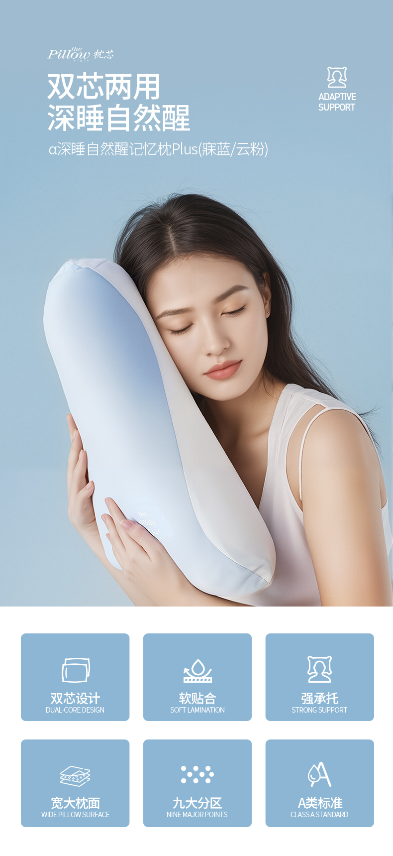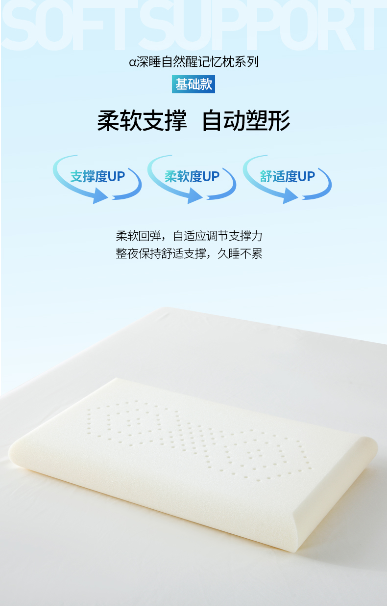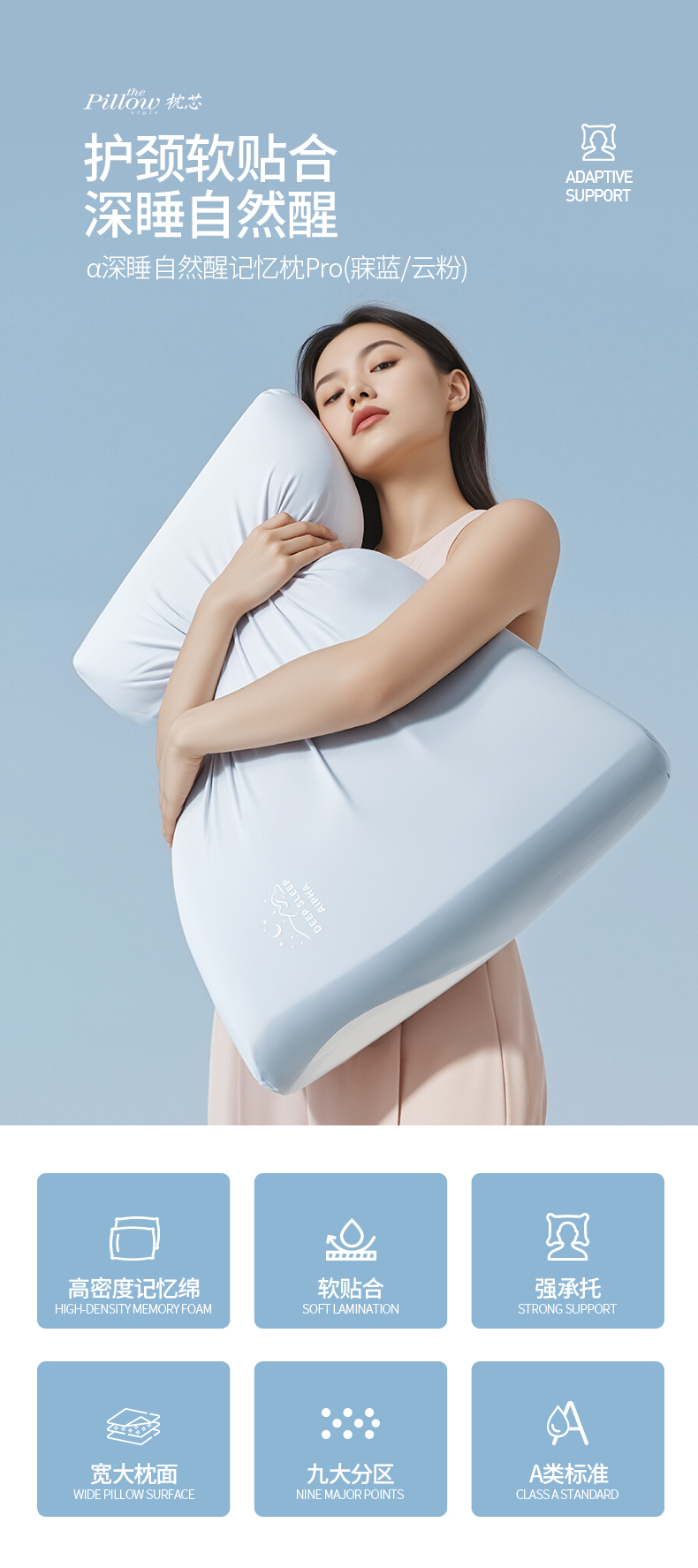 多喜爱 深睡自然醒记忆枕(寐蓝/云粉)【记忆绵】【九大分区人体工学设计】【A类标准】【蜂窝透气设计】【针织凉感面料】软贴合 强承托 自适应支撑 宽大枕面/FX
