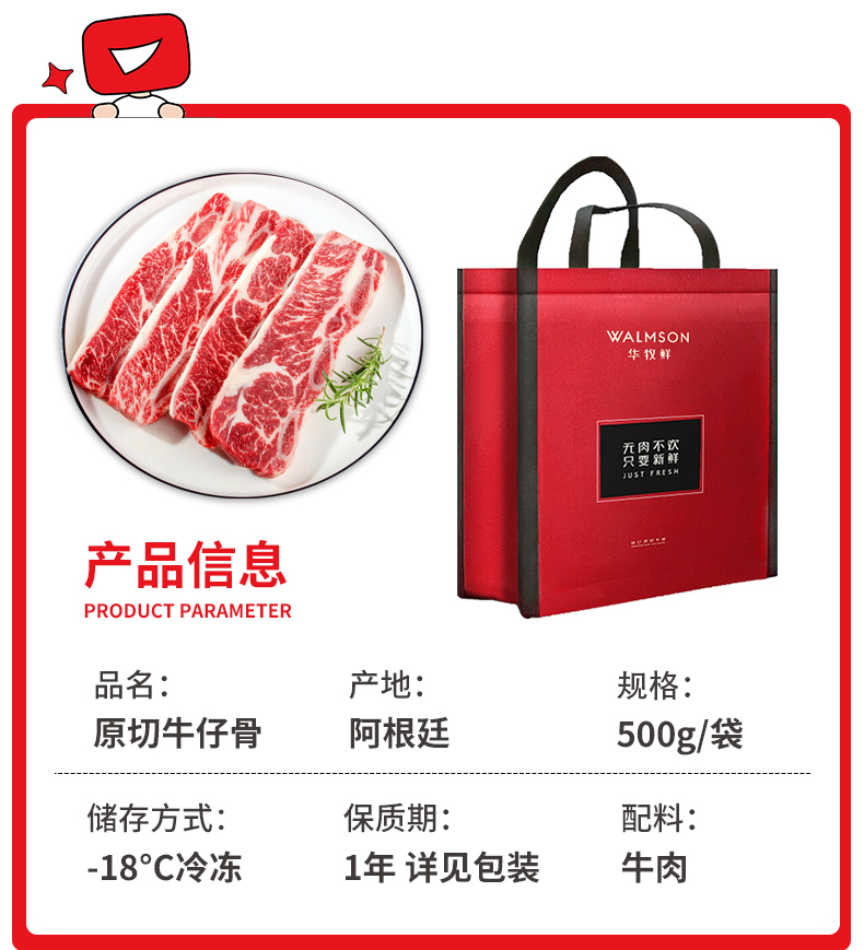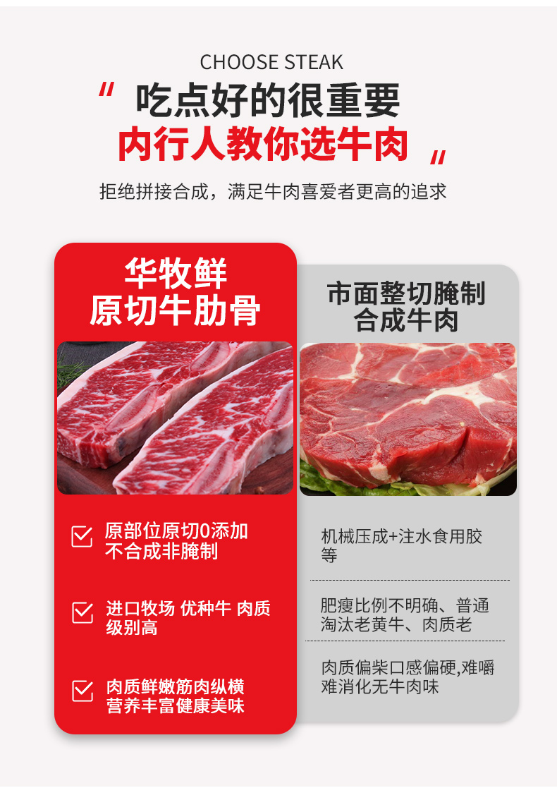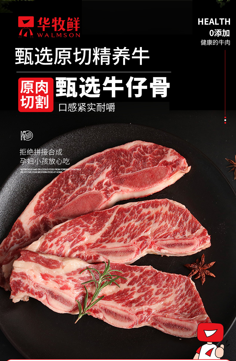 华牧鲜甄选牛肋排牛仔骨500g*3袋