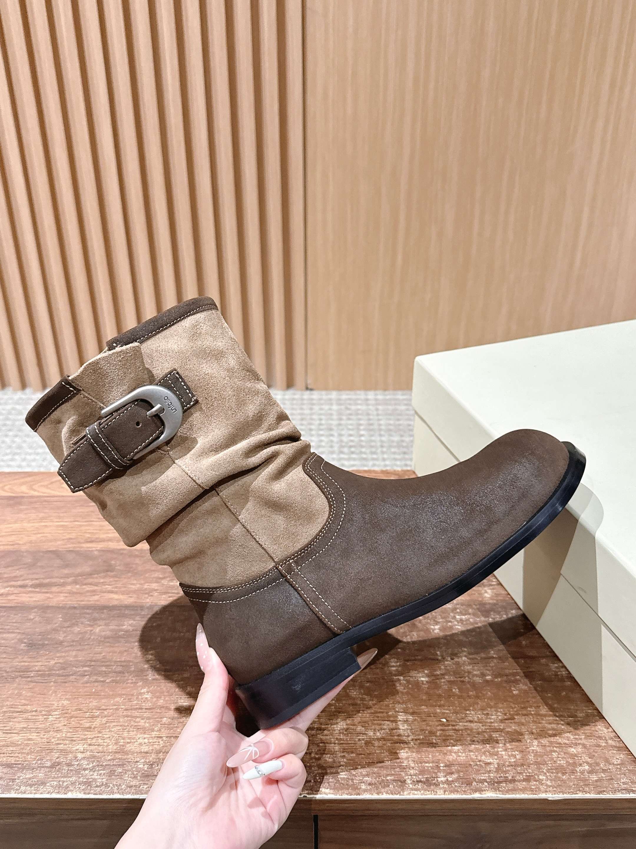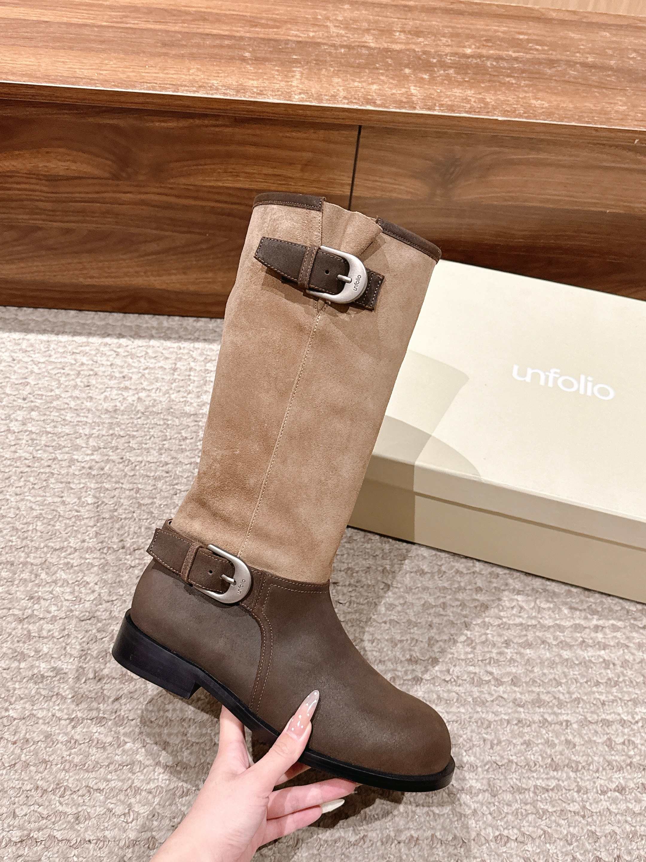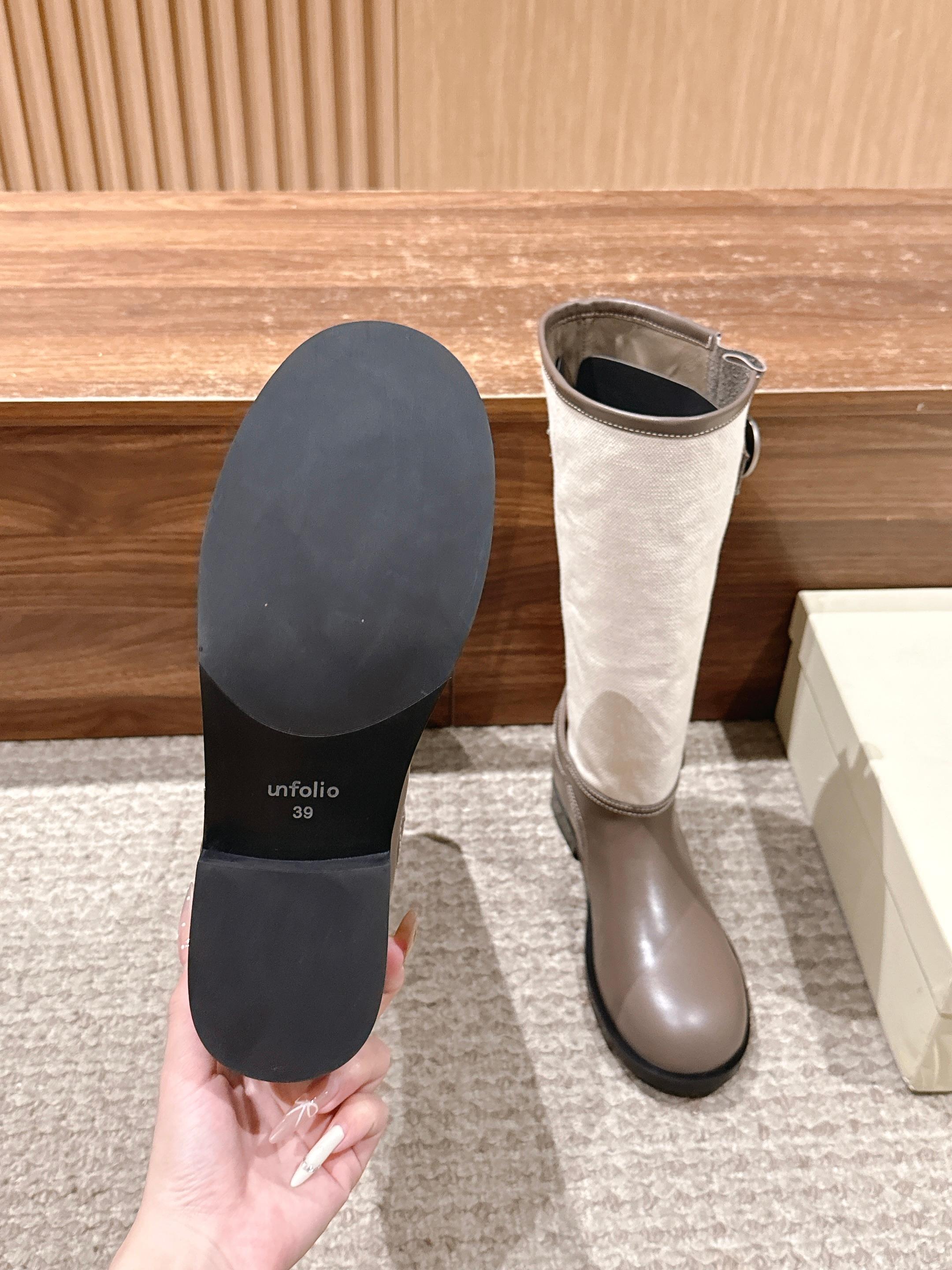 Unfolio 25s秋冬新款 全面升级款 松弛有度的堆叠美学骑士长靴 精准地捕捉了当代极简主义与慵懒高级感并存的审美趋势。不像传统骑士靴那般一丝不苟,而是通过精心设计的“堆叠感”,在经典的靴型中注入了随性与呼吸感,成为衣橱中兼具力量与柔情的标志性单品。 “骑士靴”本身自带利落、挺拔与中性的基因。Unfolio的巧妙之处在于,保留了骑士靴的核心元素——及膝或过膝的高筒、流畅的靴型线条、简约的侧面轮廓,但却在细节上做了“软化”处理。最核心的,便是用堆叠感取代了传统的紧绷感,如同为硬朗的骑士铠甲换上了柔软的皮革战衣,呈现出一种不费力的时髦。 堆叠感并非静态的装饰,而是随着步履移动,在脚踝及小腿处自然形成的柔和褶皱。这些褶皱打破了长靴固有的束缚感,赋予了靴子动态的生命力。 Unfolio骑士长靴的“堆叠感”,是一种精心策划的随性。通过顶级柔软的革料和精准无比的立体剪裁,将骑士靴的飒爽与现代着装所需的舒适松弛完美融合。不仅仅是一双靴子,更是一个会呼吸的、能与穿着者共同塑造形态的动态艺术品。传递出的是一种自信且游刃有余的时尚态度:无需紧绷,亦可高级。 材质:牛反绒/牛皮 内里:羊里 大底:橡胶大底 鞋码:35-39/40定制不退换