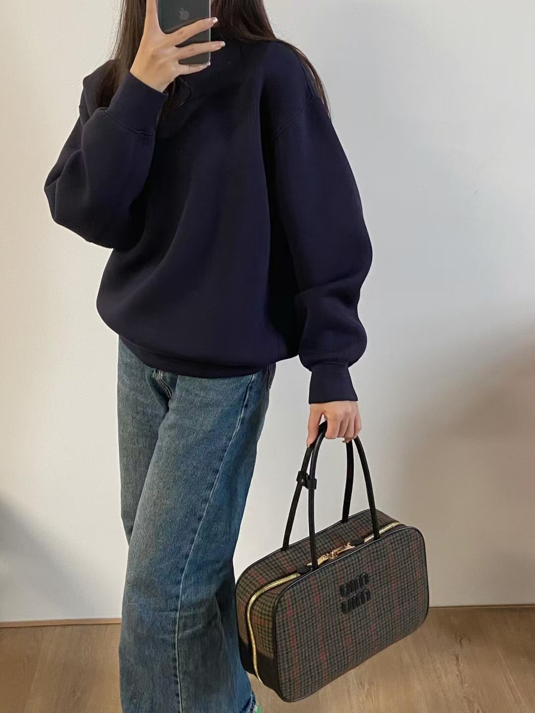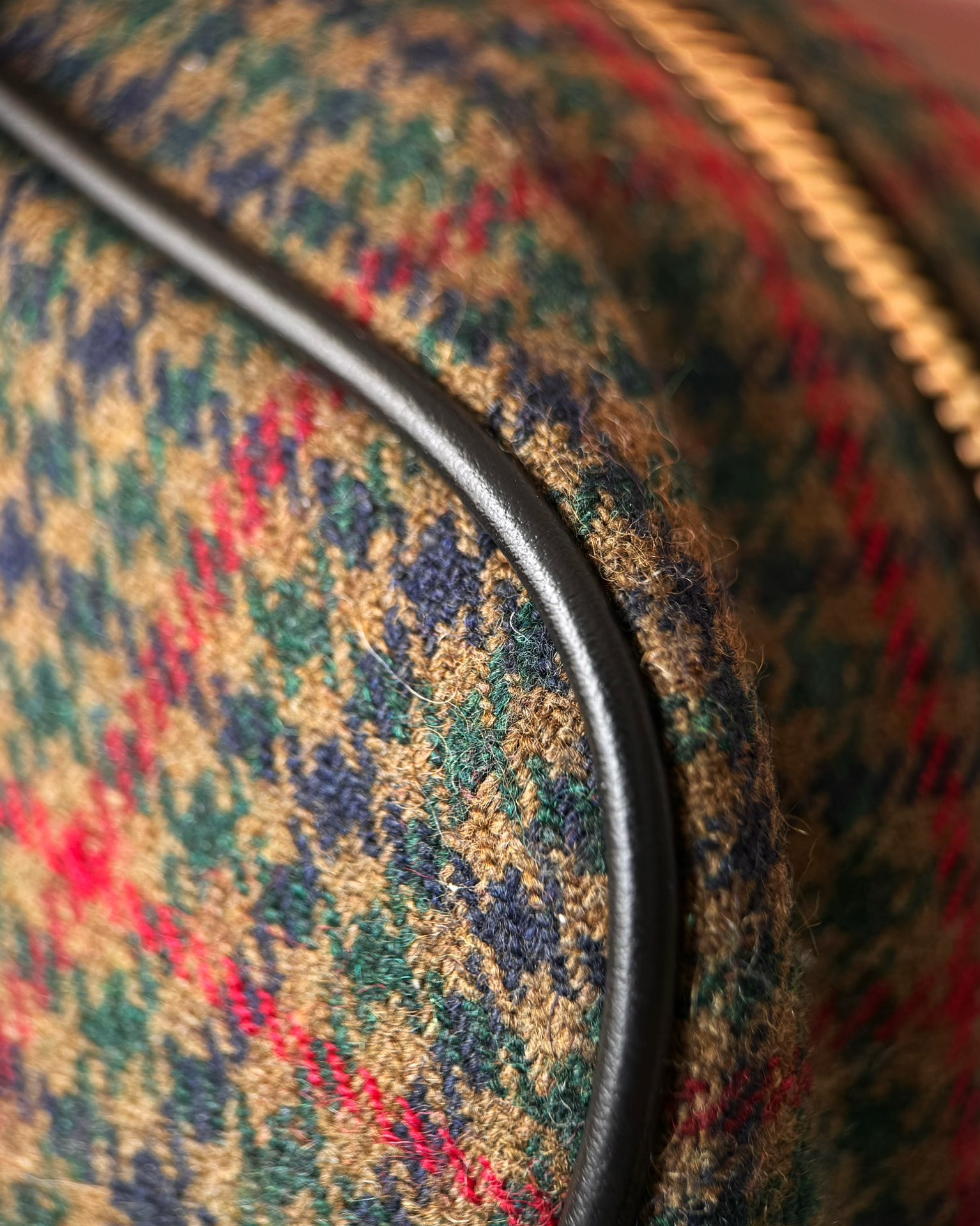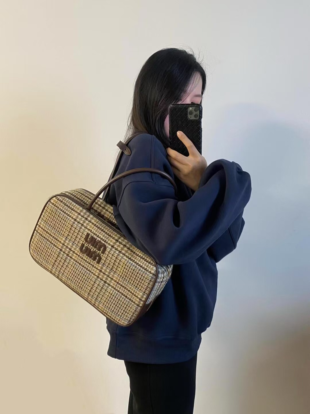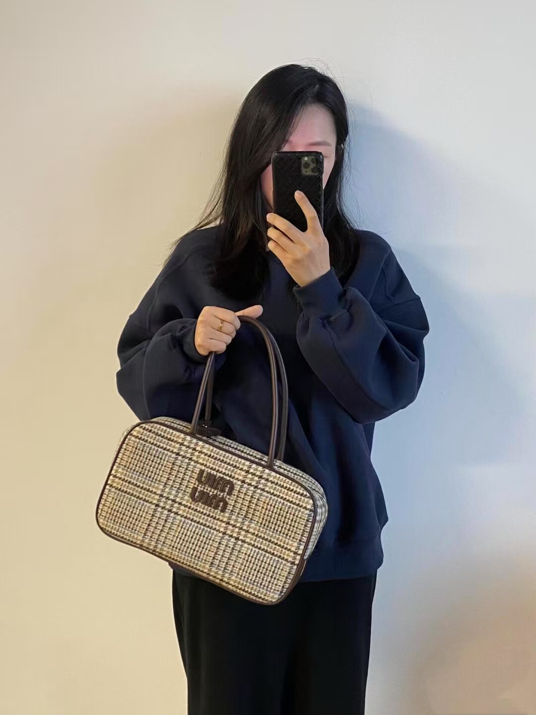 非常难买的千鸟格系列,“快闪店”限定发售款,全凭手速抢的,保龄球包型从褶皱羊皮到平纹牛皮、拼接皮、麂皮再到千鸟格,每一版都能打、能爆,真的杀疯了,皮料相对好找一点,但是这原版千鸟格毛呢料非常难弄,哪怕一点点区别都非常的明显,贸易公司定料都是有起订量的,跟小香的毛呢料差不多,投入太大了,但是阻止不了它的好看啊,整批就40多只,售完无补!