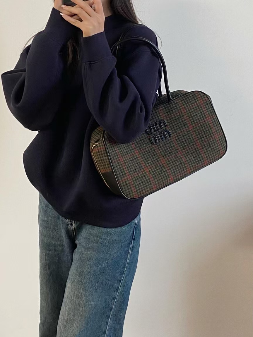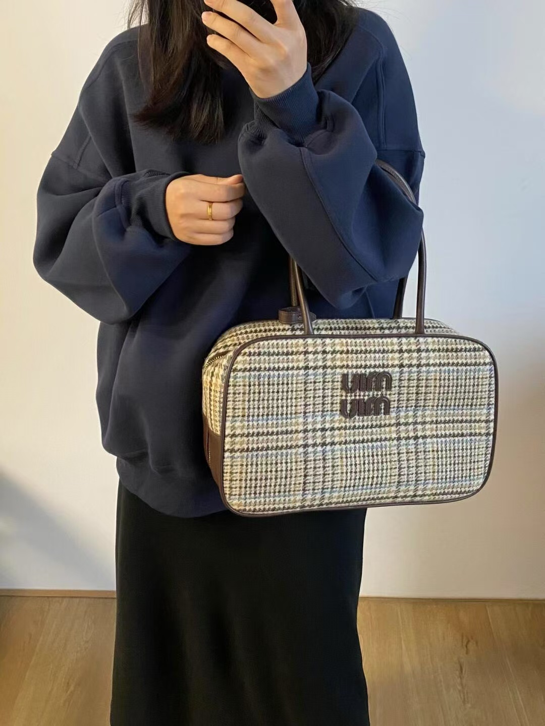 缪缪 “快闪店”限定千鸟格保龄球包!千鸟格毛呢质感厚实的嘞,小小保龄球包应该是目前zui火的包型了哦,不受年龄限制的少女风~
