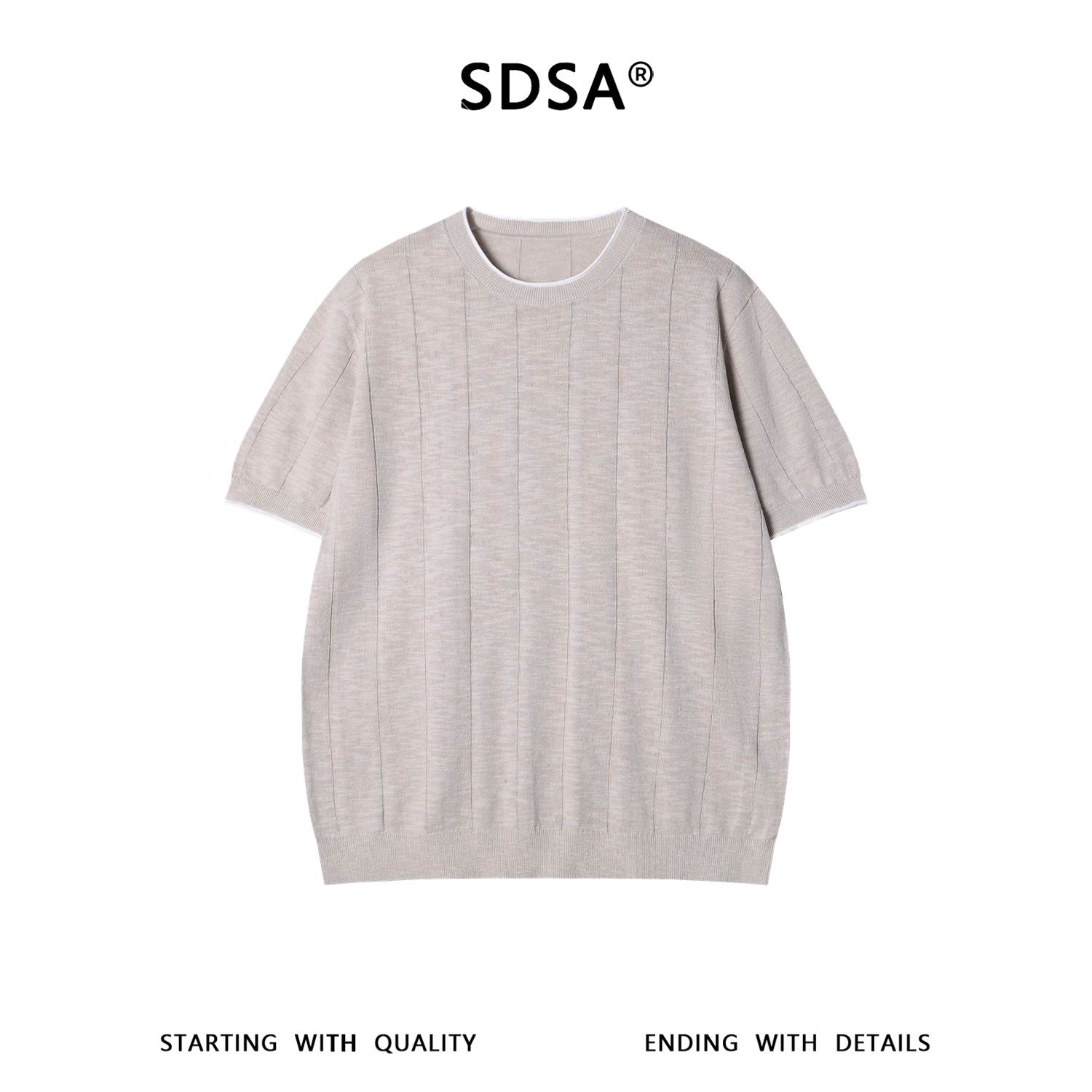 SDSA男装2026新款高贵轻奢坑条撞色边短袖针织T恤宽松肌理感上衣