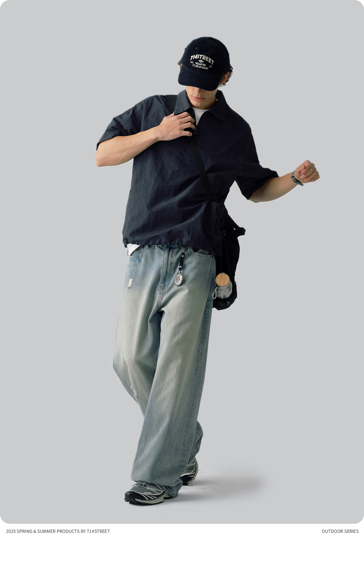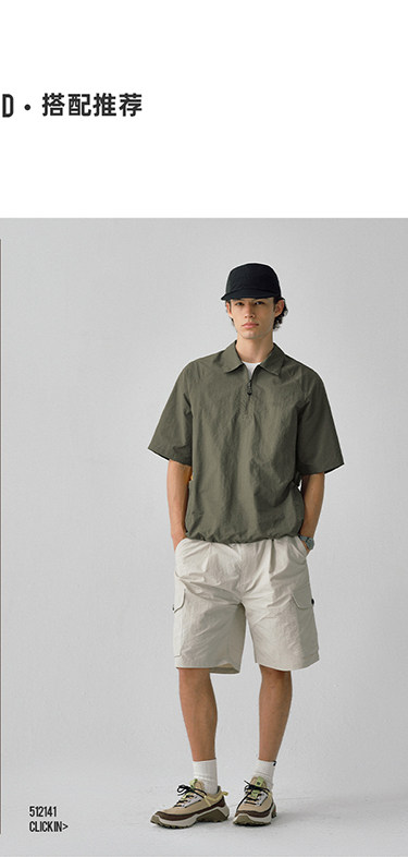 714street日系工装短袖衬衫男25夏季新款美式翻领T恤设计感polo衫