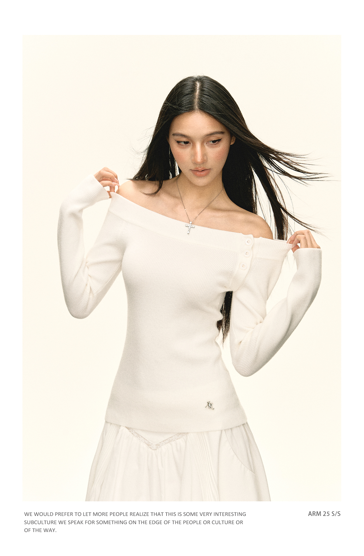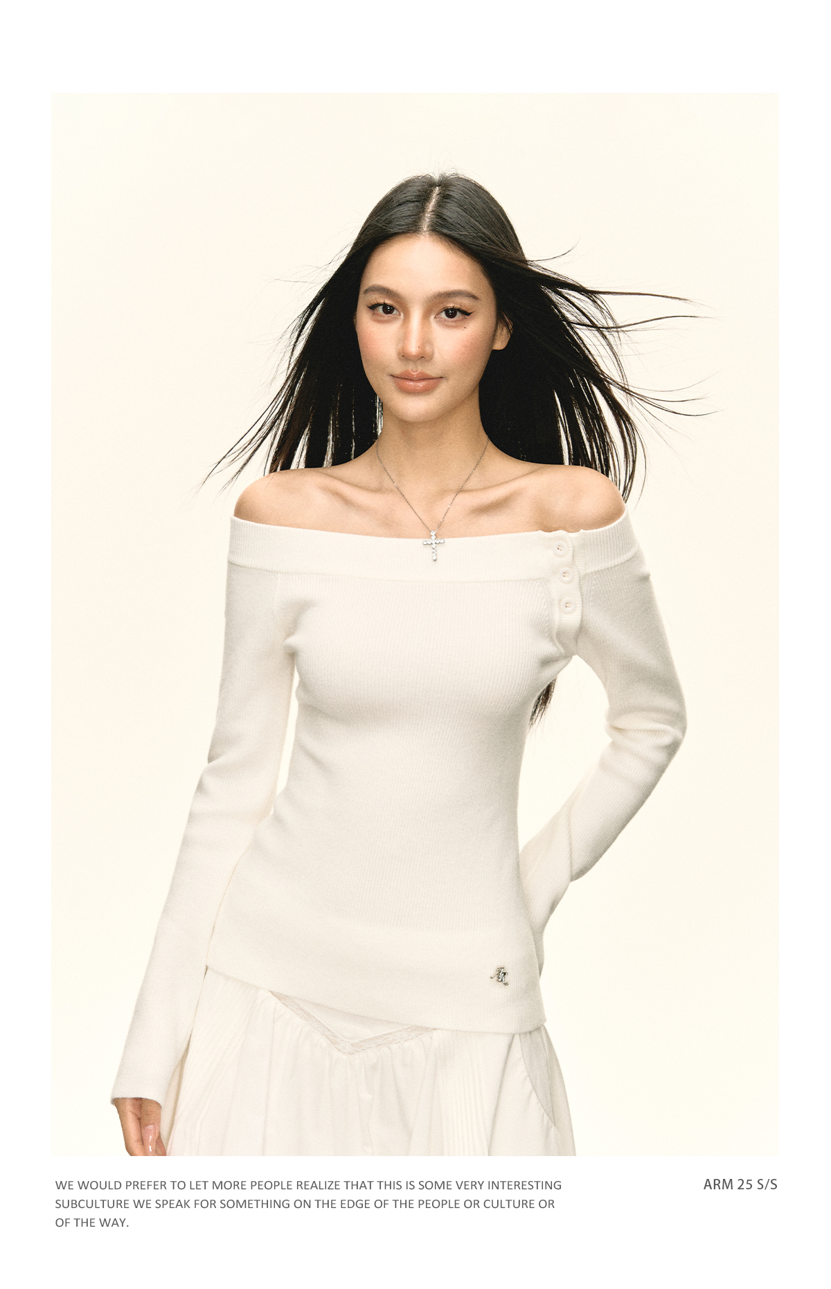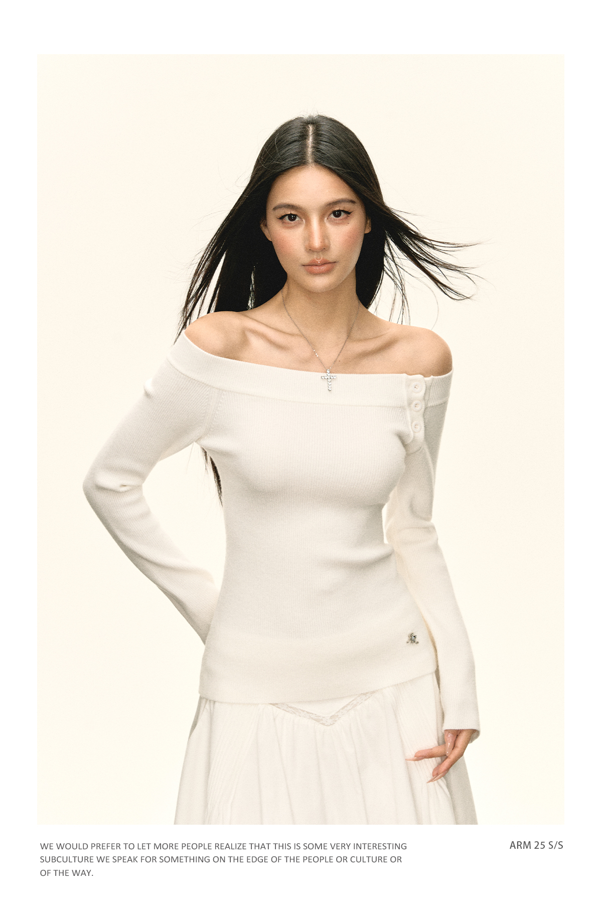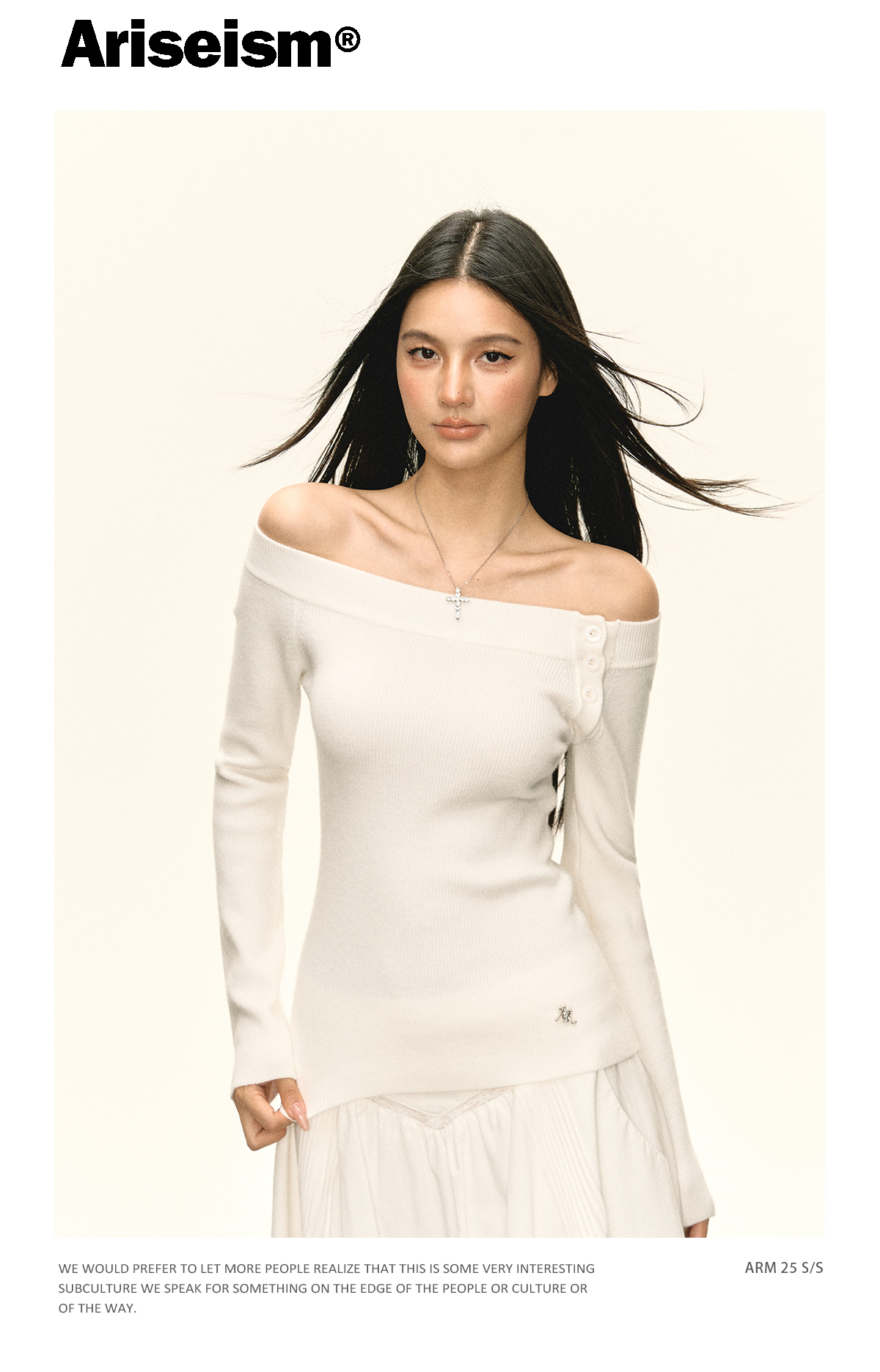 Ariseism美式复古设计感白色一字肩针织衫毛衣女秋冬新款修身上衣