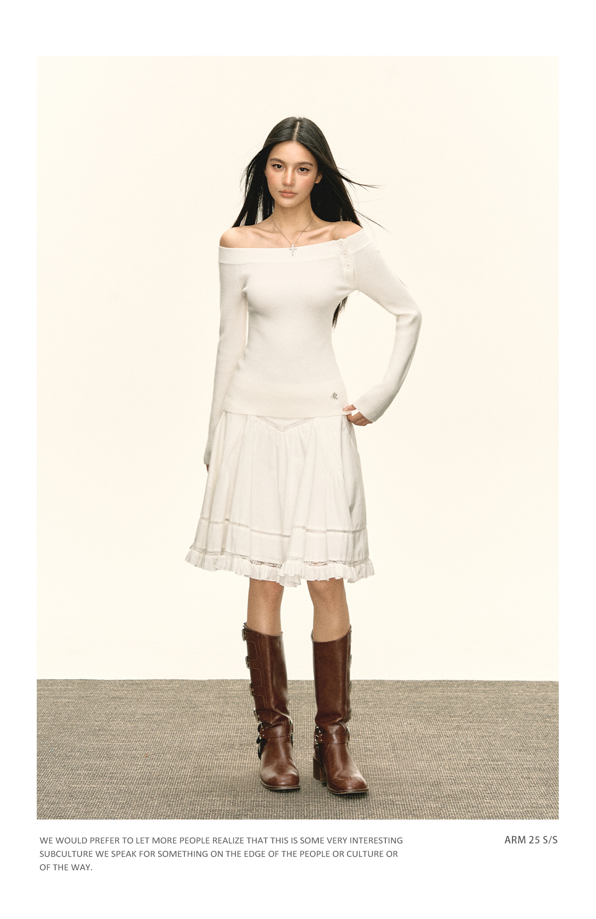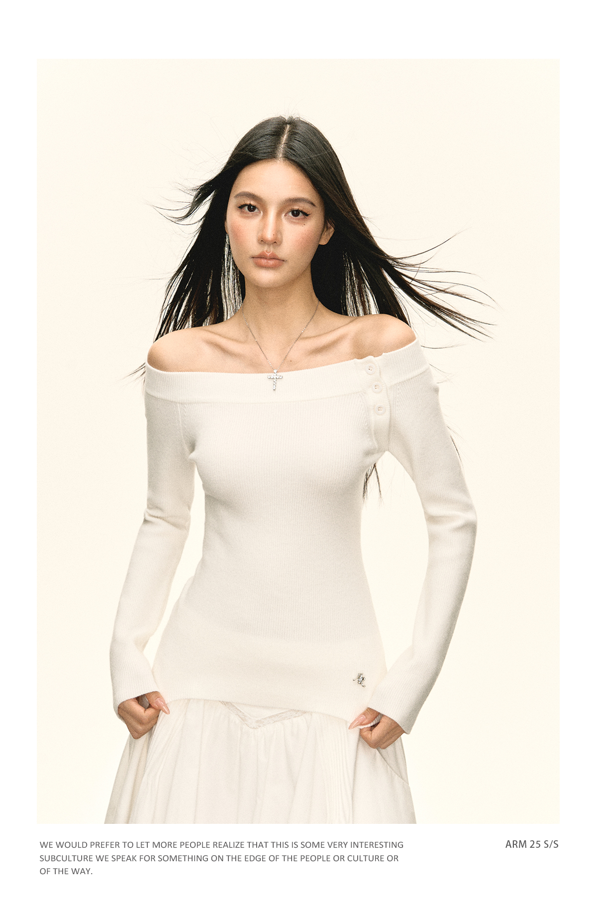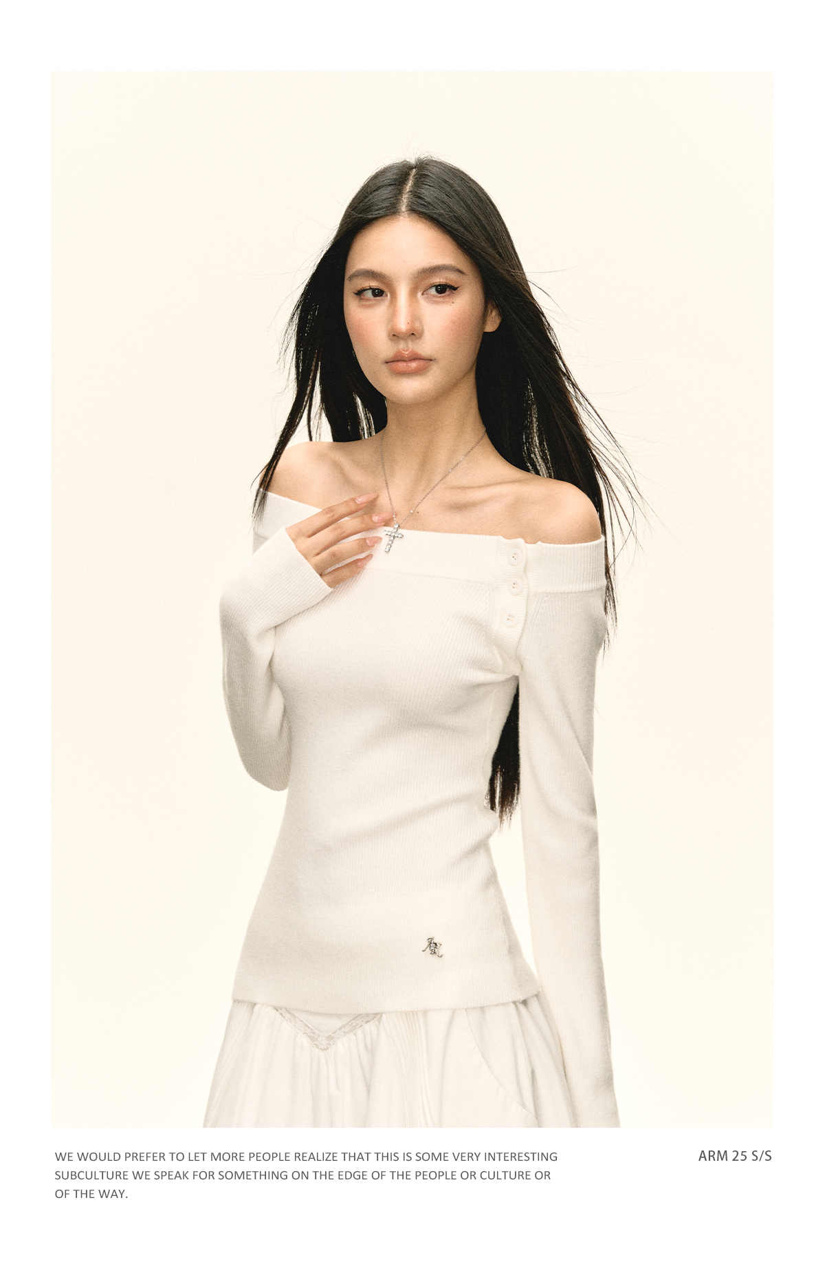 Ariseism美式复古设计感白色一字肩针织衫毛衣女秋冬新款修身上衣