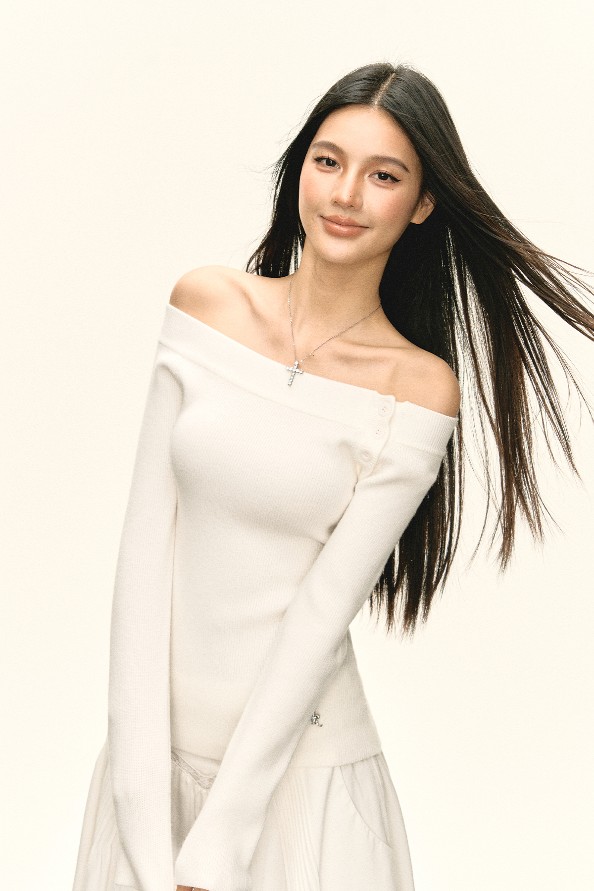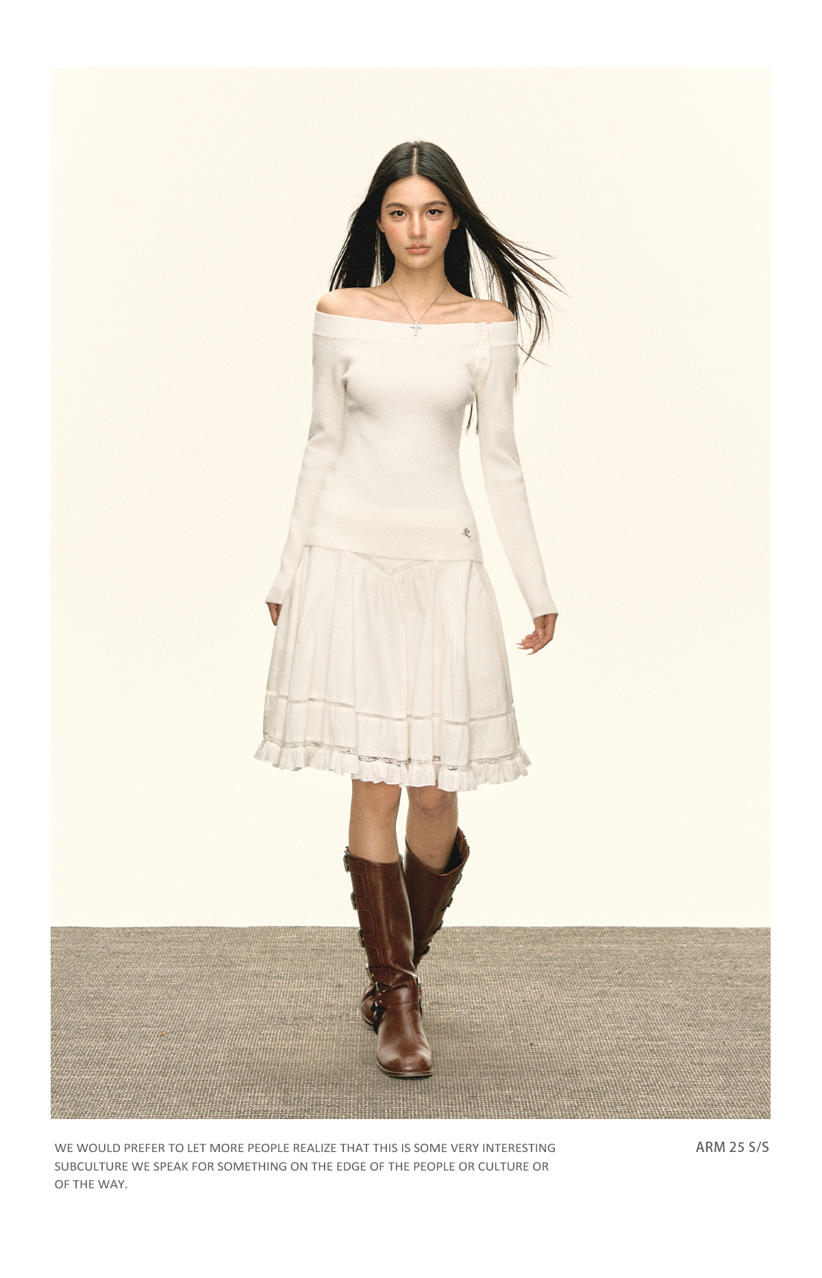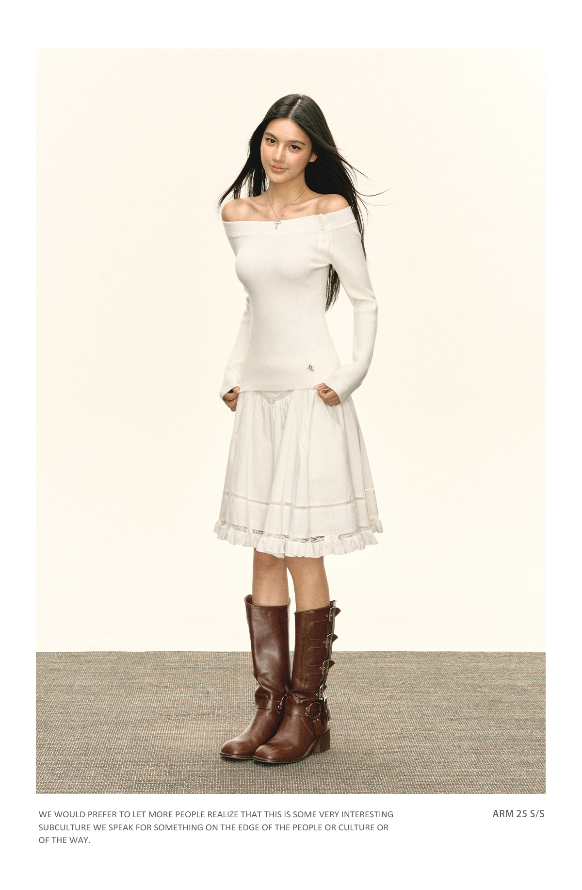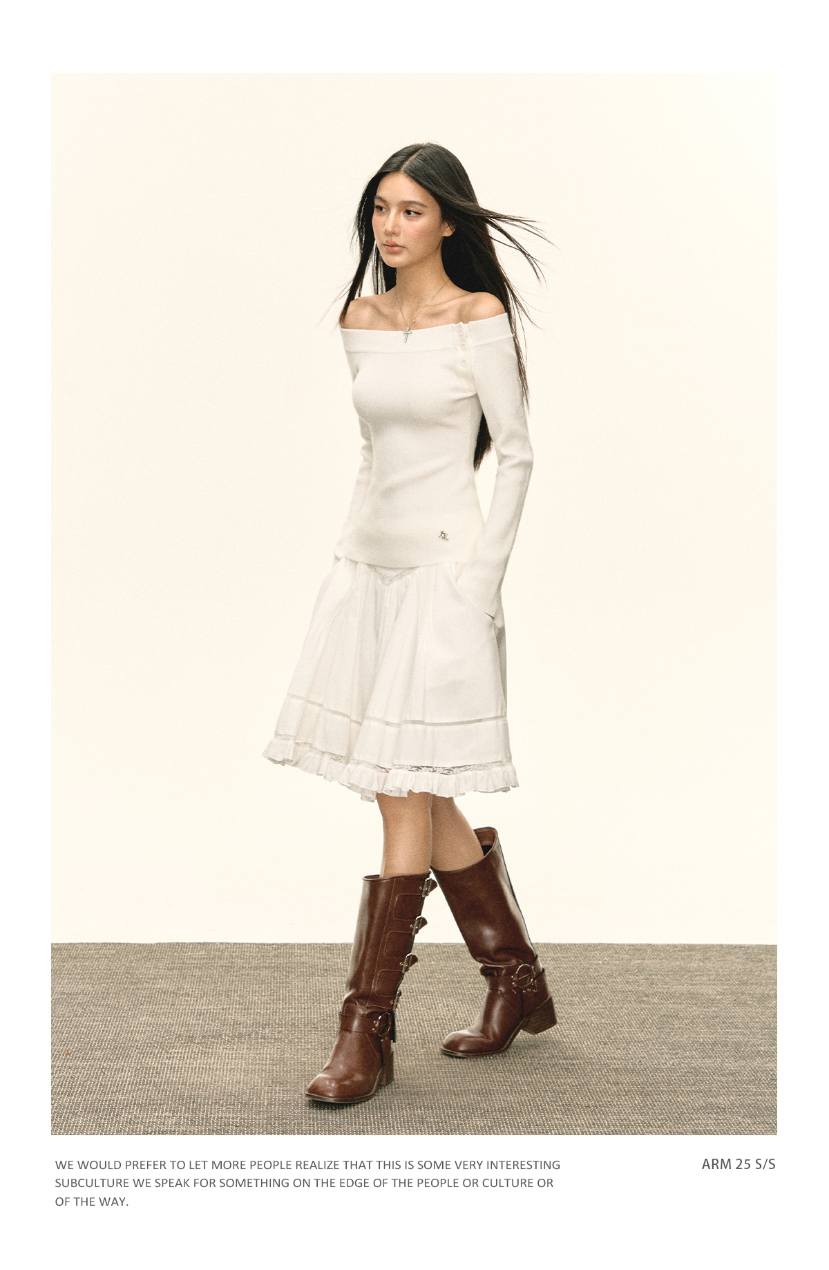 Ariseism美式复古设计感白色一字肩针织衫毛衣女秋冬新款修身上衣