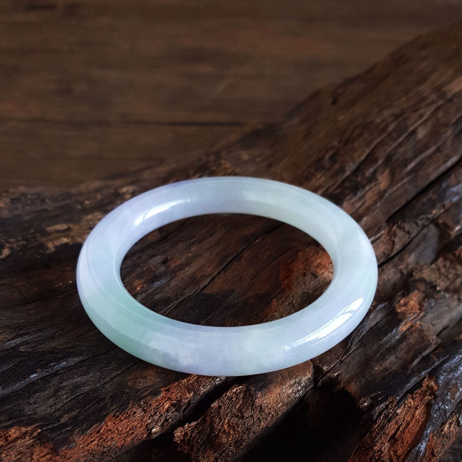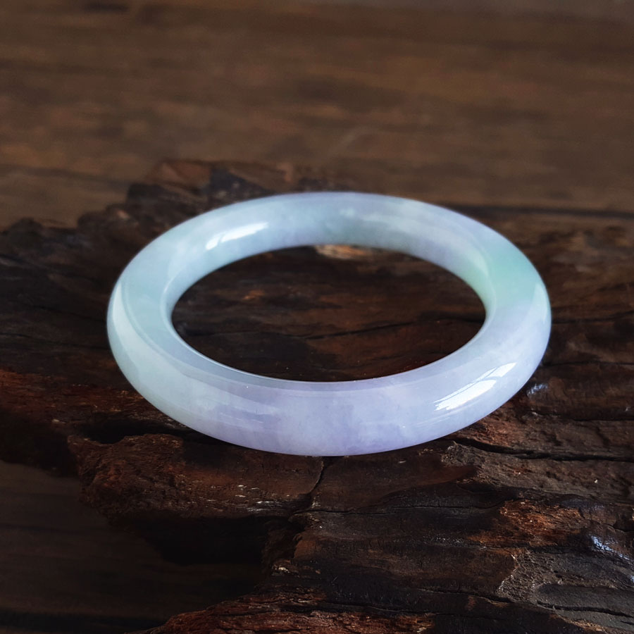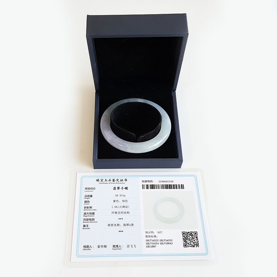 名称 | 天然收藏级细腻无纹裂圆条糯冰种春彩紫罗兰54号翡翠手镯 |