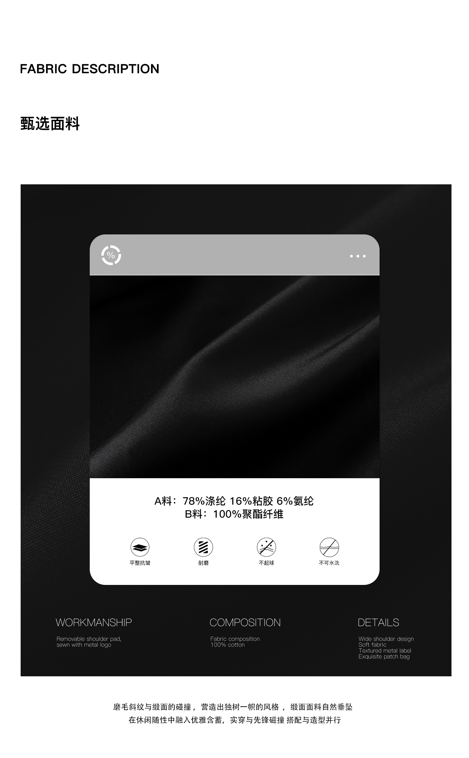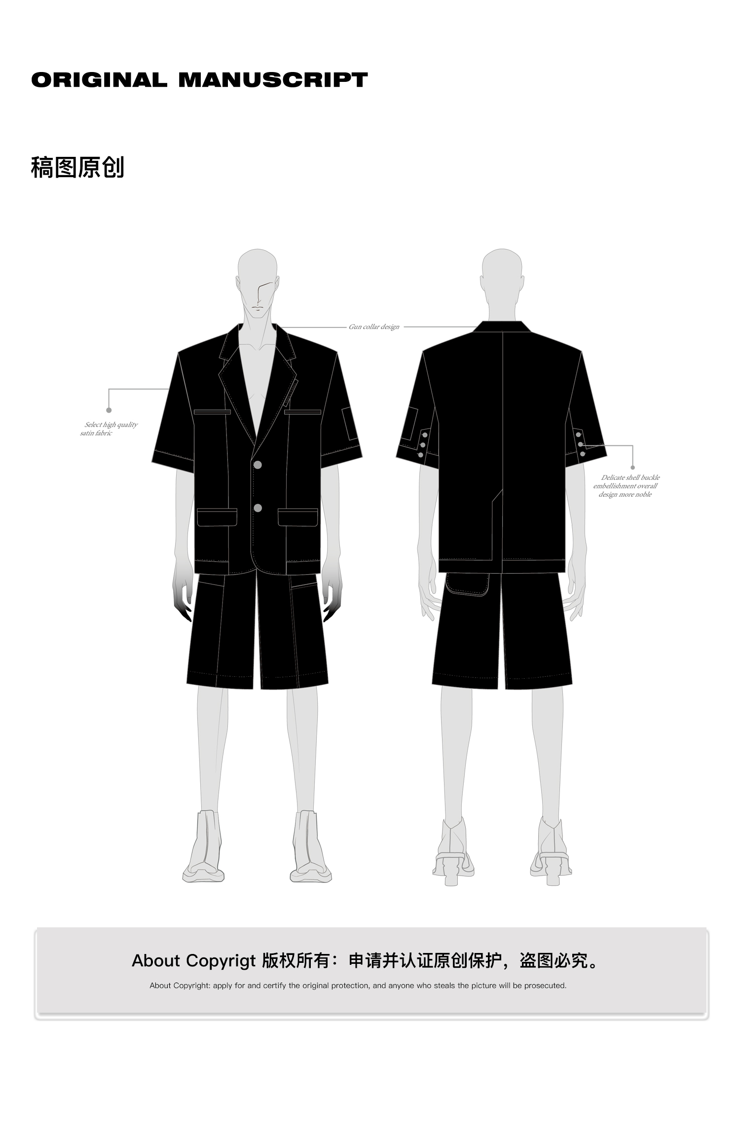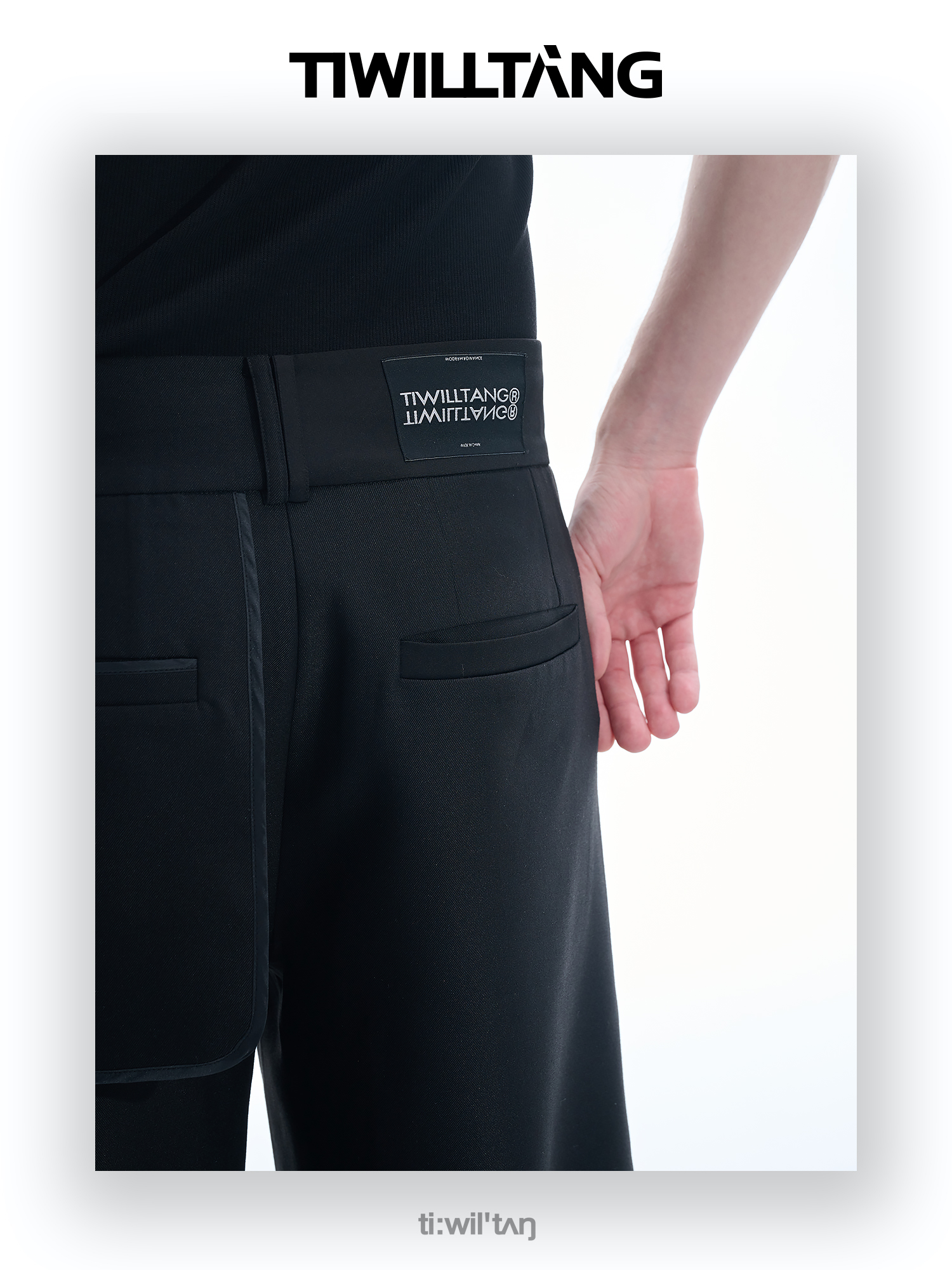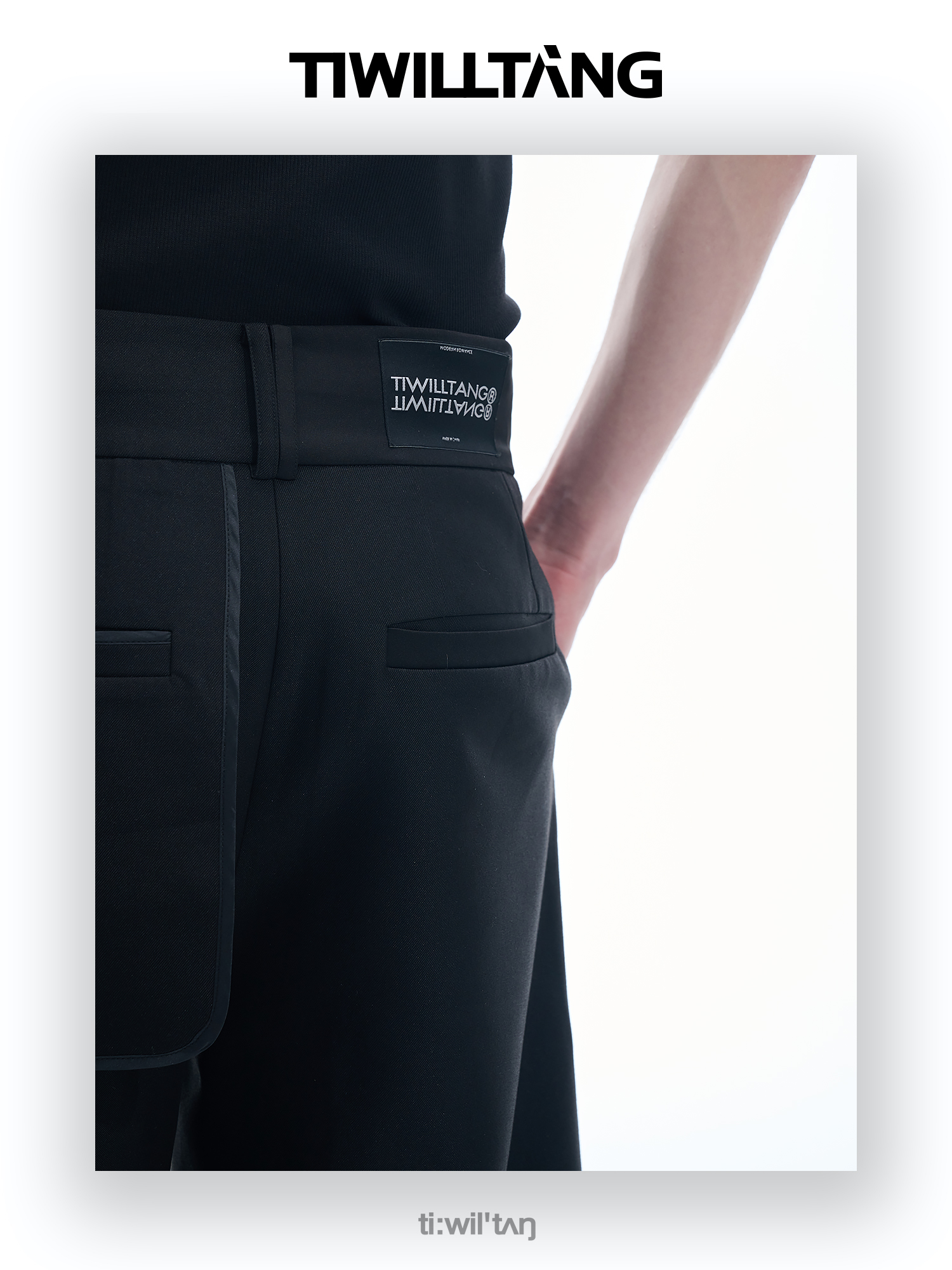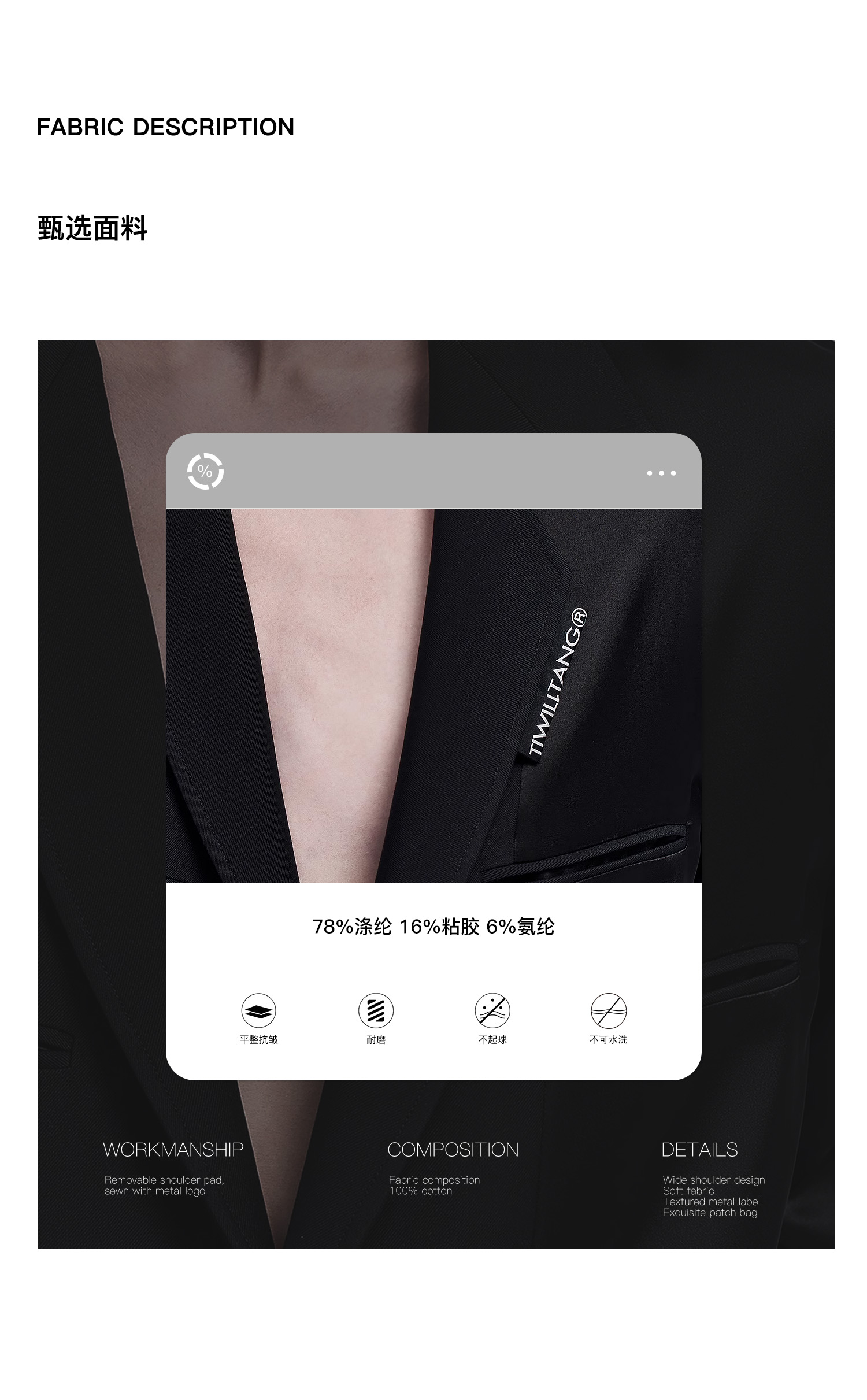 启世录TIWILLTANG“溶韵烬涉”缎面拼接西装套装夏季黑色外套男