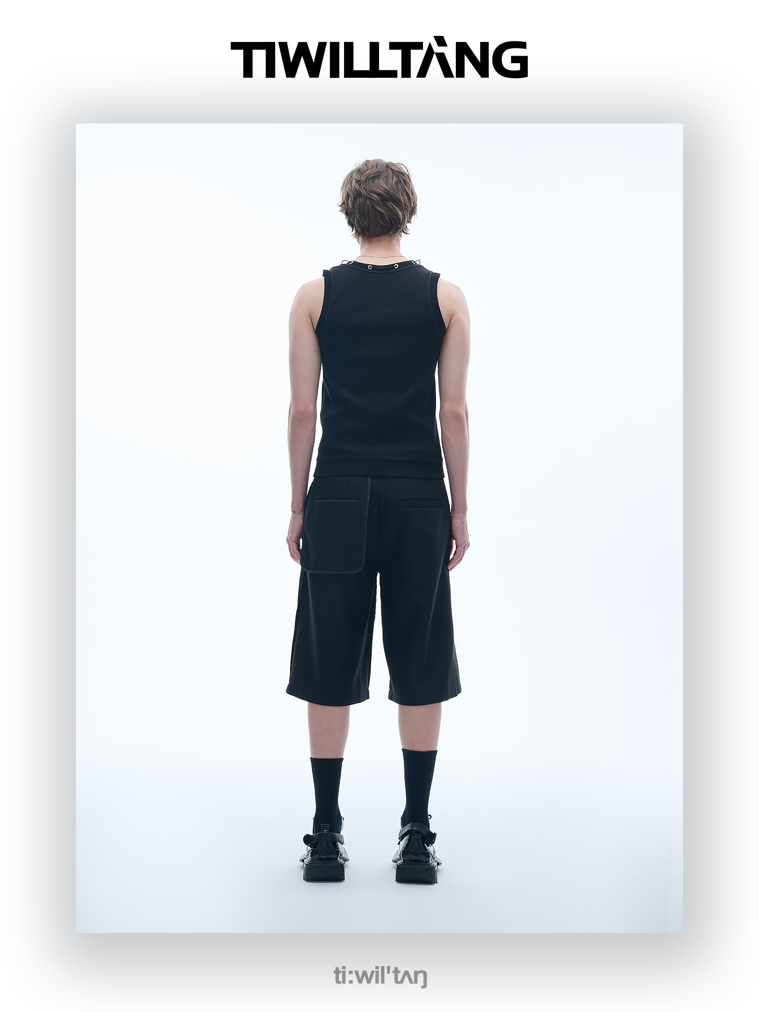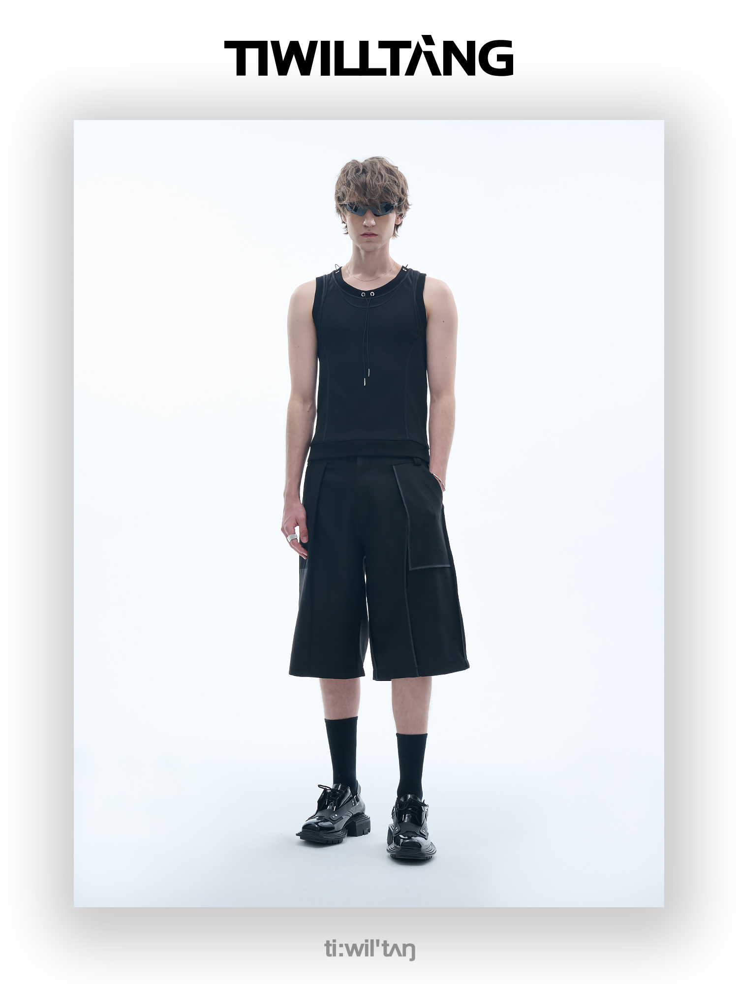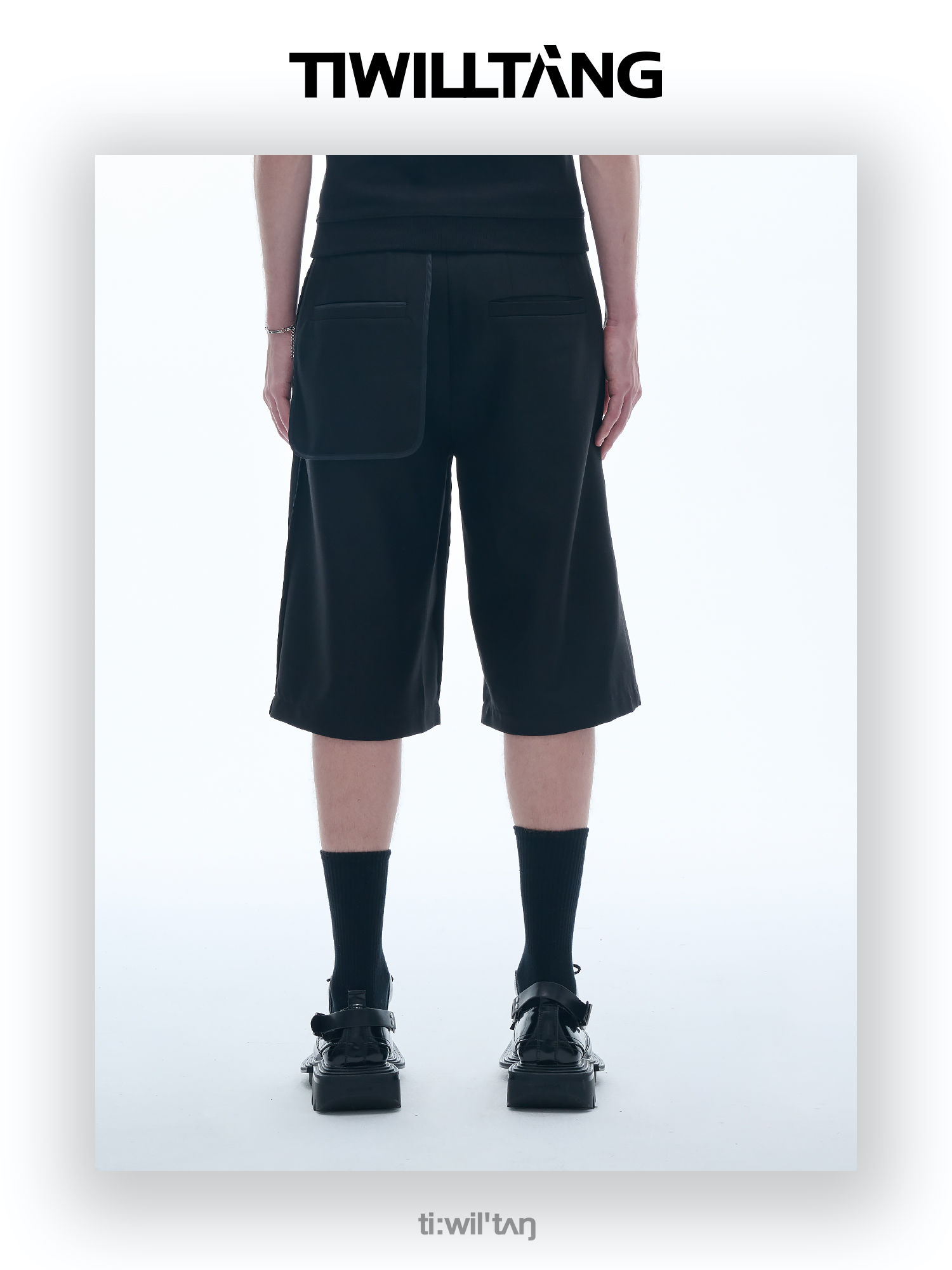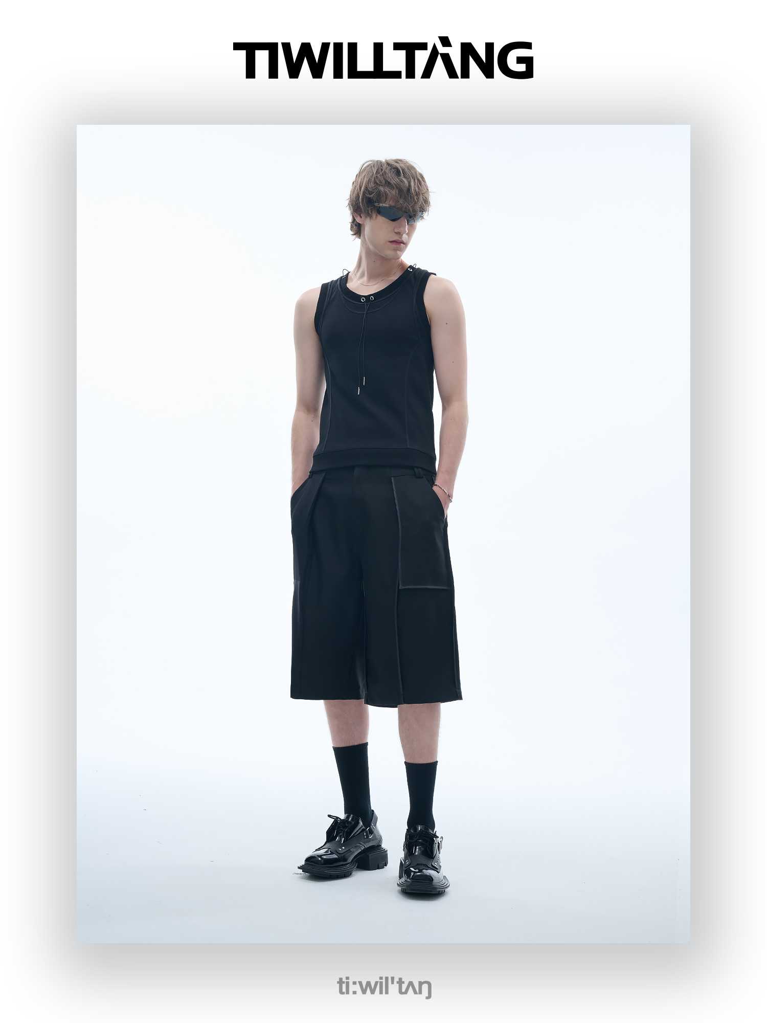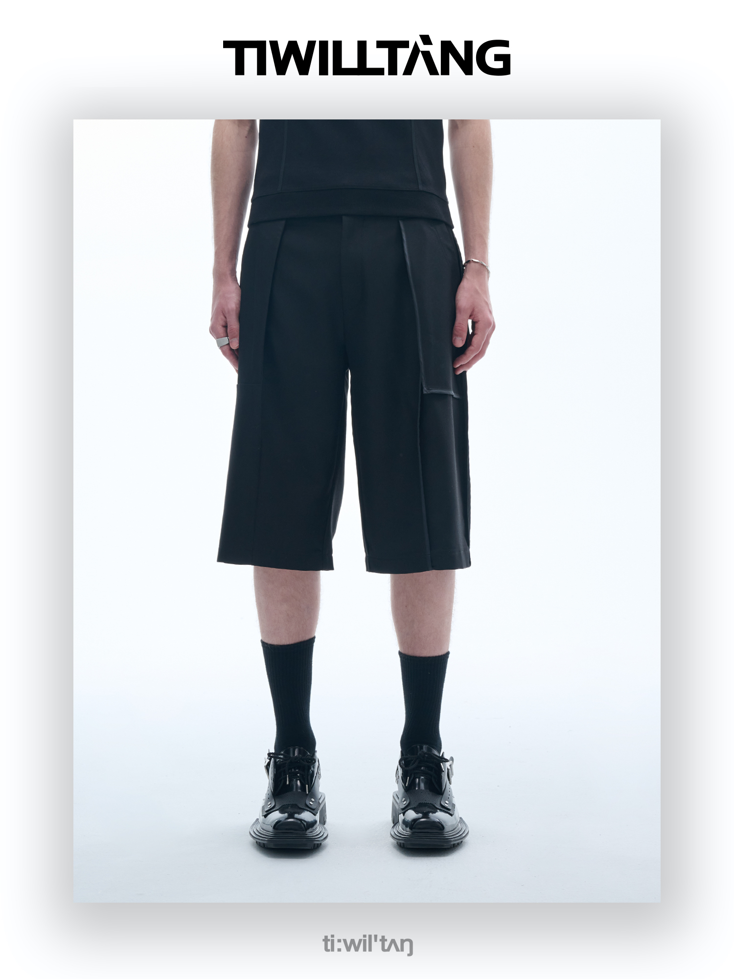 启世录TIWILLTANG“溶韵烬涉”缎面拼接西装套装夏季黑色外套男