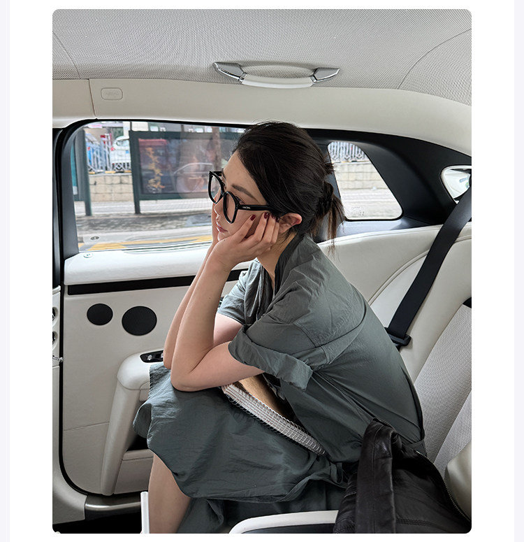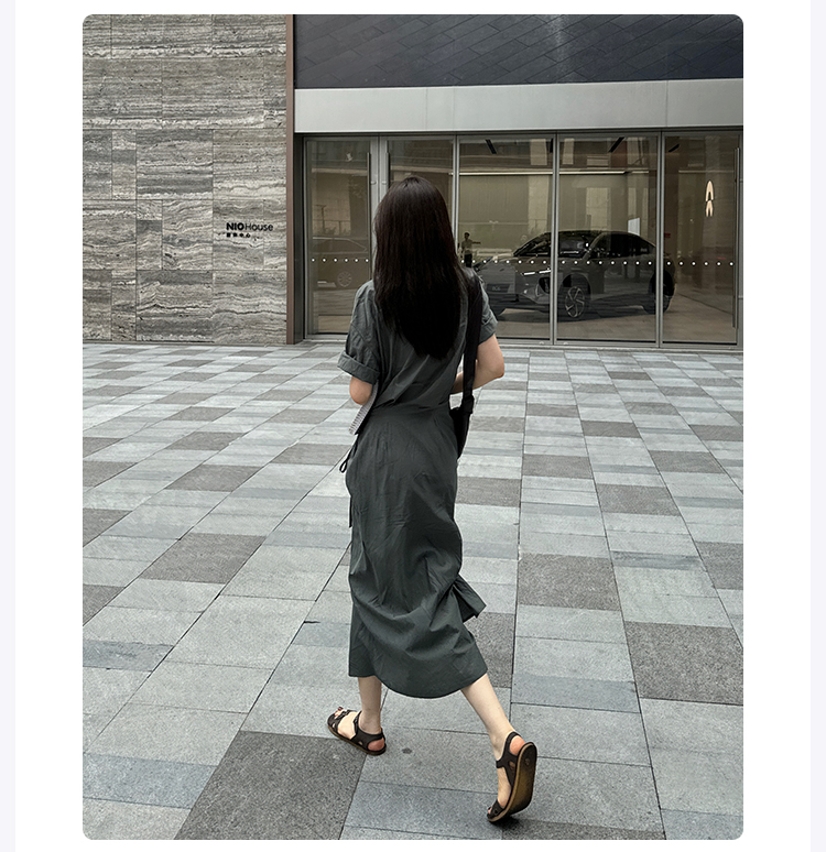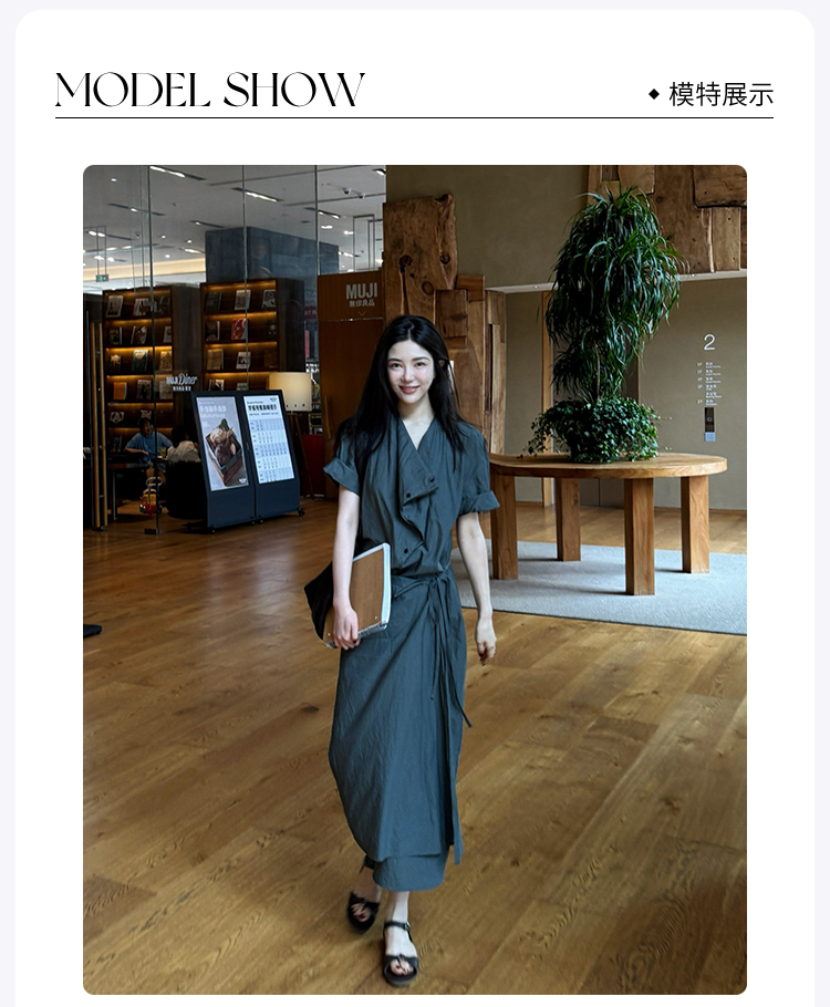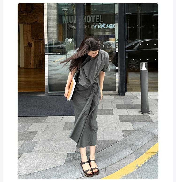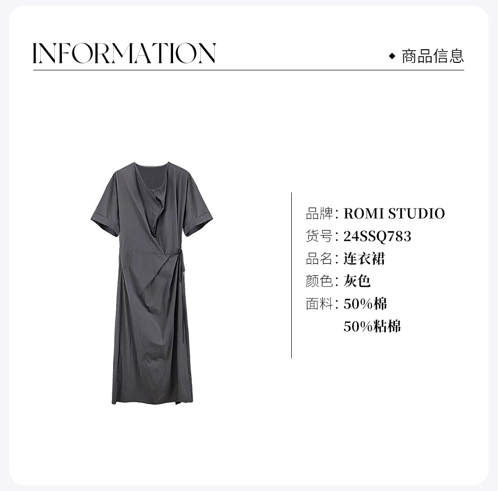 ROMI STUDIO“轻盈姿态”肤感棉不规则荡领腰带短袖连衣裙24SSQ783