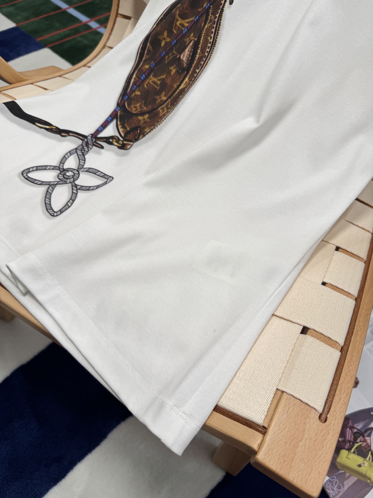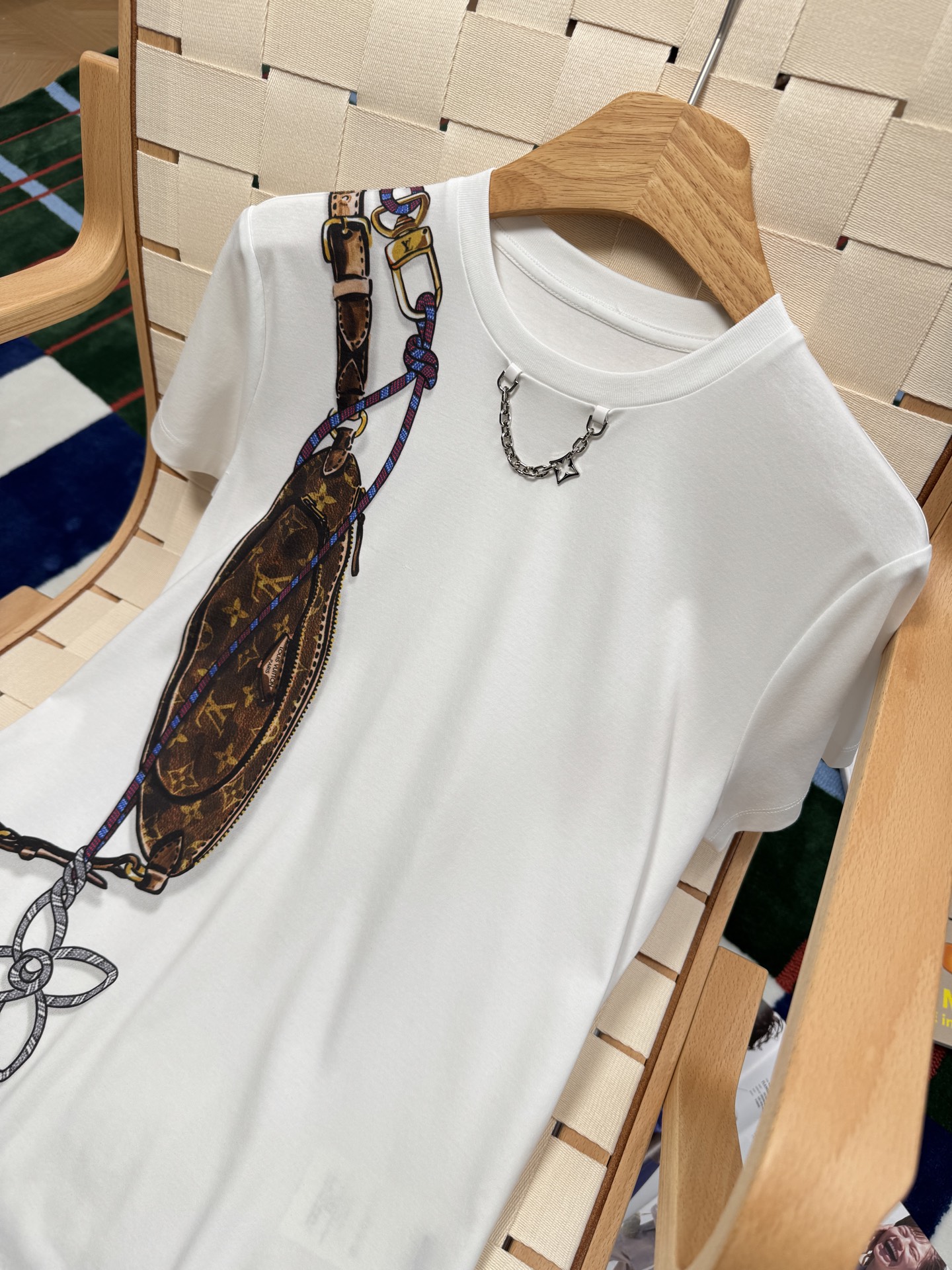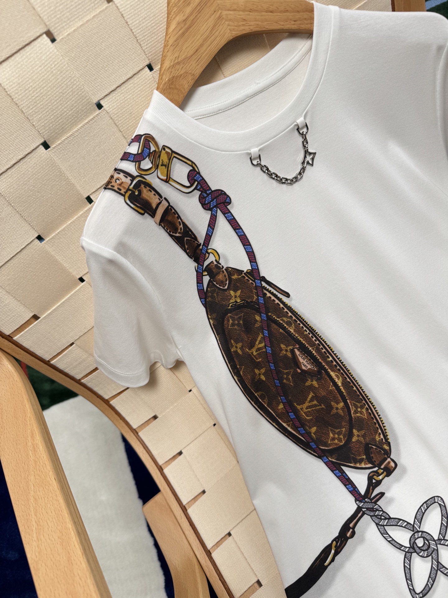 【现货发售】最最最新款印花短袖T恤💫右侧肩部呈现 Keepit 腰包身披 Damier 图案的错视效果图案🔜再以缤纷绳索元素描绘 Monogram 花卉☑️独家开发〰️休闲舒适😍很日常很好穿的单品🤩个性又有时髦的态度🫶🏻随意搭配都休闲感满满,真的可以闭眼入的百搭款T恤😜妥妥的大爆款🔥姐妹们必入〰️码数SML