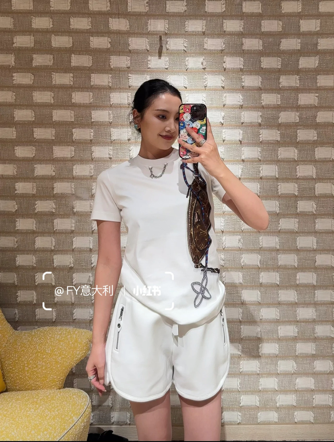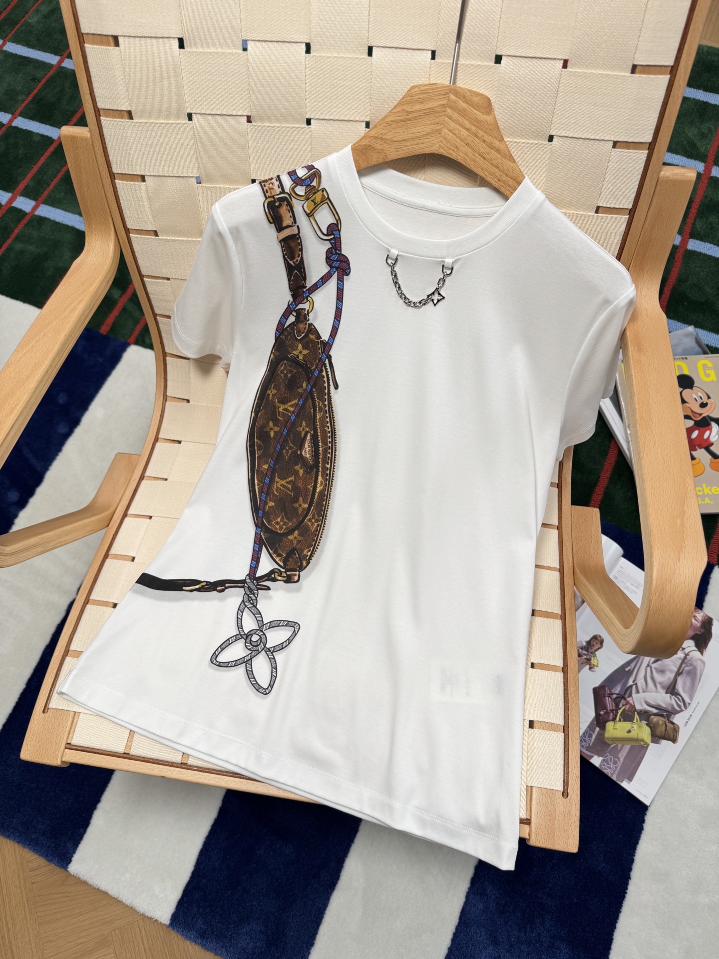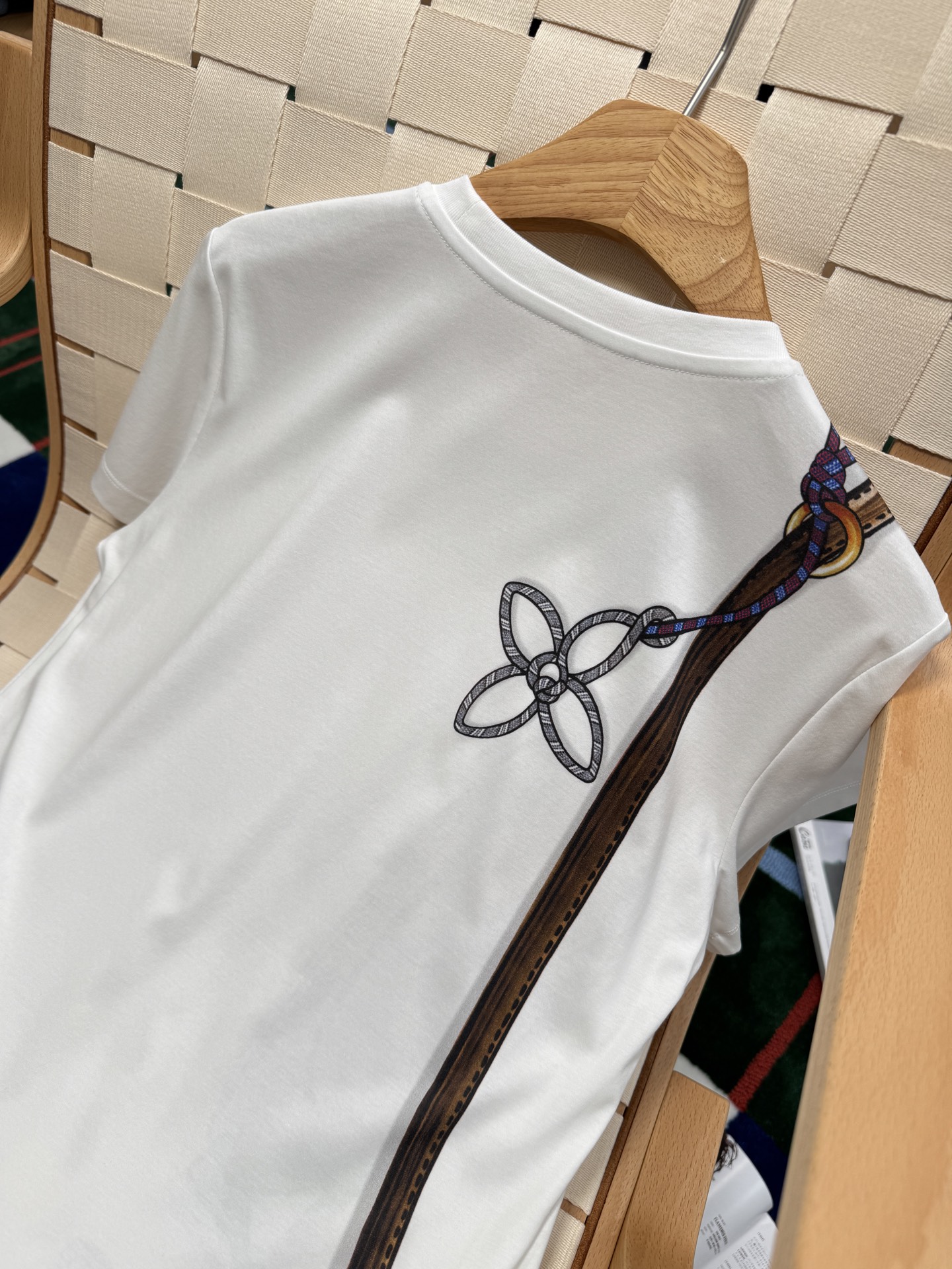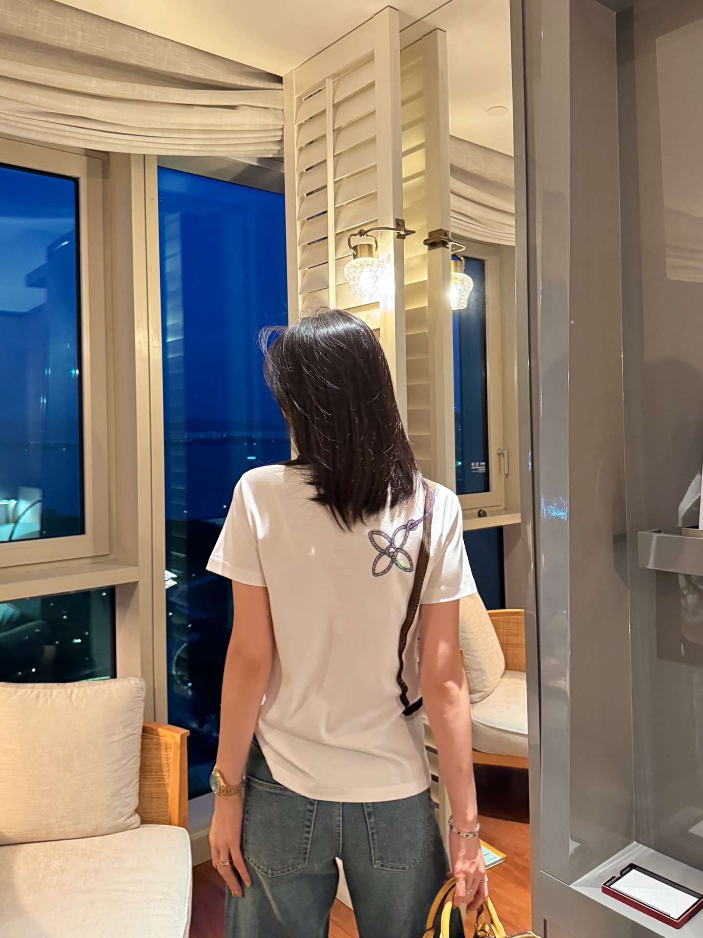 【现货发售】最最最新款印花短袖T恤💫右侧肩部呈现 Keepit 腰包身披 Damier 图案的错视效果图案🔜再以缤纷绳索元素描绘 Monogram 花卉☑️独家开发〰️休闲舒适😍很日常很好穿的单品🤩个性又有时髦的态度🫶🏻随意搭配都休闲感满满,真的可以闭眼入的百搭款T恤😜妥妥的大爆款🔥姐妹们必入〰️码数SML