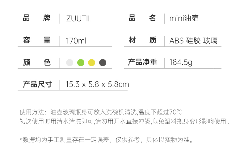 【森哥优选】zuutii 重力油壶 170ml酱油醋调料瓶瓶油壶玻璃油瓶分装套装厨房油罐