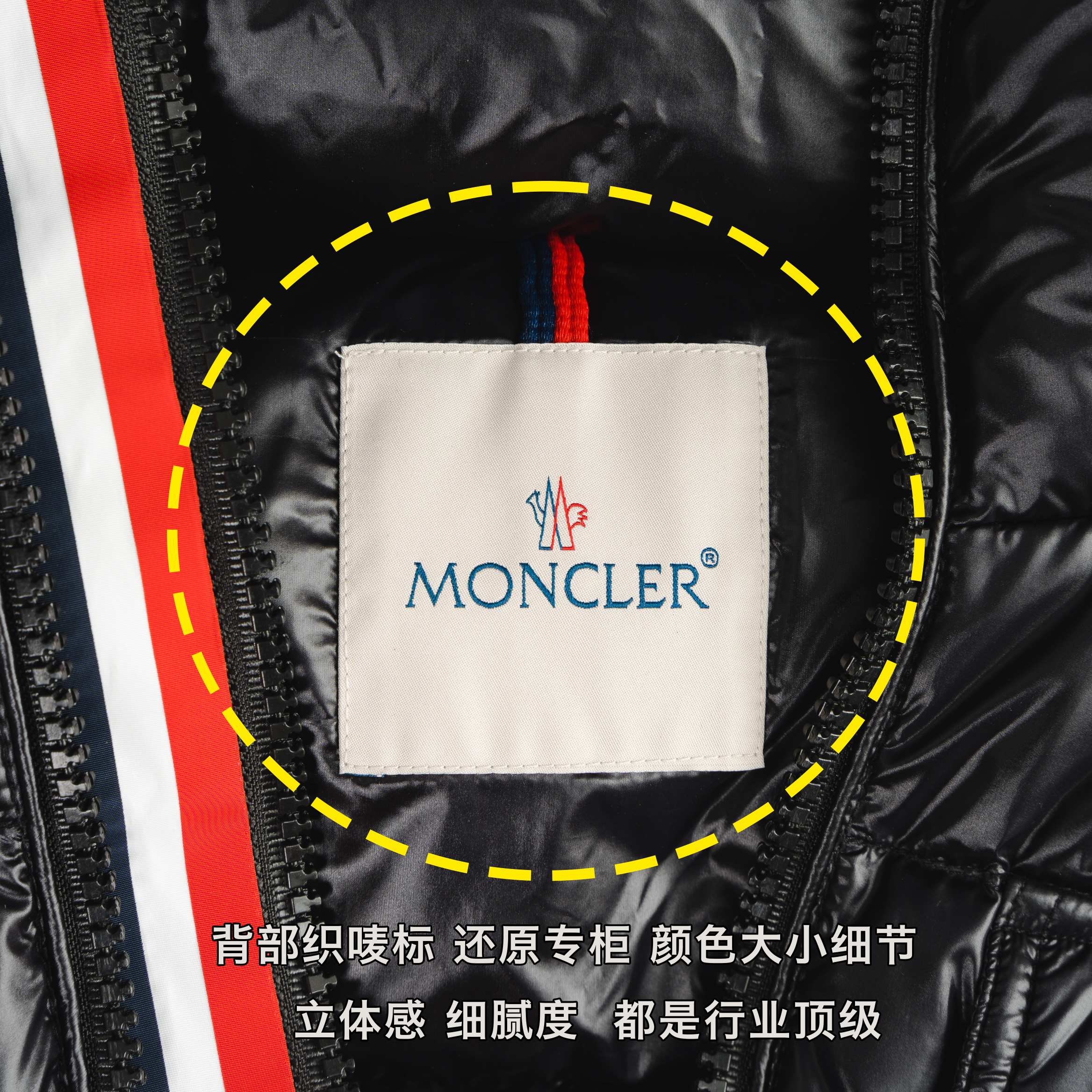 1⃣️ 市面最高工艺原厂级小口袋上点缀Moncler毡艺商标