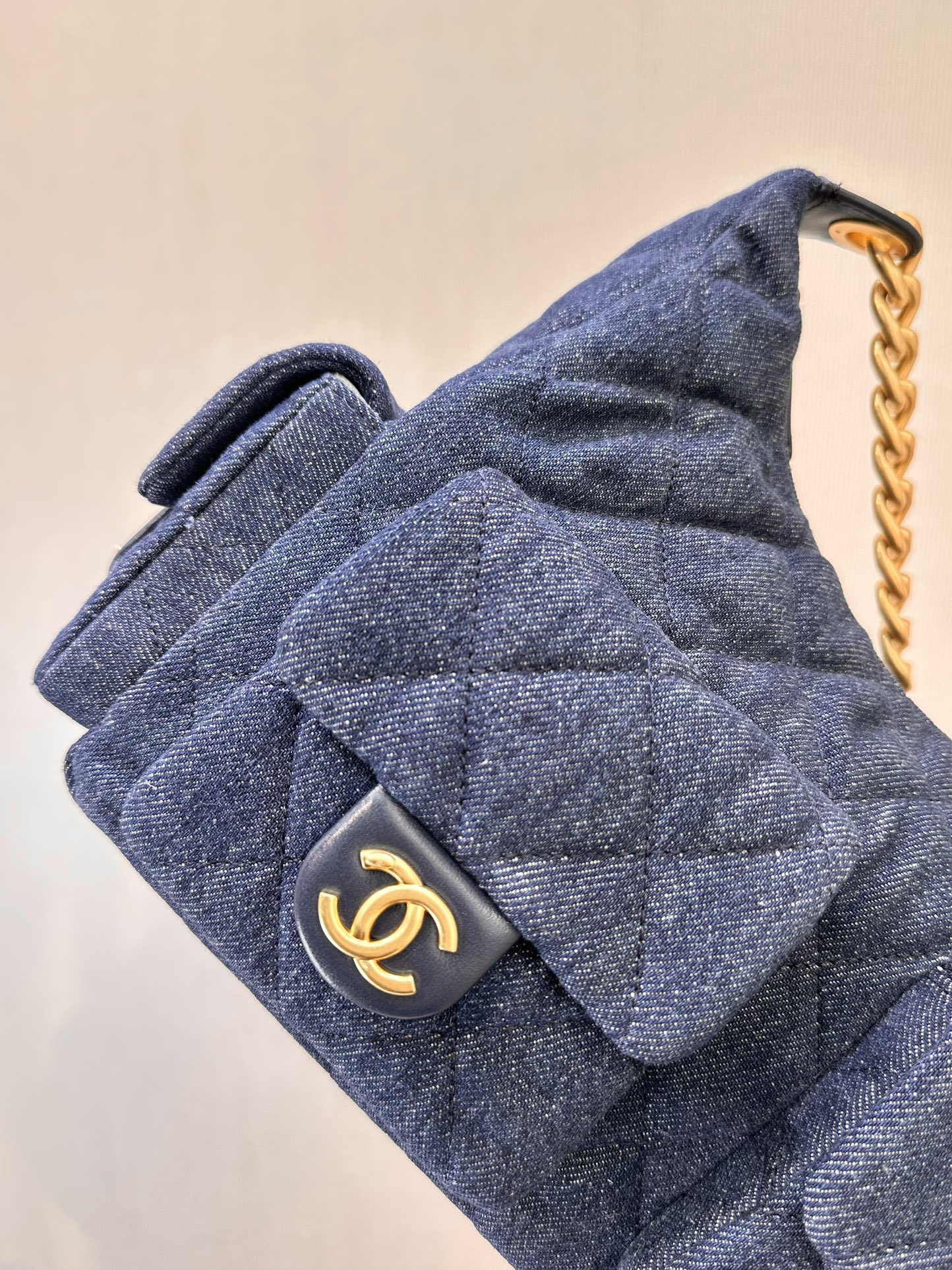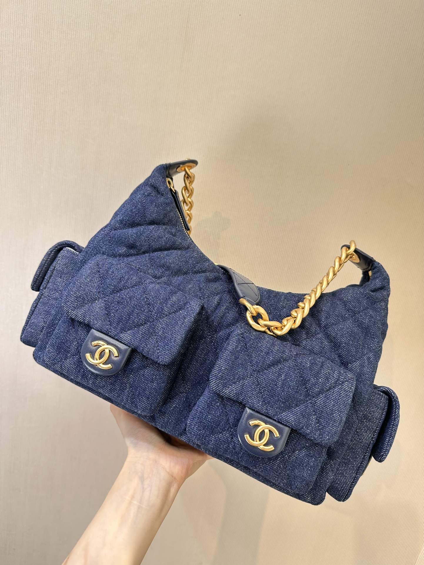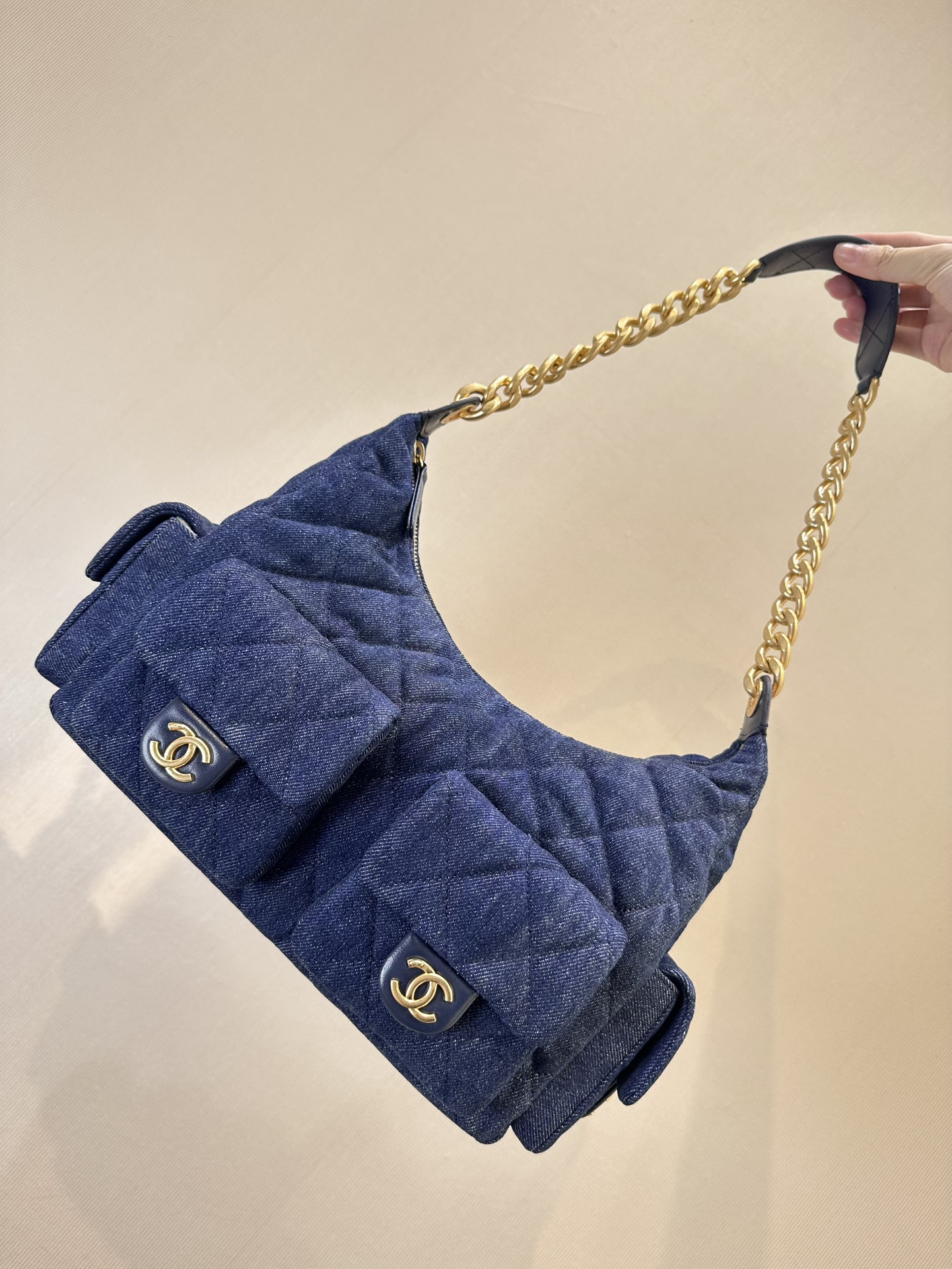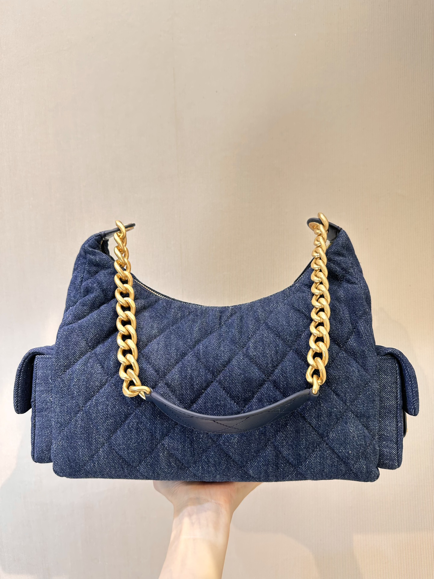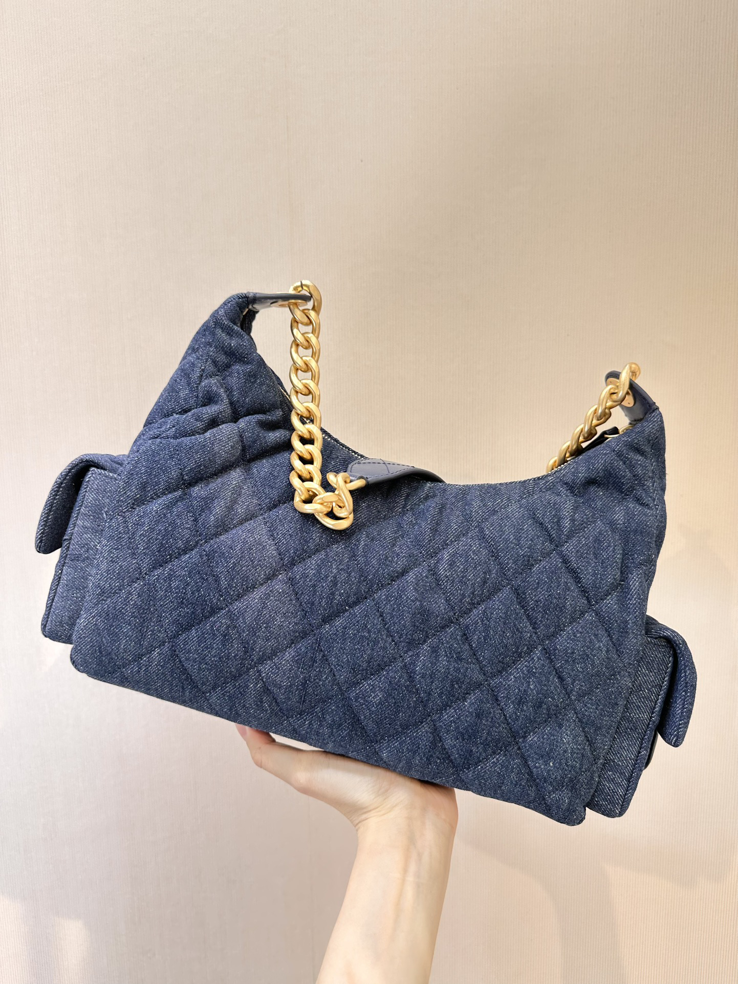 香奶奶 25C金扣拉链开合 牛仔布 流浪包 大号