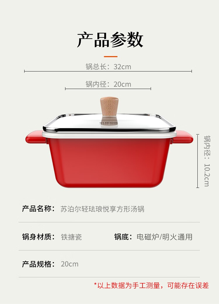 苏泊尔(SUPOR)轻珐琅悦享方形汤锅 VT20QF01 锅具