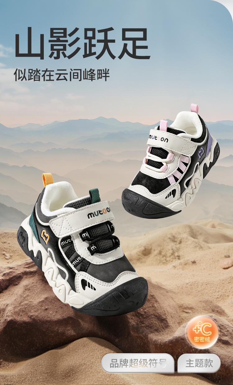 牧童儿童运动鞋2025冬季新款男童户外鞋女童减震加绒保暖跑步鞋子