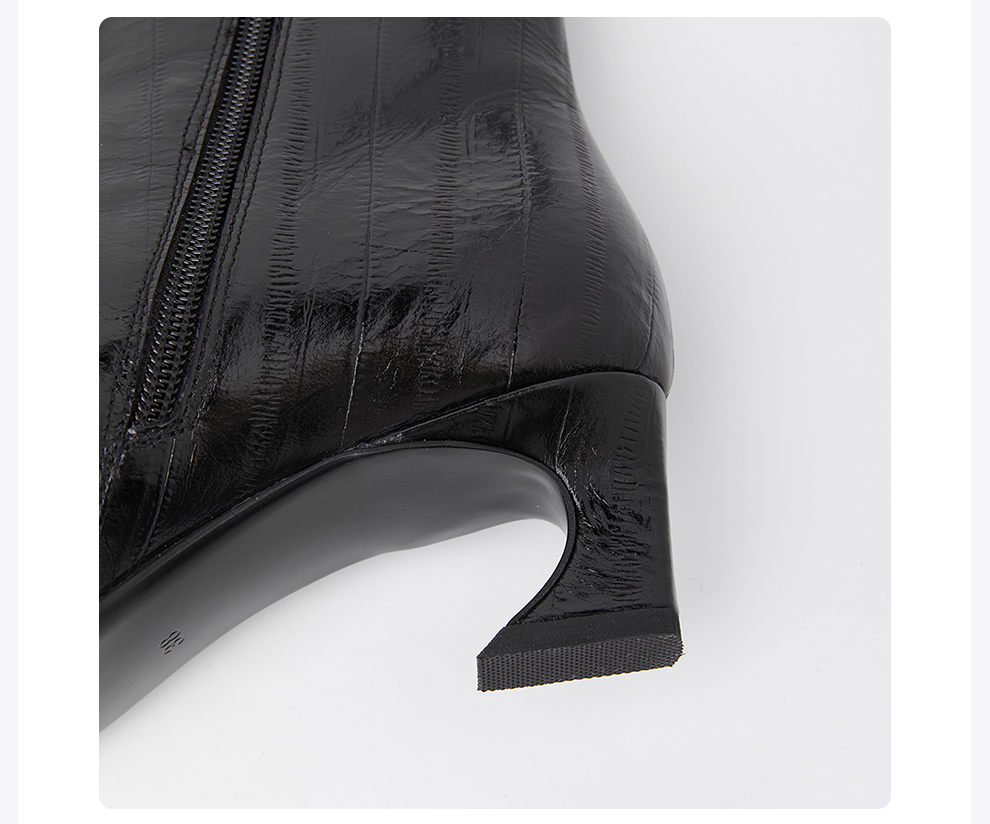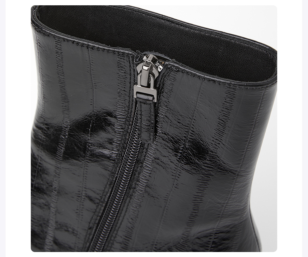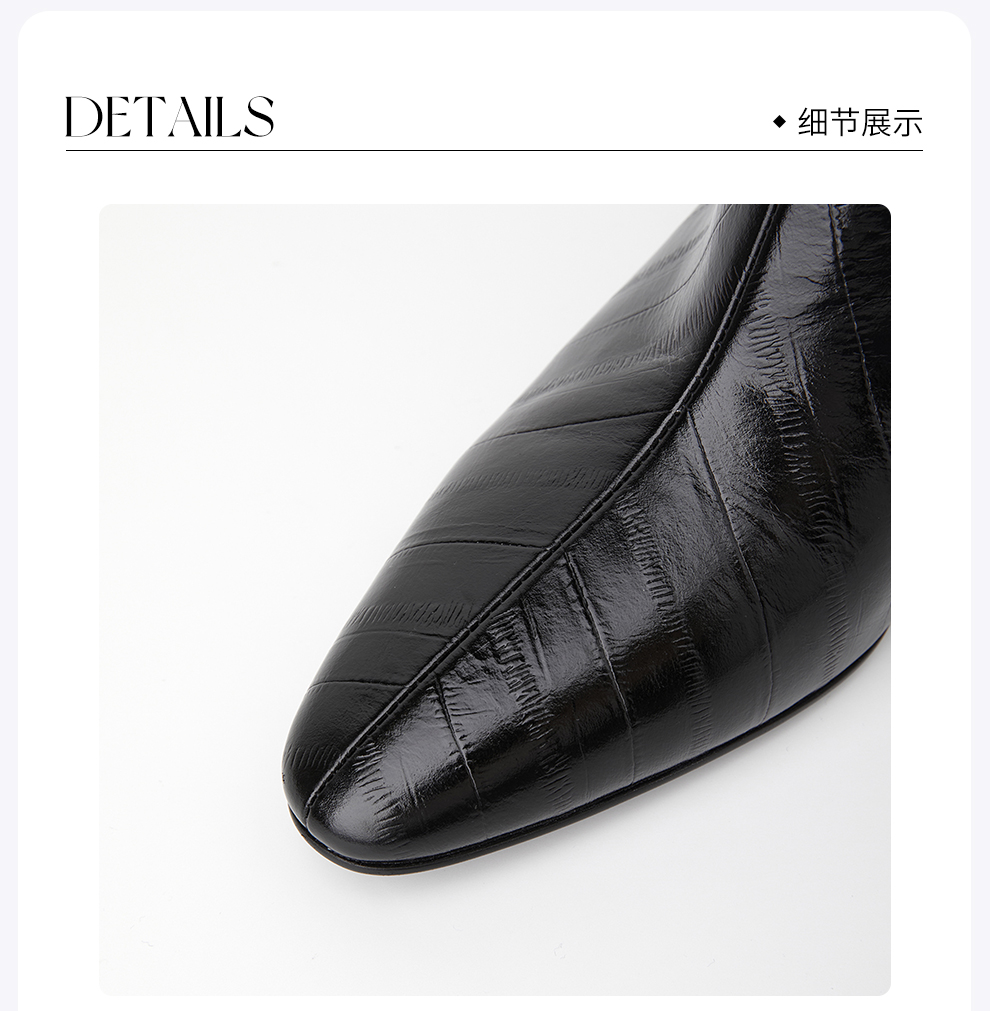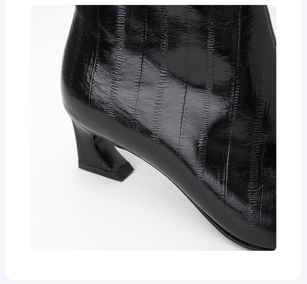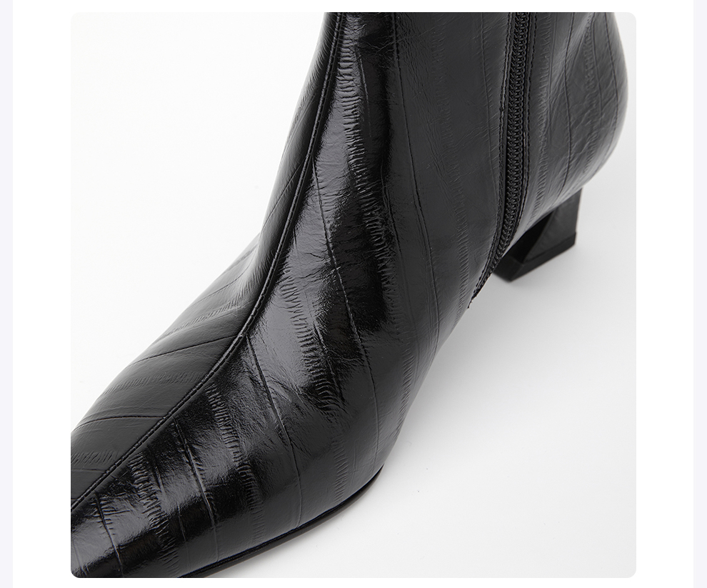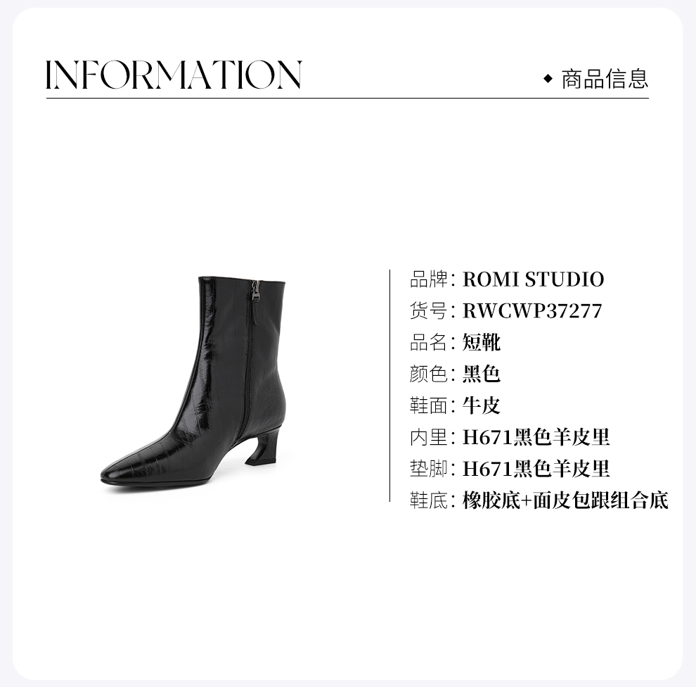 ROMI STUDIO“法式气质”鳗鱼纹压纹牛皮尖头粗跟短靴 RWCWP37277