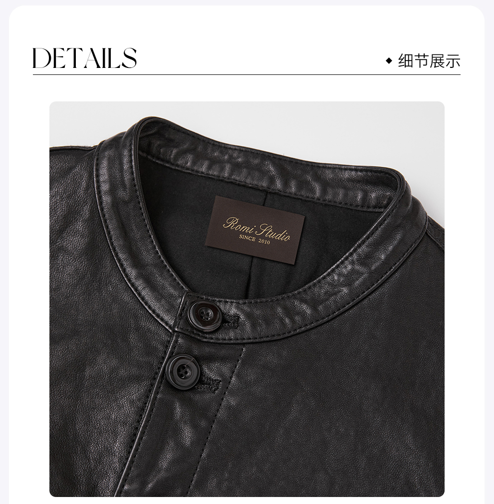 ROMI STUDIO英国进口100%绵羊皮重水洗做旧皮衣外套 RW24AW81140
