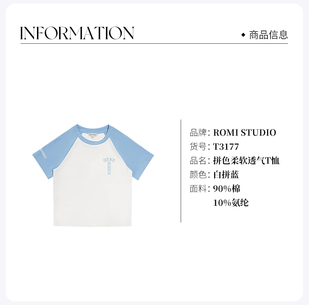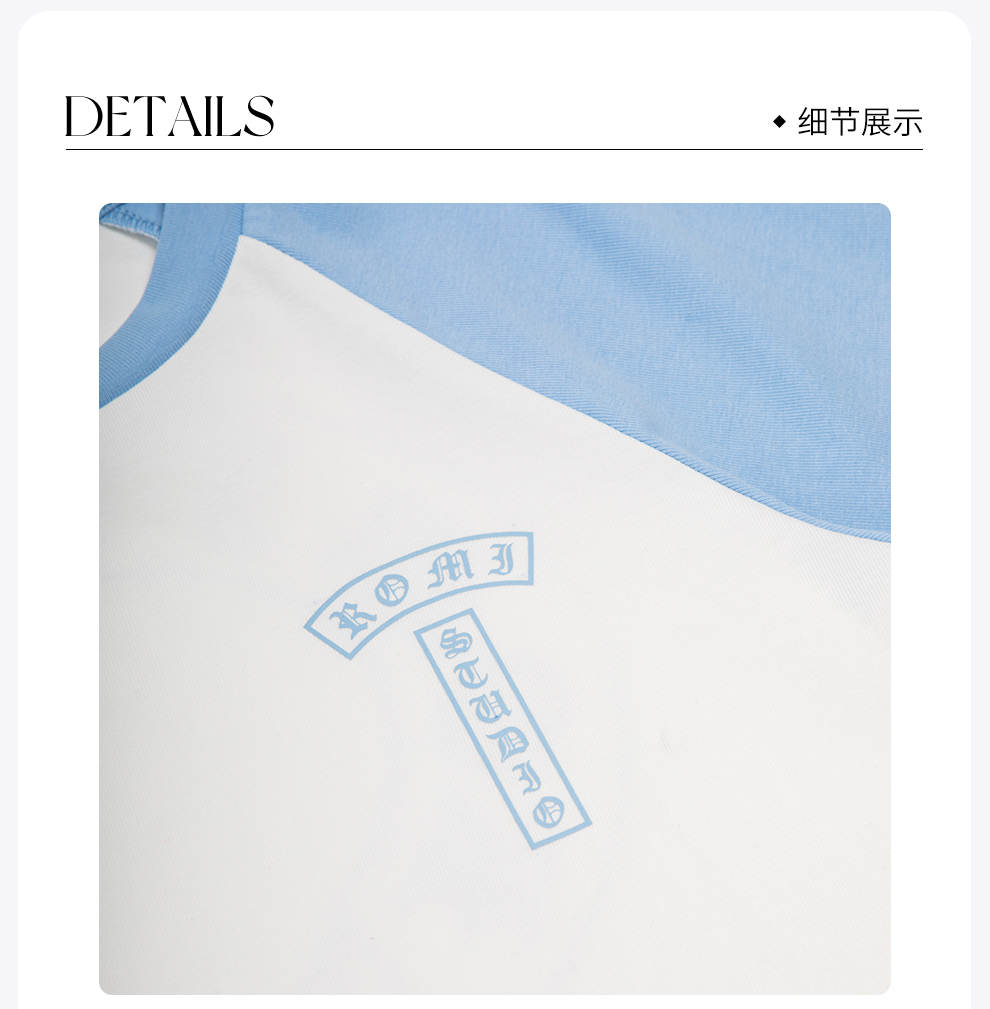 ROMI STUDIO【高品质】简约百搭圆领拼色柔软插肩袖 透气t恤T3177