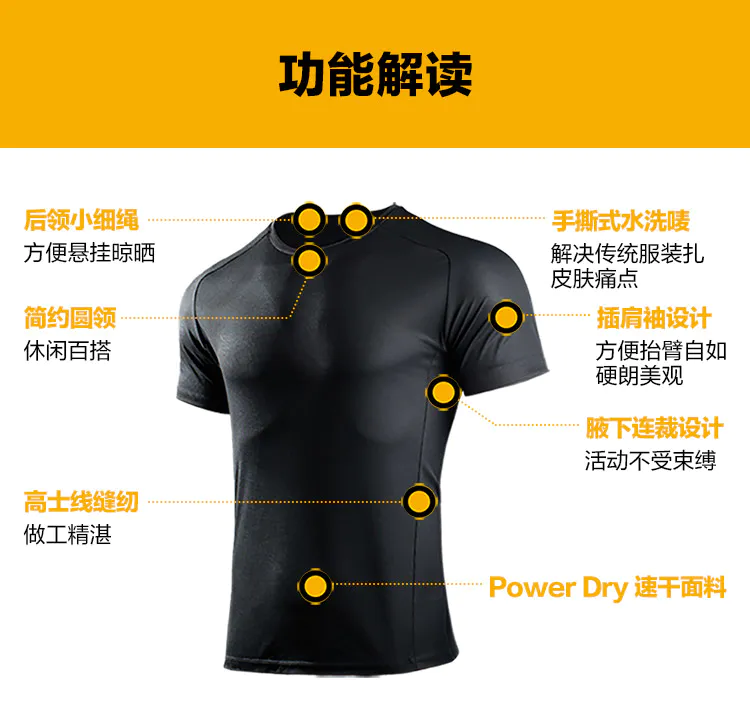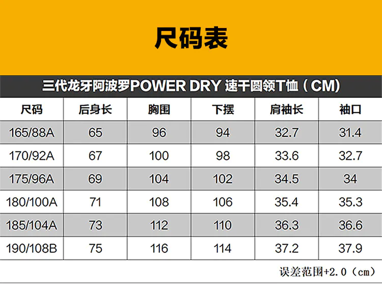 三代龙牙阿波罗POWERDRY速干圆领T恤夏季速干透气