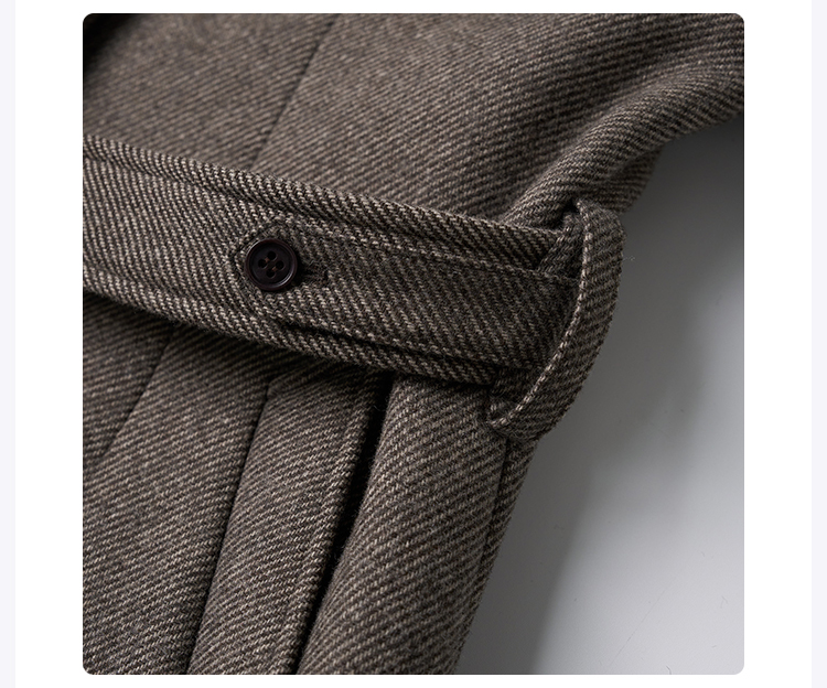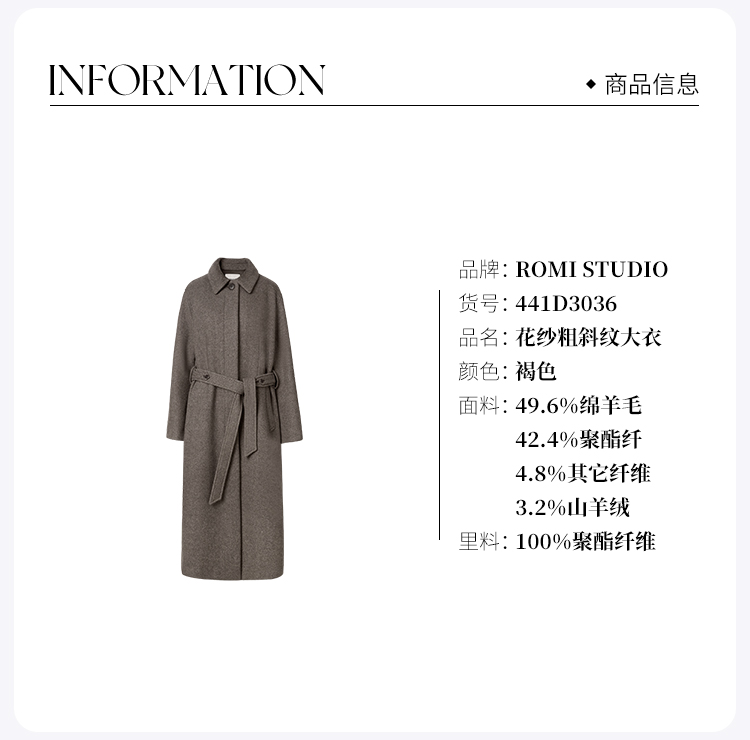 ROMI STUDIO“”山羊绒羊毛混纺斜纹收腰长款风衣 441D3036