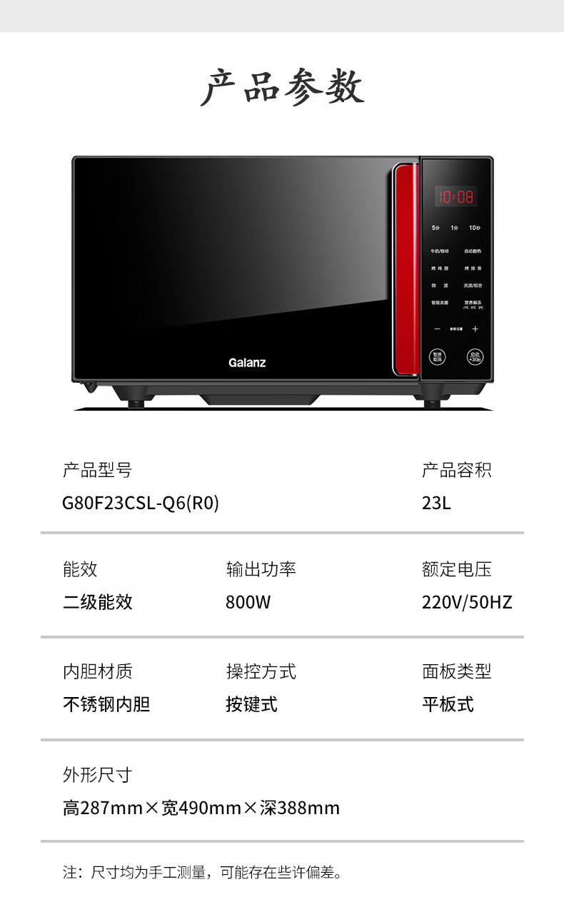 格兰仕(Galanz)微波炉烤箱一体机家用光波炉 23L大容量平板不锈钢内胆 营养解冻G80F23CSL-Q6R0(线下同款)