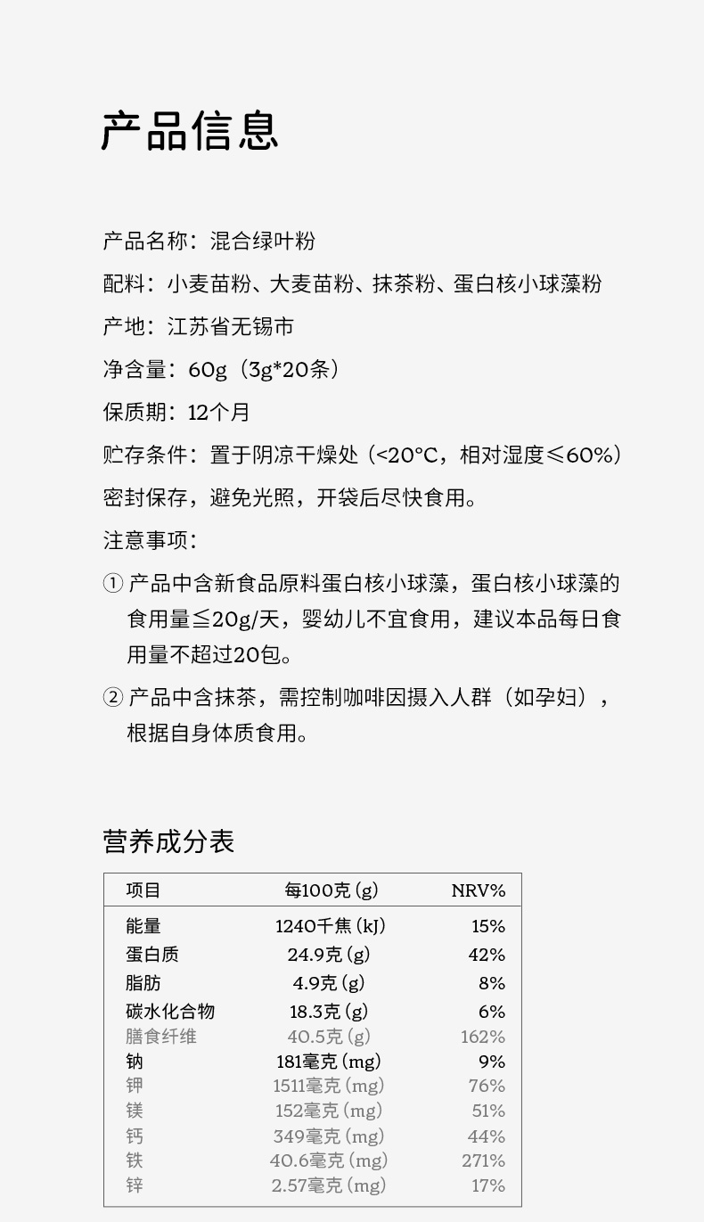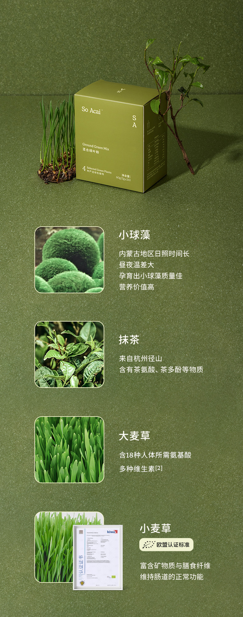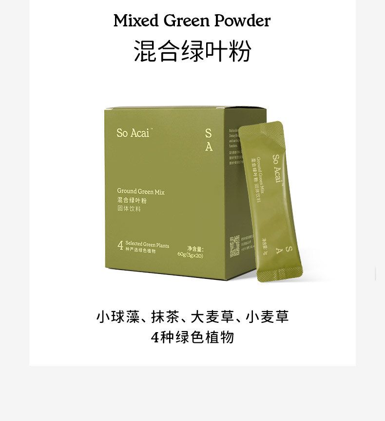【达人专属】SOACAI混合绿叶粉天然植物小绿粉健身冲饮青汁粉