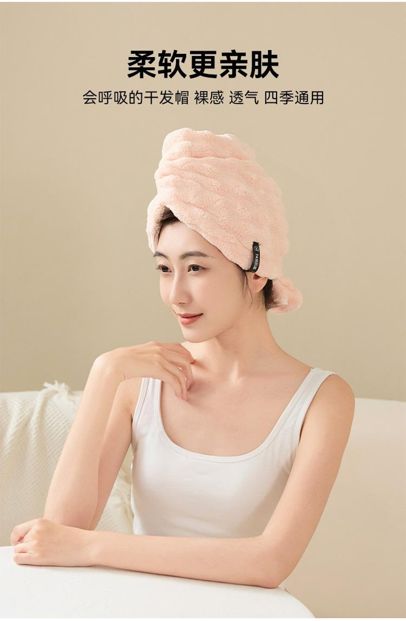 【1秒盘发!解放双手】三利毛巾泡泡绒宽尾干发帽a类30*80家用宿舍强吸水包头巾女一片式。ry