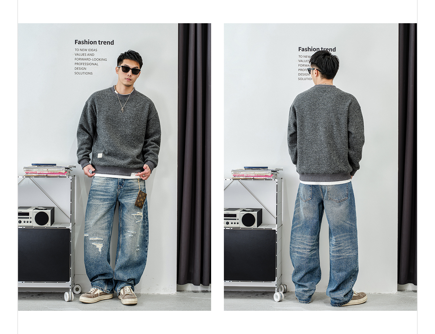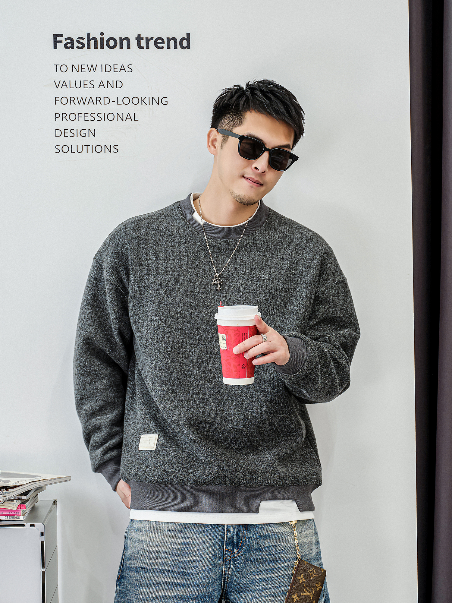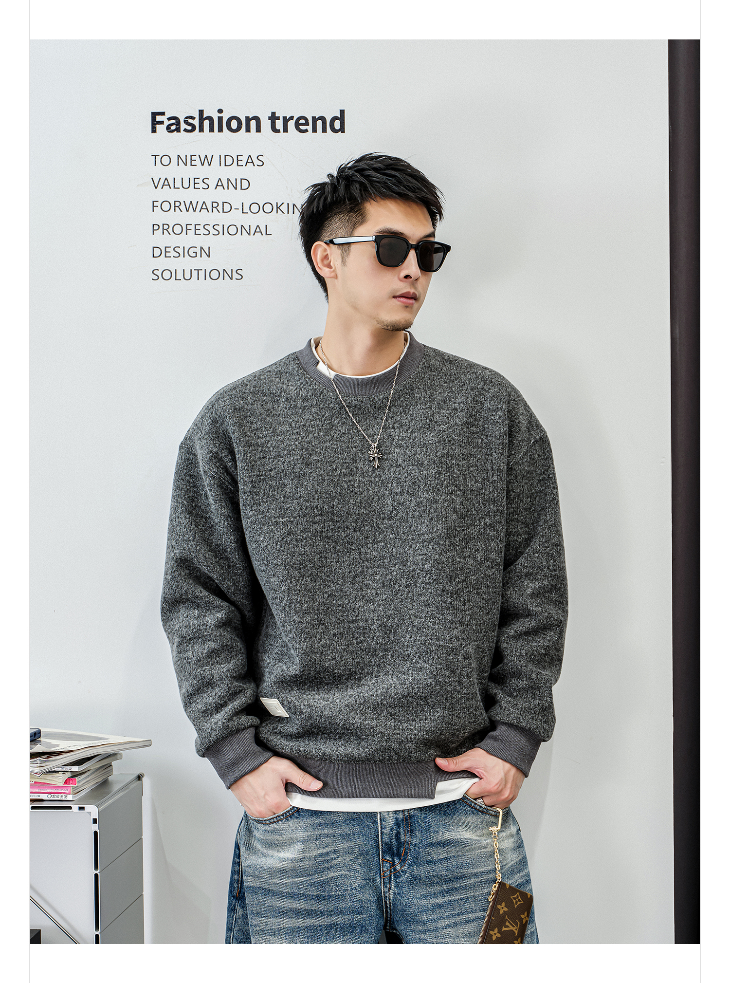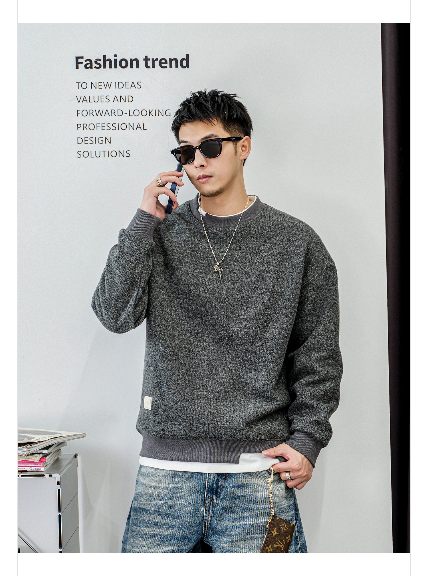 徐太浪【毛绒感 cleanfit】灰色假两件卫衣男秋冬款内搭打底上衣