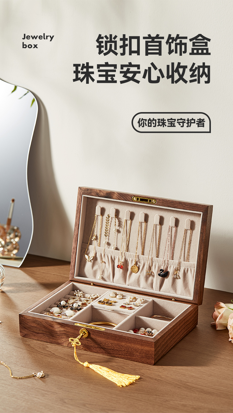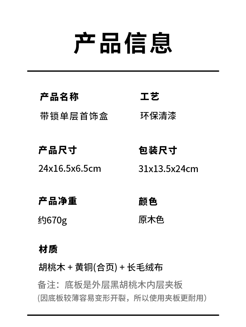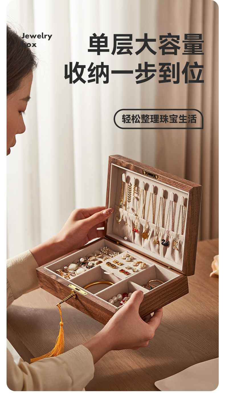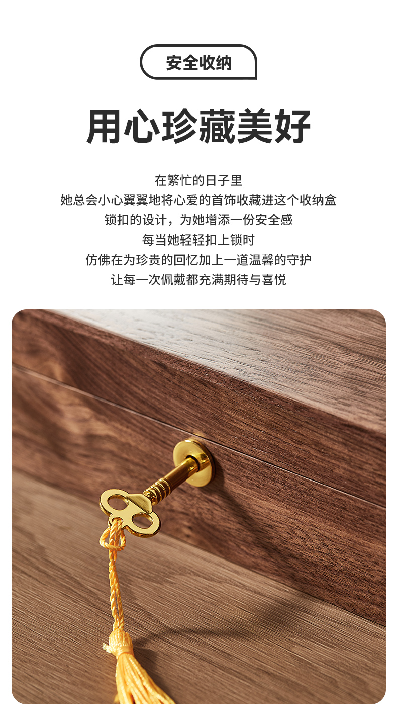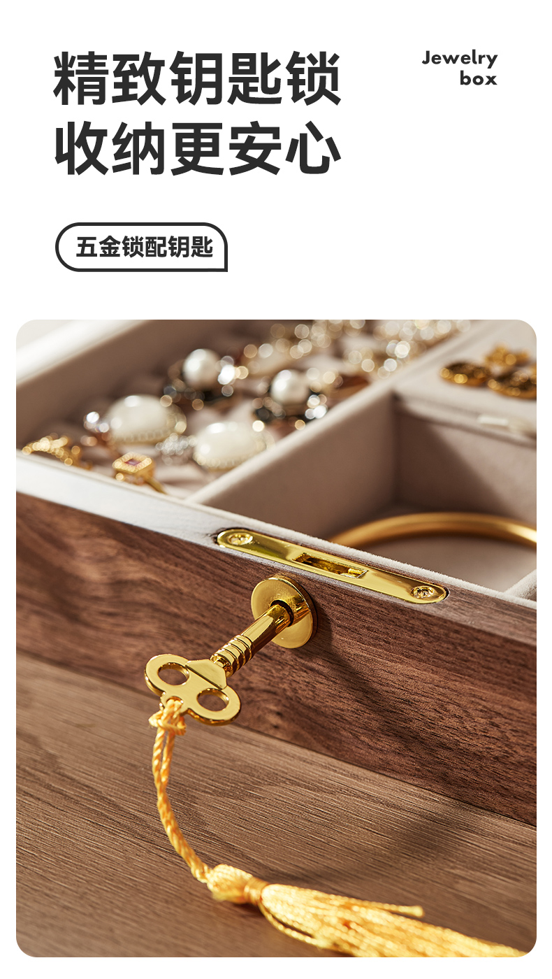 初心 带锁实木首饰盒 单层大容量锁扣饰品收纳盒