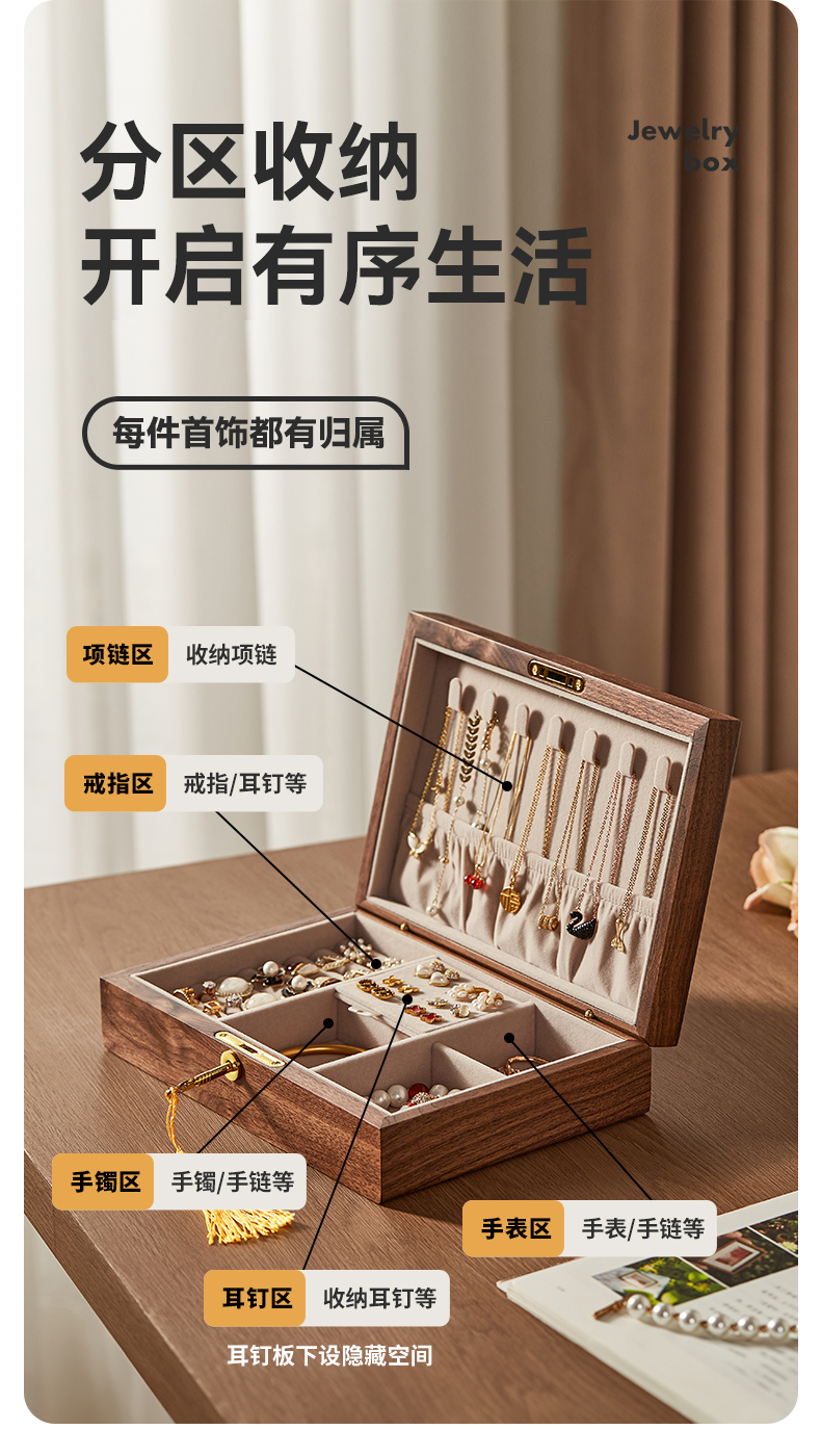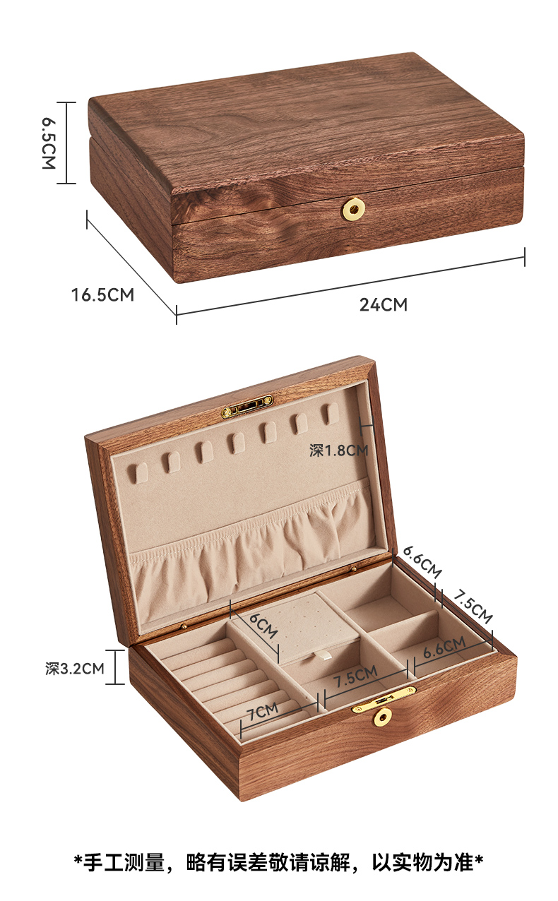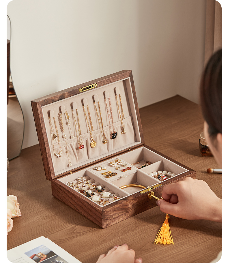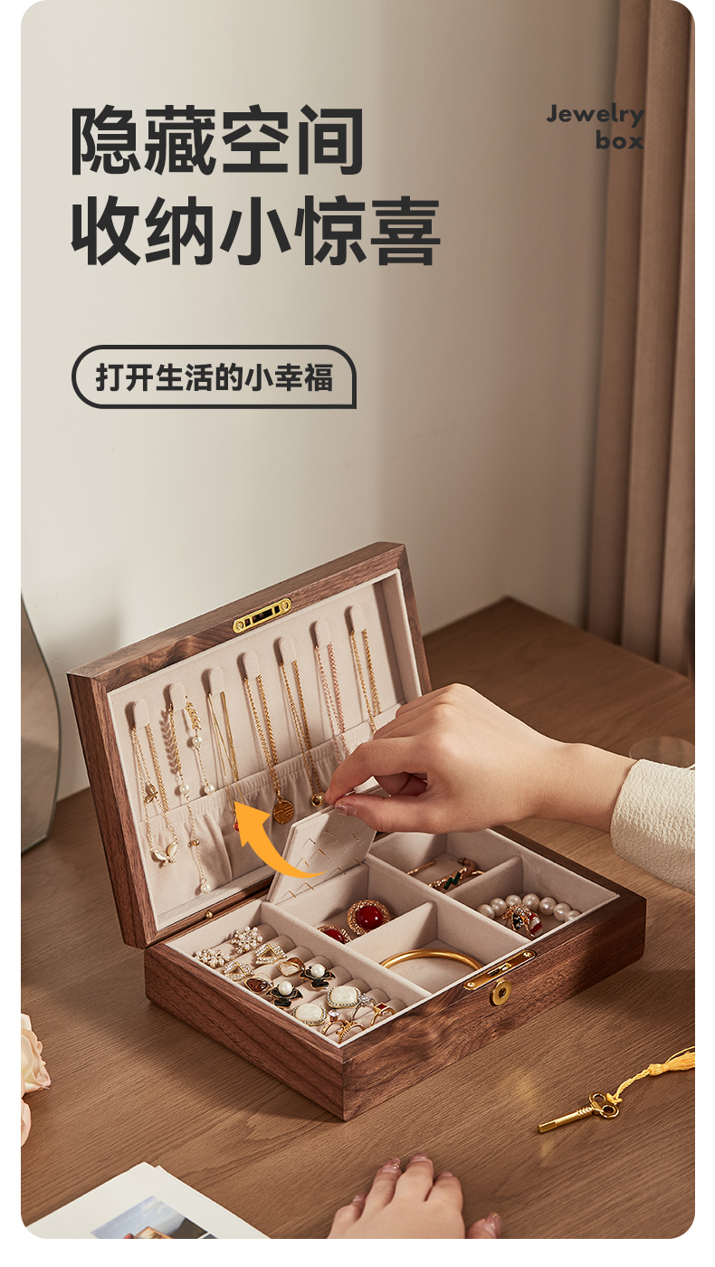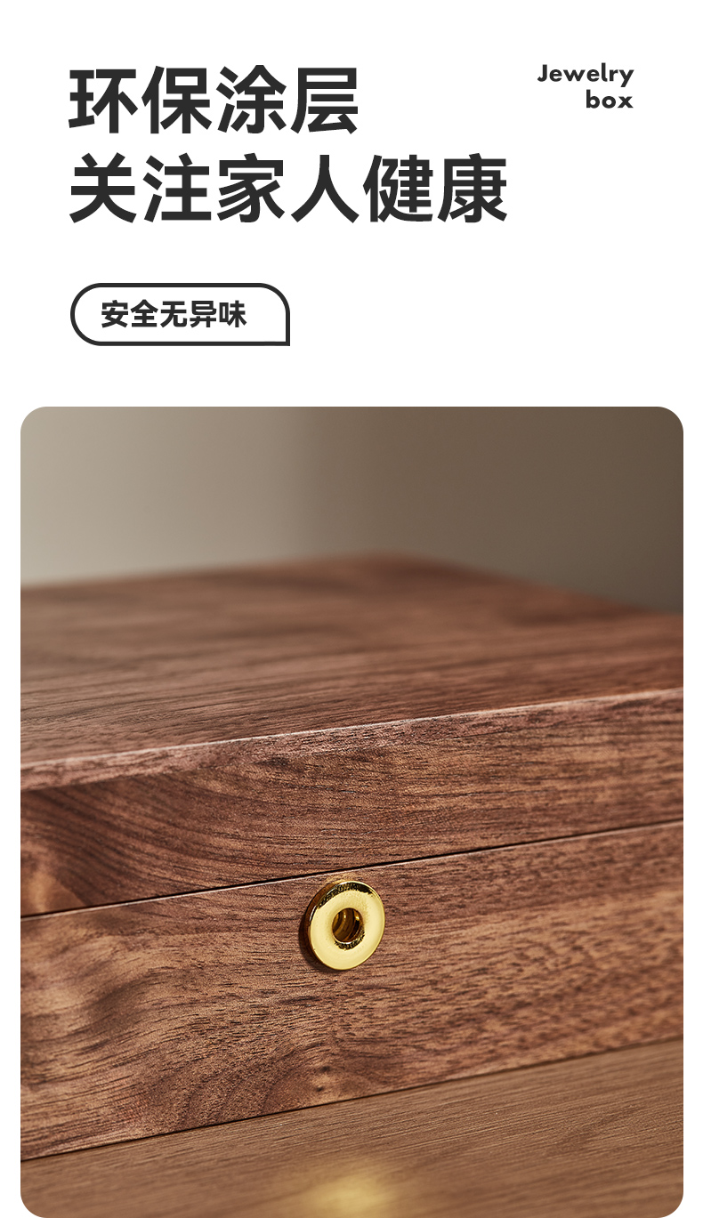 初心 带锁实木首饰盒 单层大容量锁扣饰品收纳盒