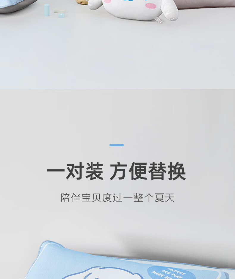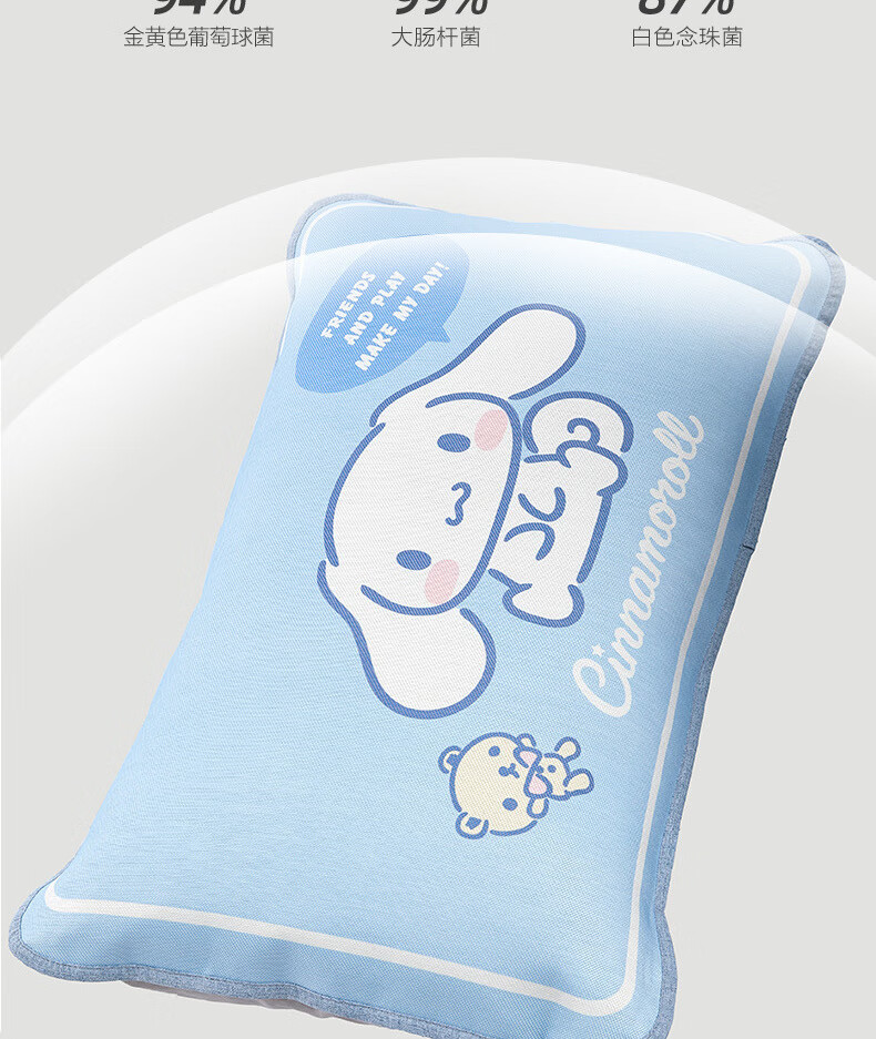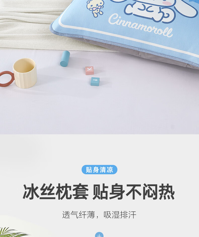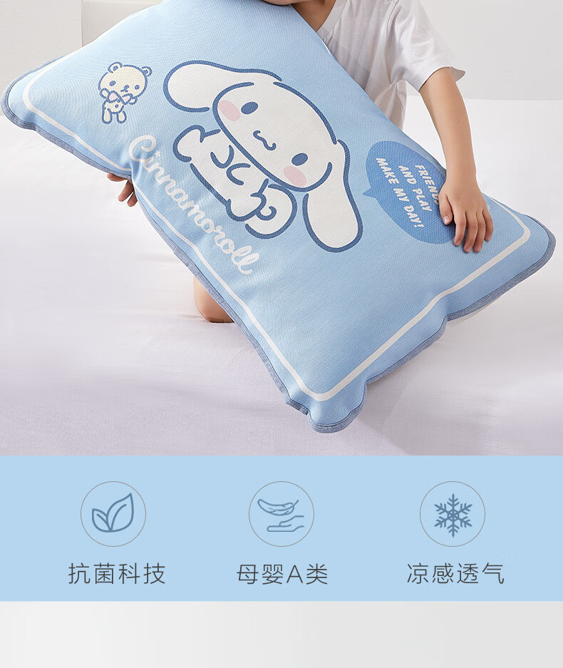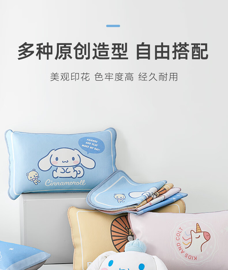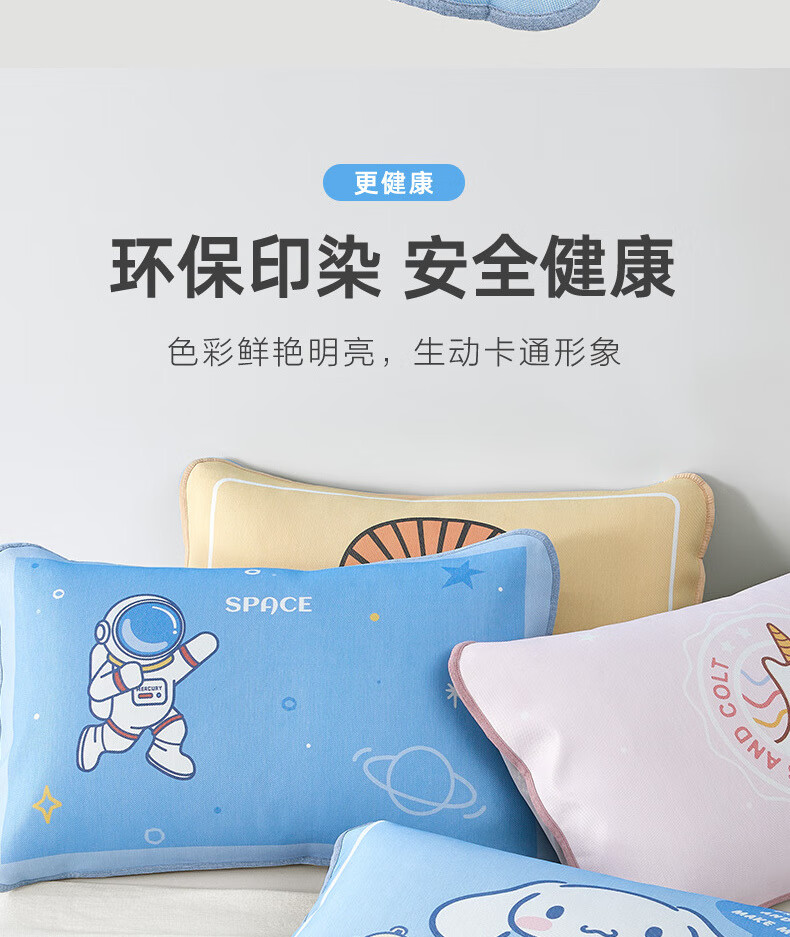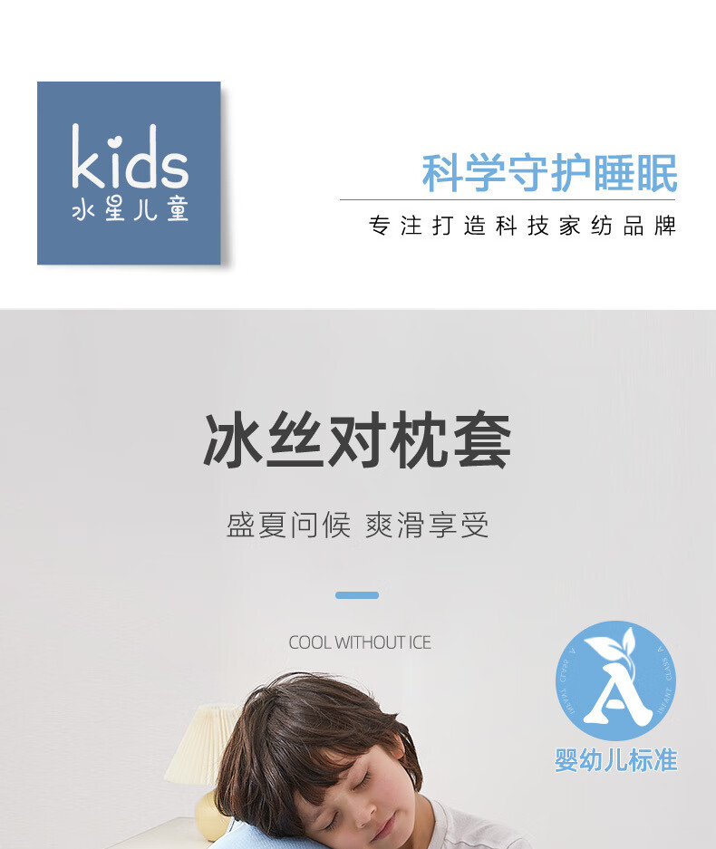 水星家纺 儿童枕头套冰丝印花抗菌对枕套夏季凉感透气枕头罩 海蓝色/太空 48cmx74cm