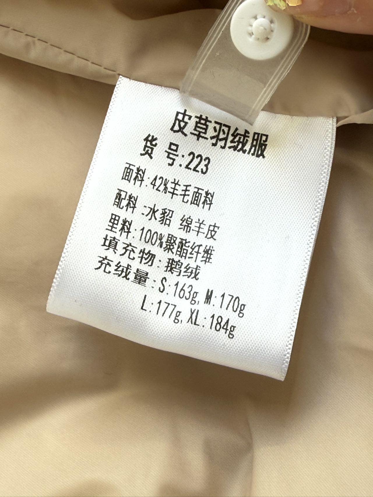 • 专业洗护:建议送至 专业洗护店,避免自行水洗导致羊绒缩水或羽绒结块