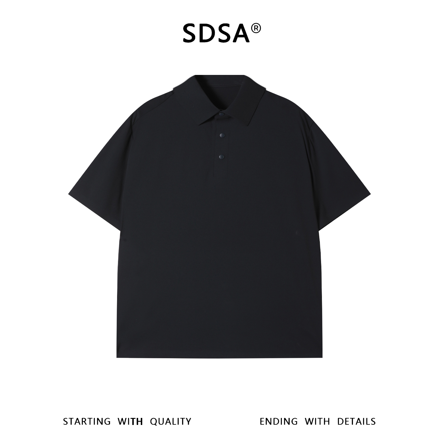 SDSA男装2026新款轻奢老钱风纯色按扣翻领短袖T恤舒适亲肤上衣