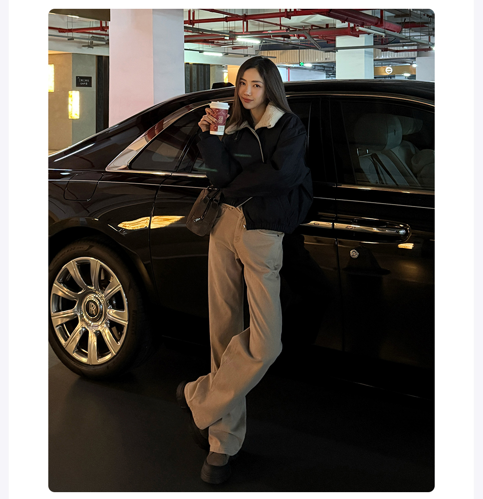 ROMI STUDIO“随性复古”全棉条纹撞色Polo领灯芯绒长袖 RWCASU6577