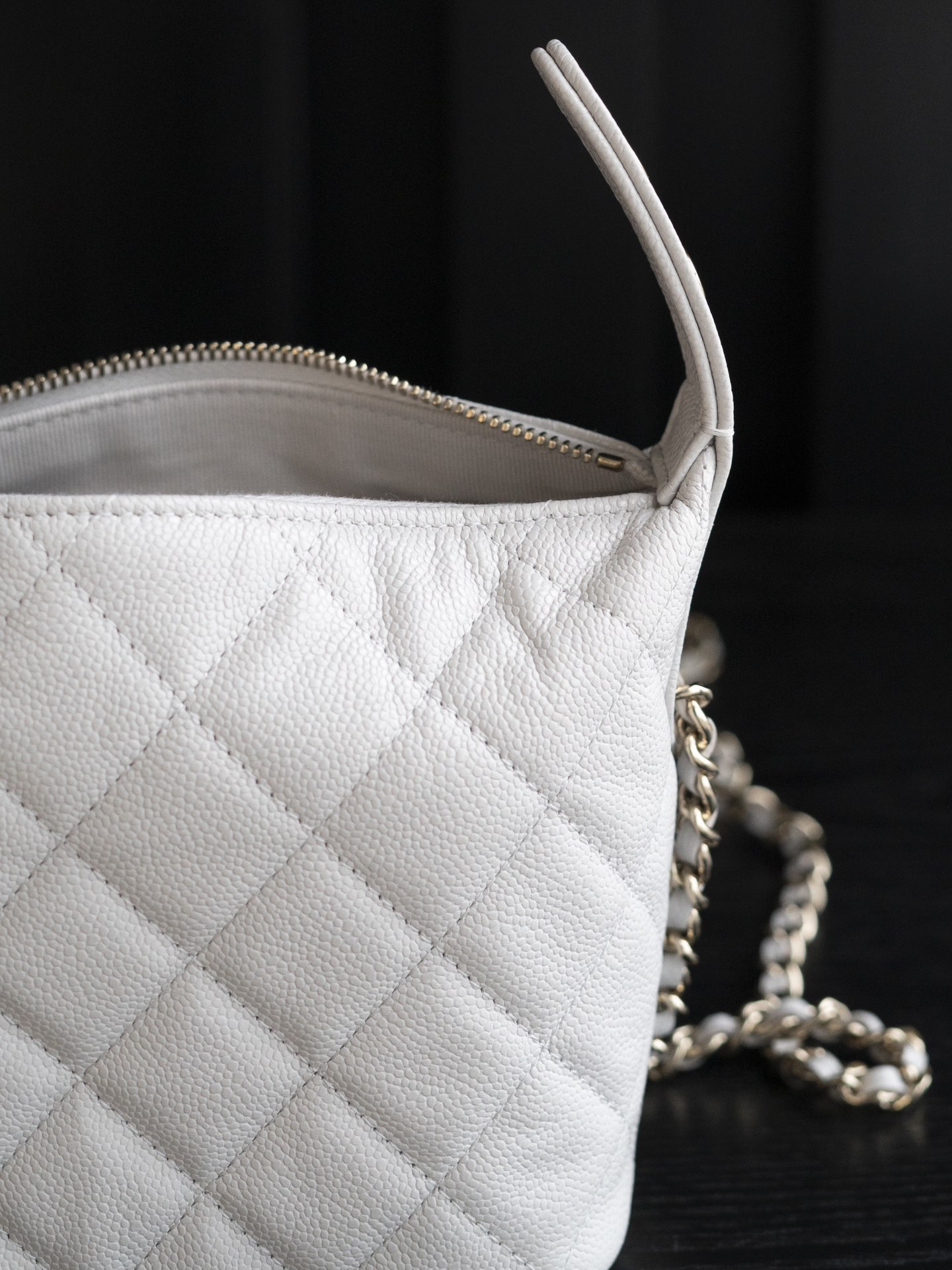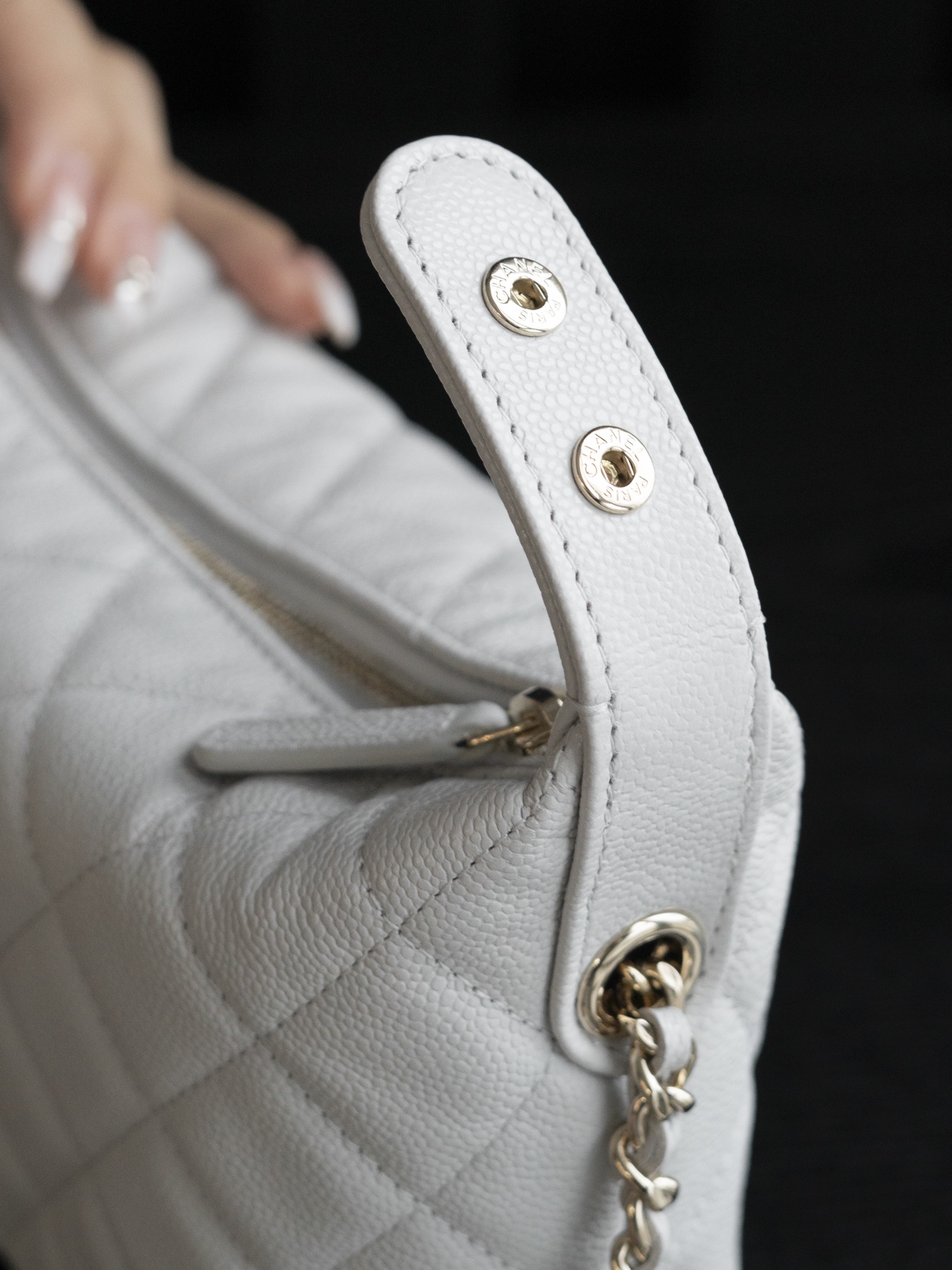 材质:荔枝纹牛皮搭配浅金色五金