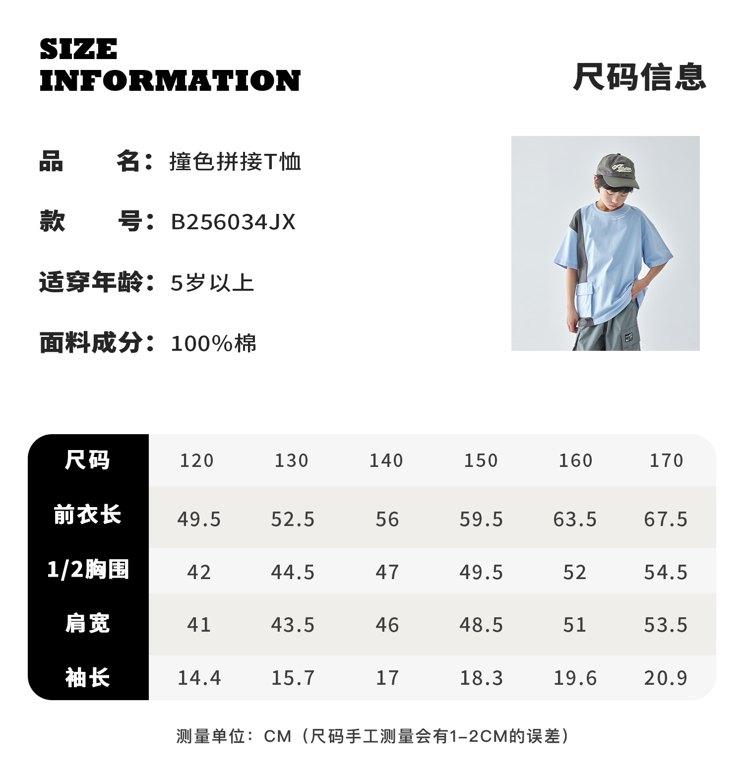 蓝汽水 2025春夏第一波新品撞色拼接T恤-860B256034JX