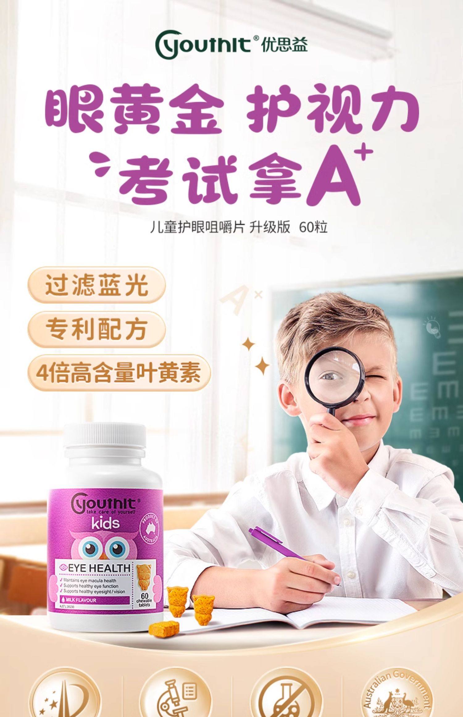 Youthit优思益蓝莓护眼胶囊+儿童叶黄素咀嚼片家庭装护眼眼睛进口