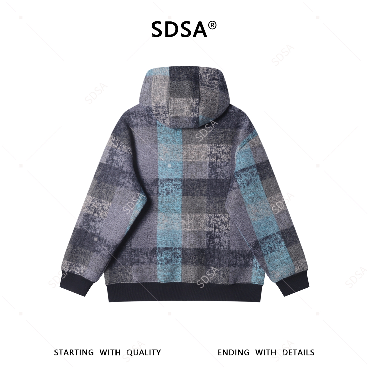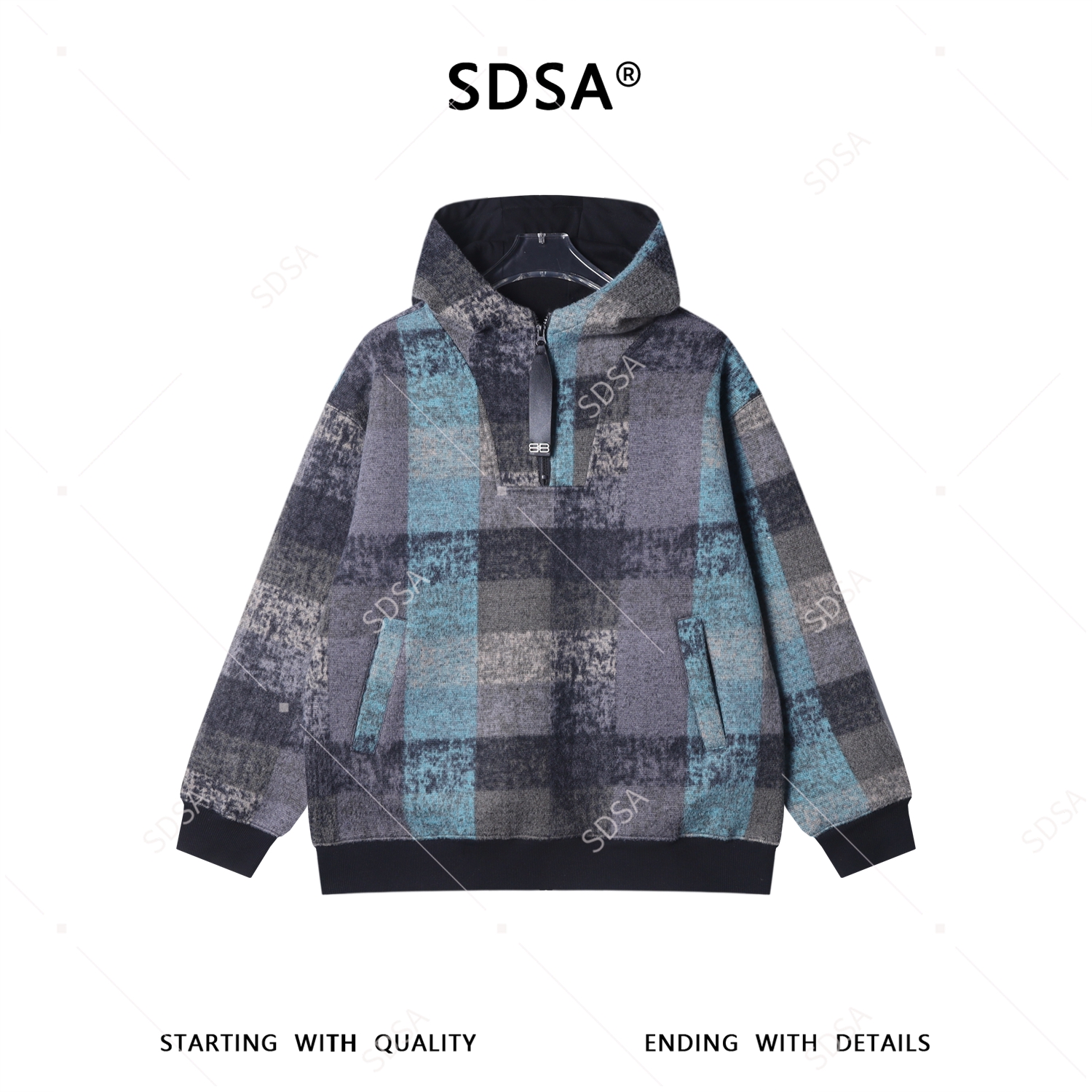 26WY51SDSA秋冬新款痞帅男装美式复古彩色格子设计半拉链立领连帽卫衣