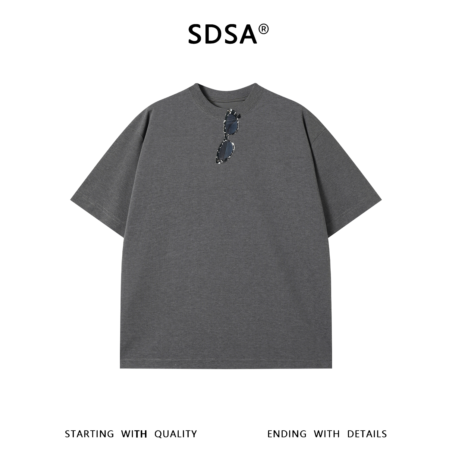 SDSA男装2026新款高贵轻奢潮牌墨镜印花宽松短袖T恤百搭时尚上衣