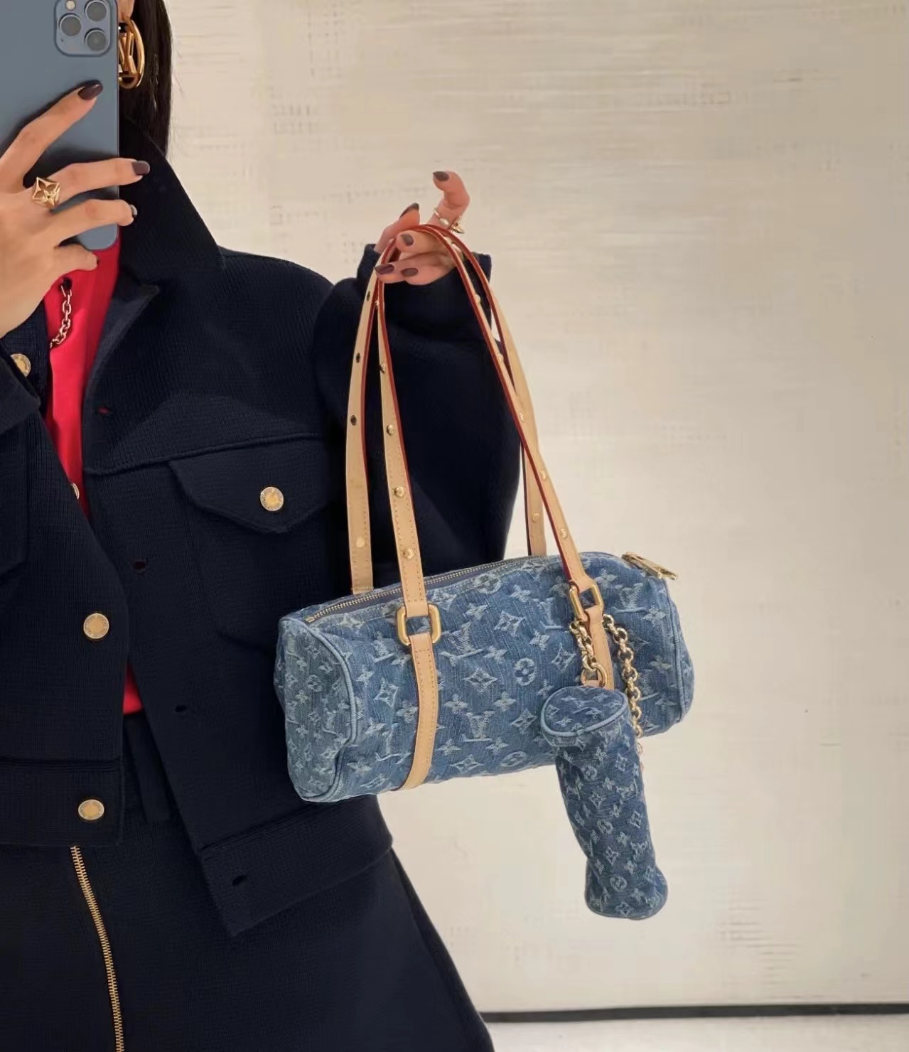 驴家 Papillon 手袋取材多重工艺制成的 Monogram Denim 帆布包(JPH)